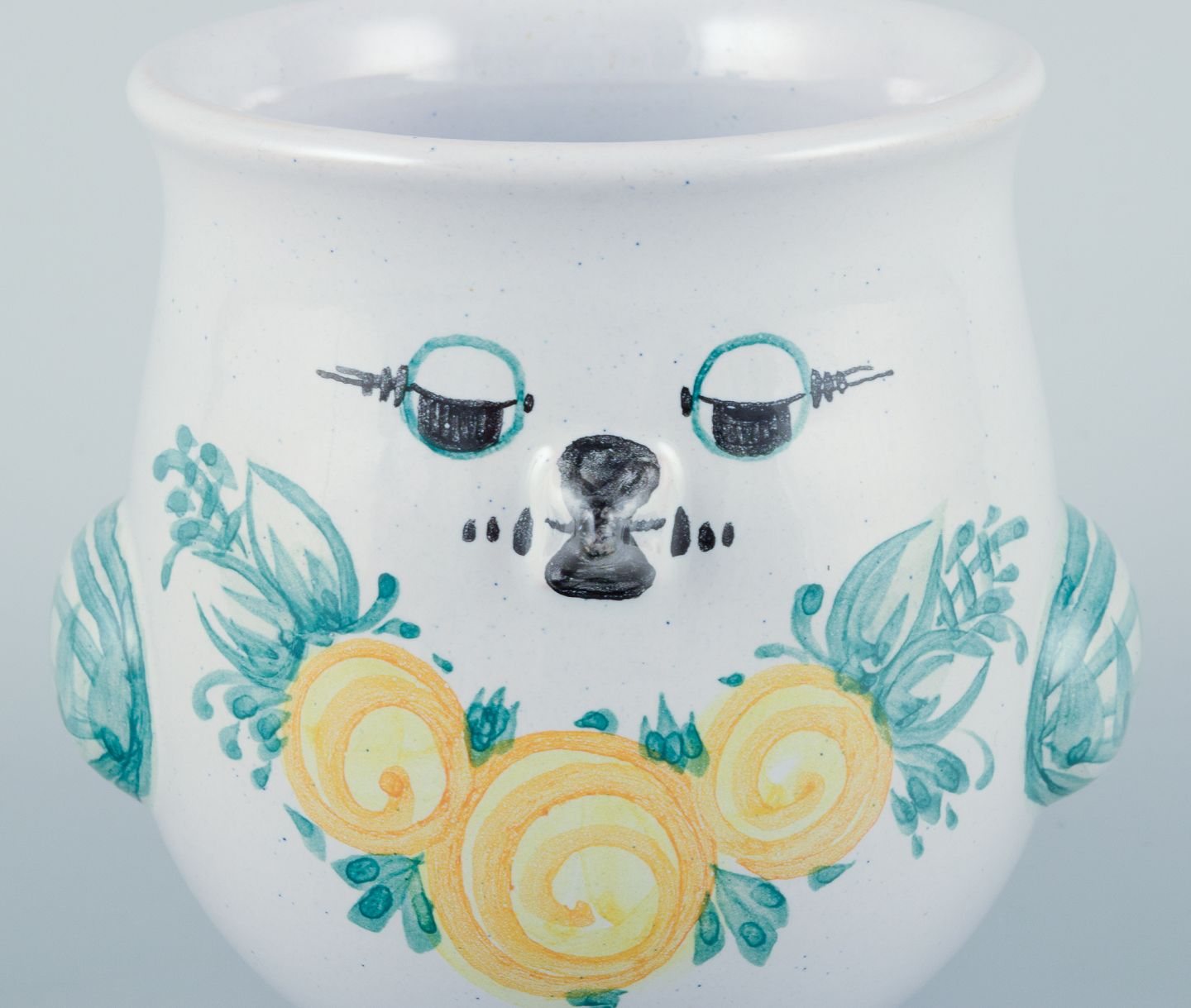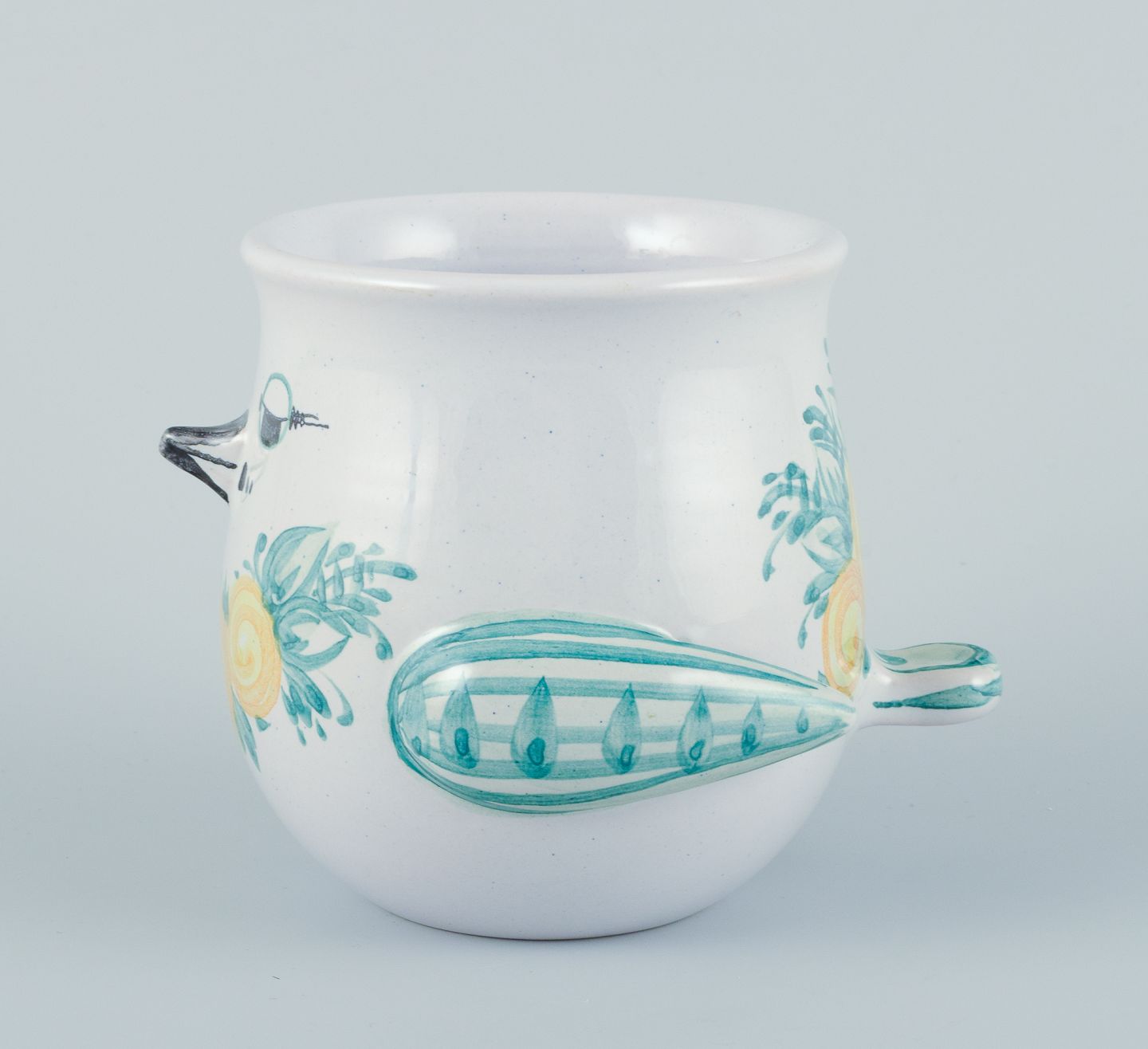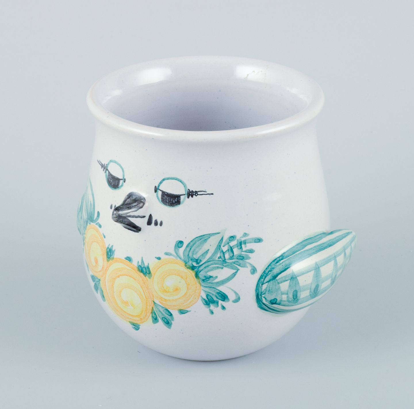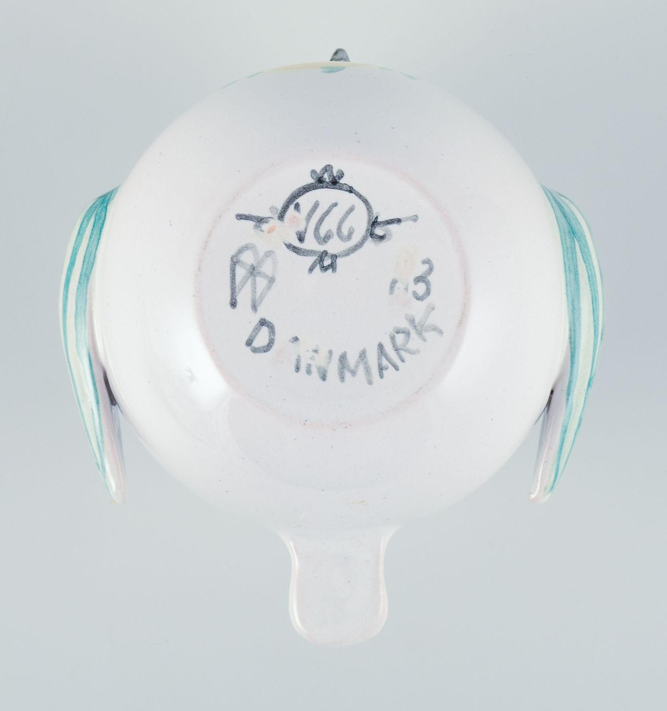 Bjørn Wiinblad (1918-2006) for Det Blå Hus, Danmark. Unika vase udformet som en fugl. Glasur i grønne og gule toner. Model V66. Sent 1900-tallet. Signeret. I perfekt stand. Mål: H 10,5 cm. x D 11,0 cm.