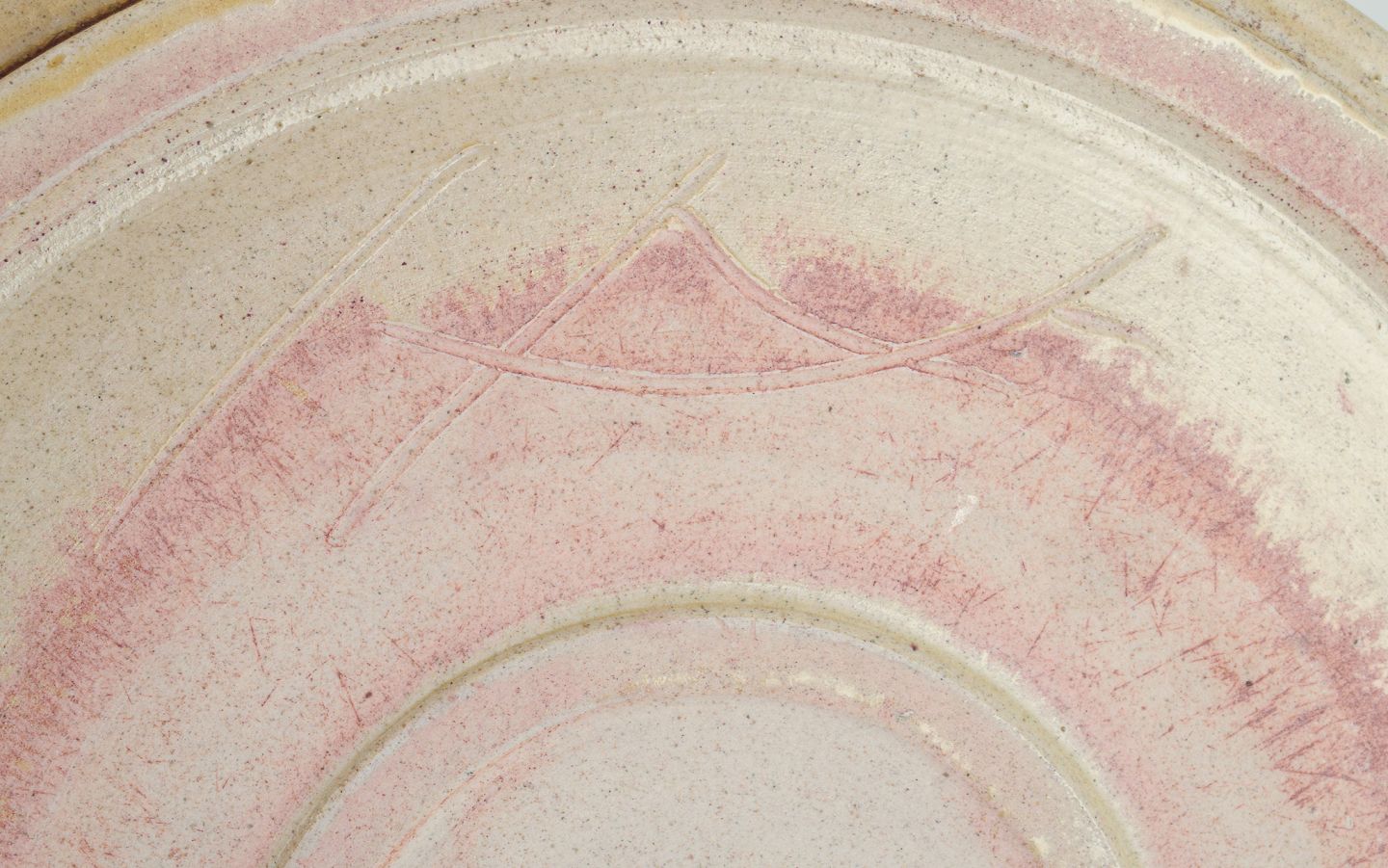Nils Kähler for Kähler. Stor keramikskål i modernistisk design. Urangul glasur. Ca. 1970. I perfekt stand med naturlige krakeleringer. Stemplet. Mål: D 25,0 cm. x H 6,0 cm.