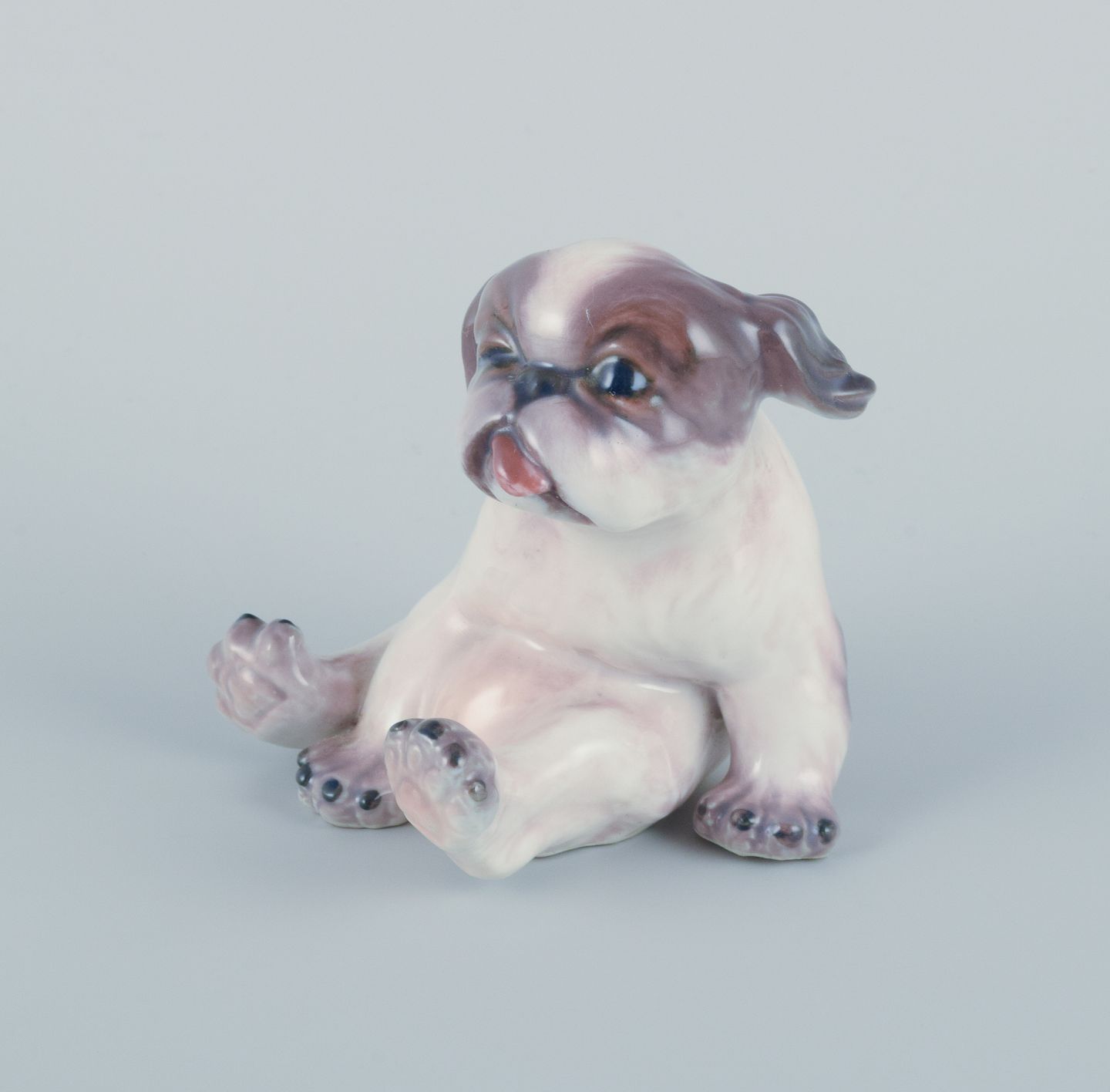 Dahl Jensen, porcelænsfigur af pekingeserhvalp. Design Jens Peter Dahl Jensen (1874-1960). Modelnummer 1134. Ca.1930 Første sortering. Perfekt stand. Stemplet. Mål: H 7,5 cm. x L 8,5 cm.
