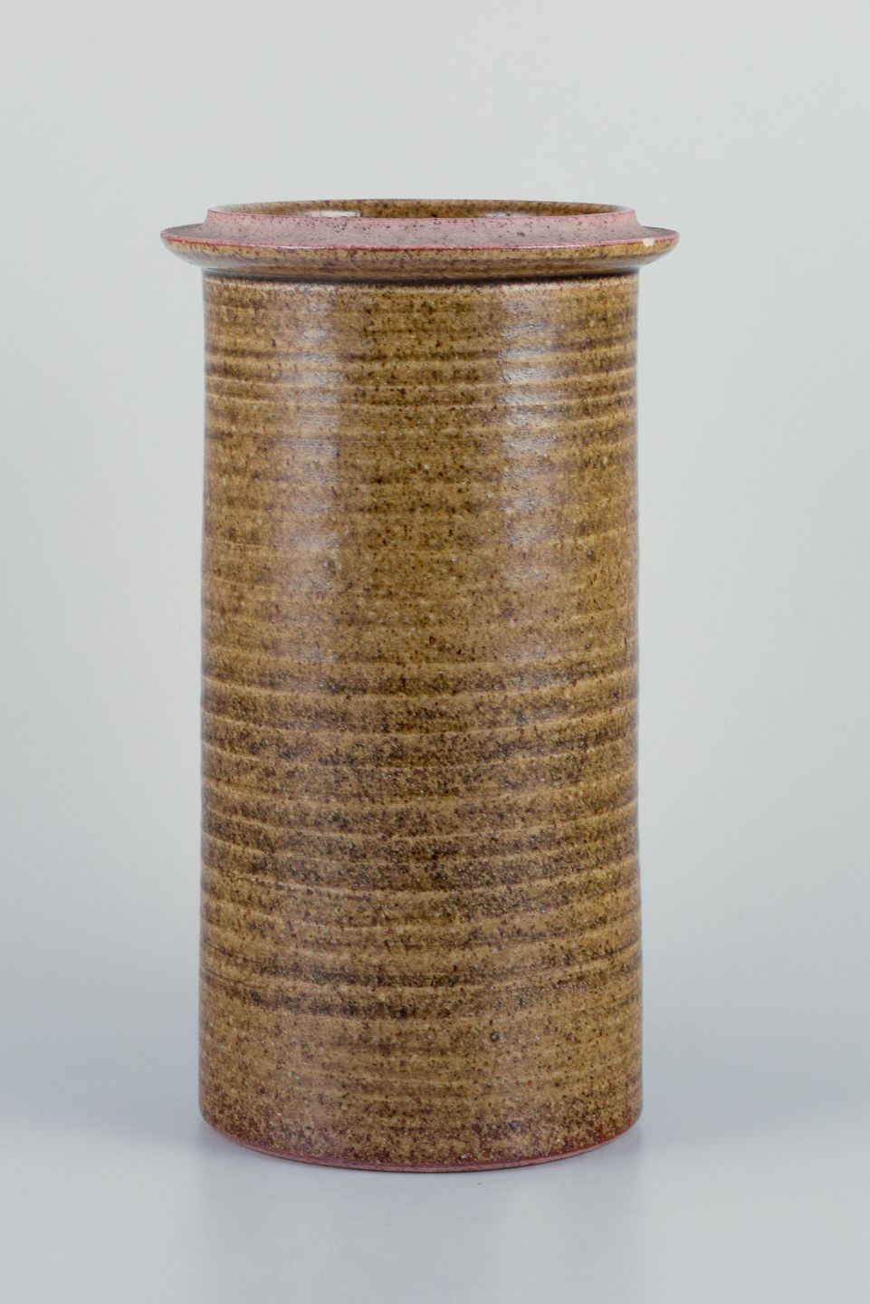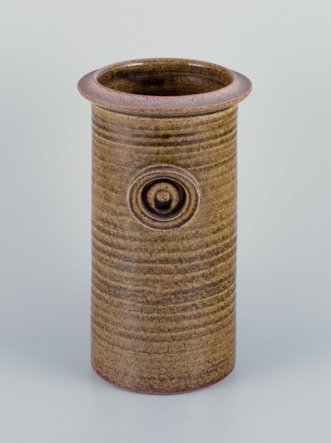 Richard Manz, dansk keramiker. Stor unika keramikvase med glasur i mørke sandnuancer. 1960/70’erne. Signeret. I flot stand med to minimale og ubetydelige skår. Se fotos. Mål: H 26,5 cm. x 14,7 cm.
