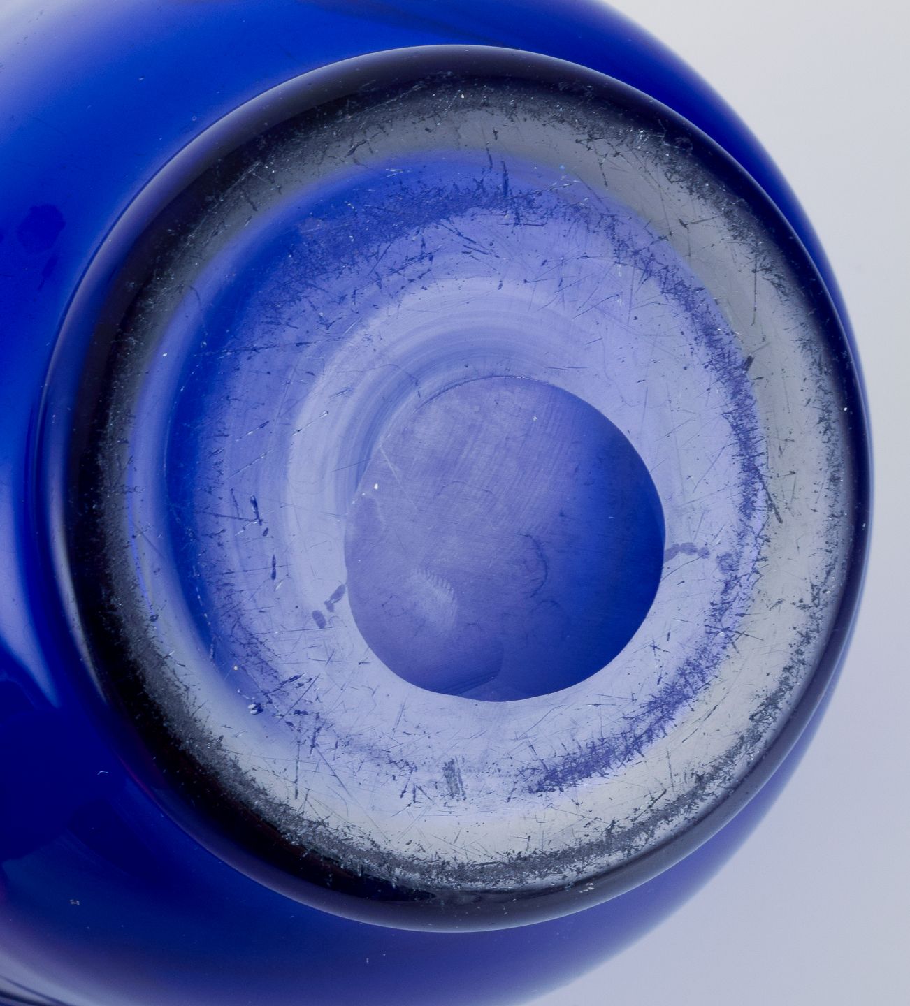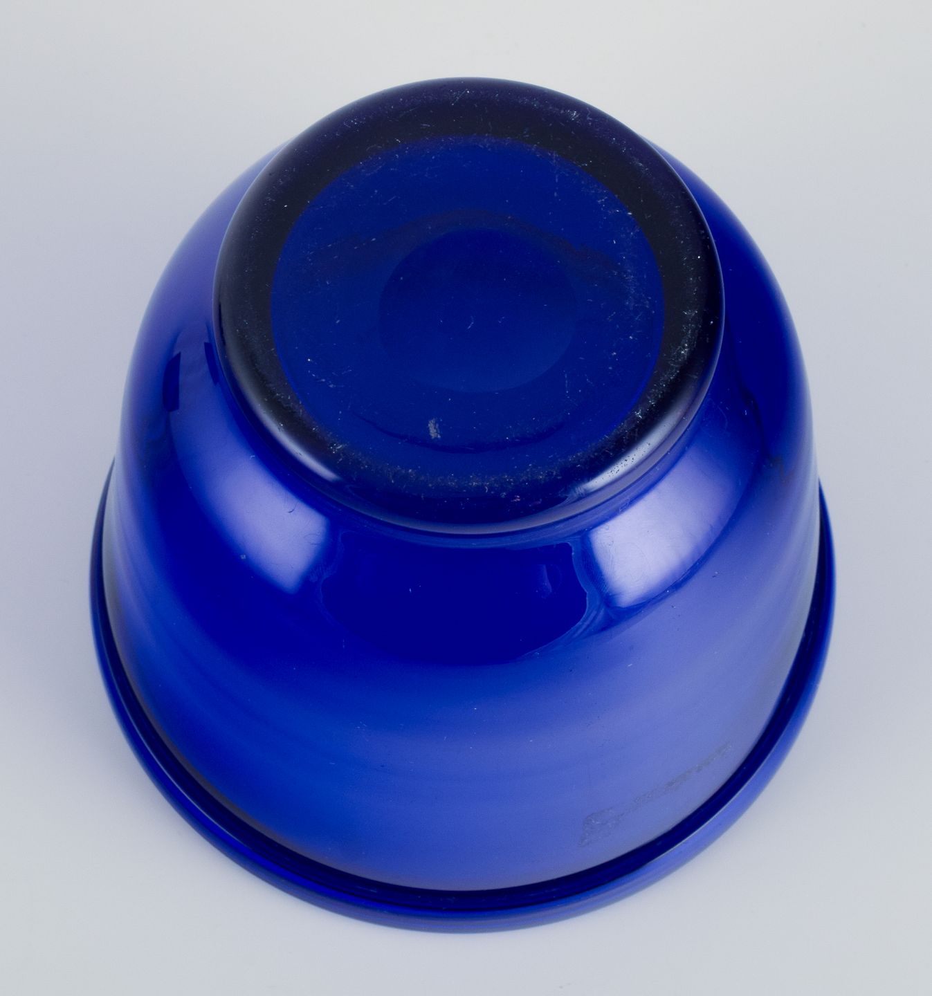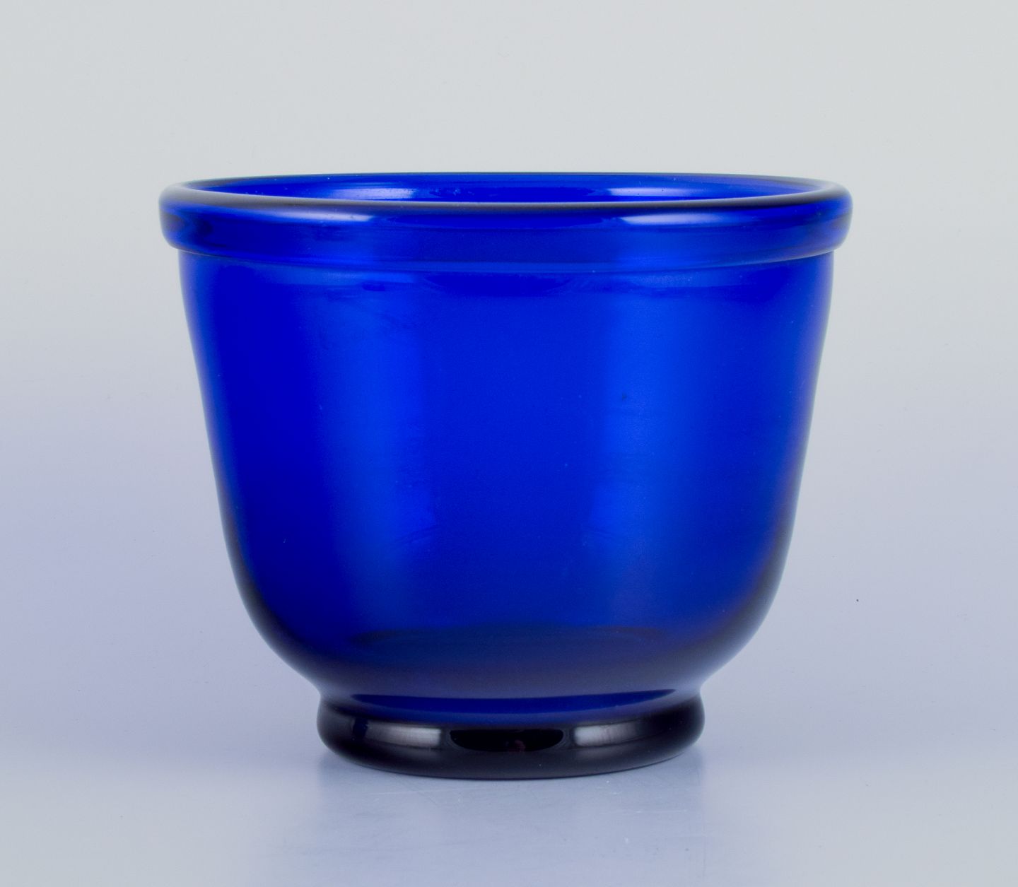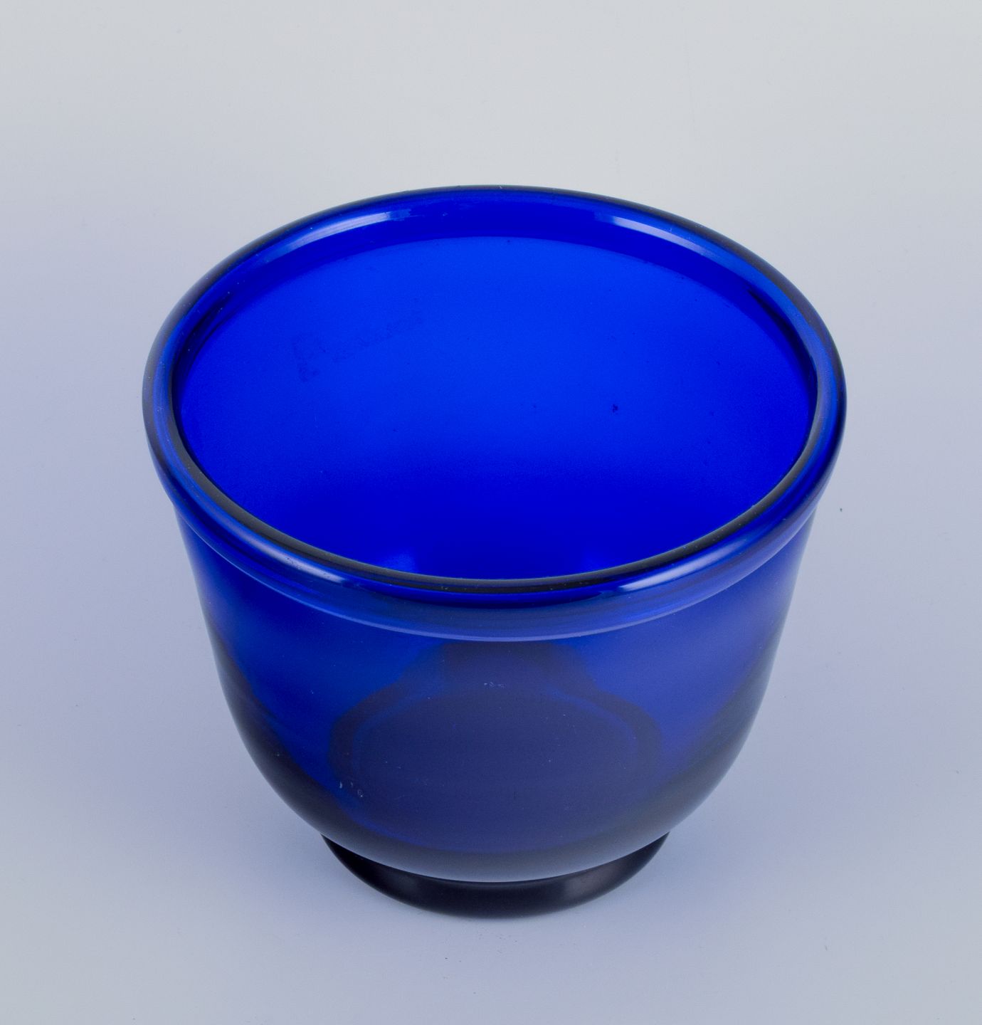 Et par kunstglasvaser i blåt glas. Mundblæst. Danmark 1930/40’erne. Perfekt stand. Mål: D 13,5 cm. x H 11,4 cm.