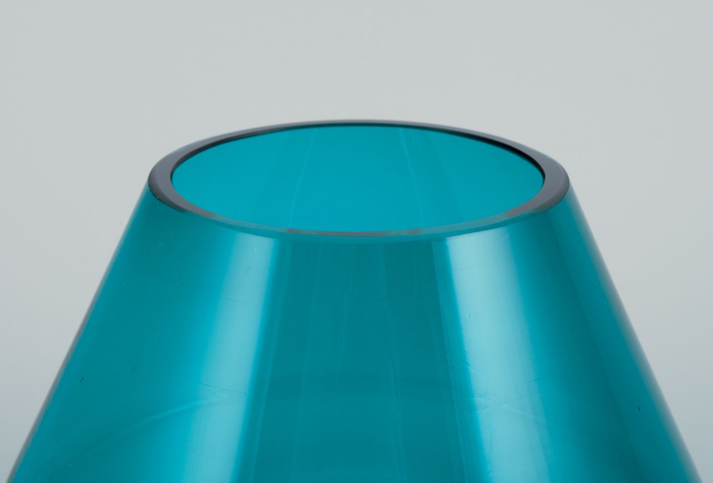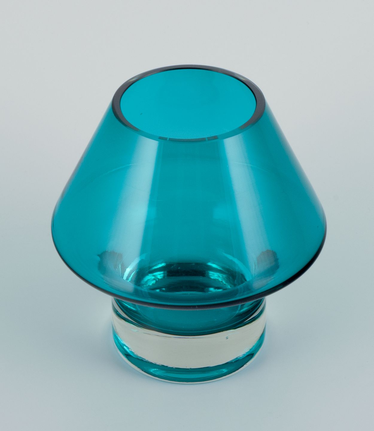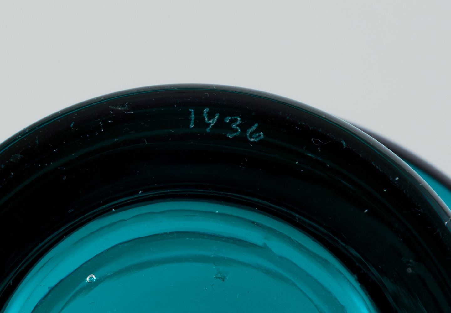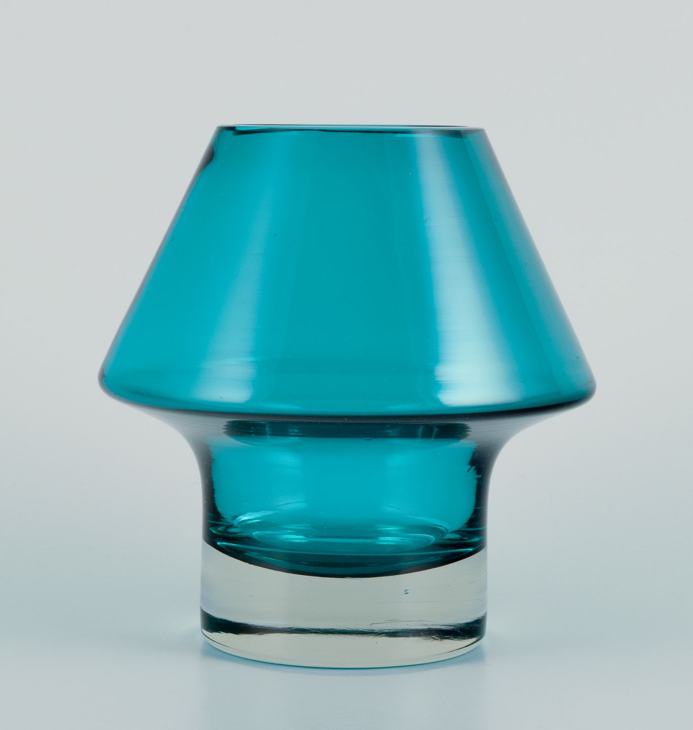 Aimo Okkolin for Riihimäen Lasi, Finland. Petroleumsblå ”Stromboli” vase. Model 1436. Perfekt stand. Signeret. Mål: D 13,0 cm. x H 15,0 cm.
