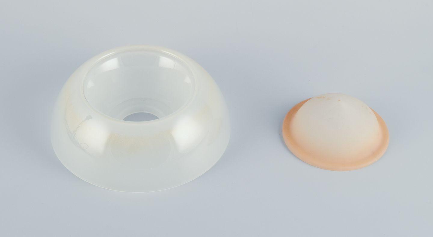 Fog & Mørup. Bordlampe med stamme af chrom, monteret med "Spejlæg" skærm af glas. I perfekt stand. Mål: H 40,0 cm. med skærm x D 18,0 cm