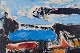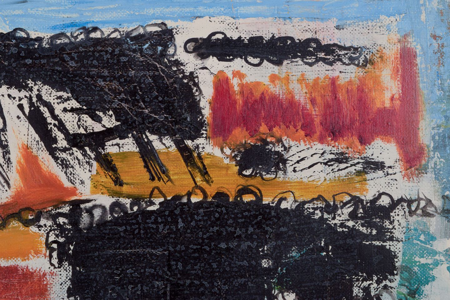 Olie på lærred. Abstrakt komposition. Koloristisk palette.