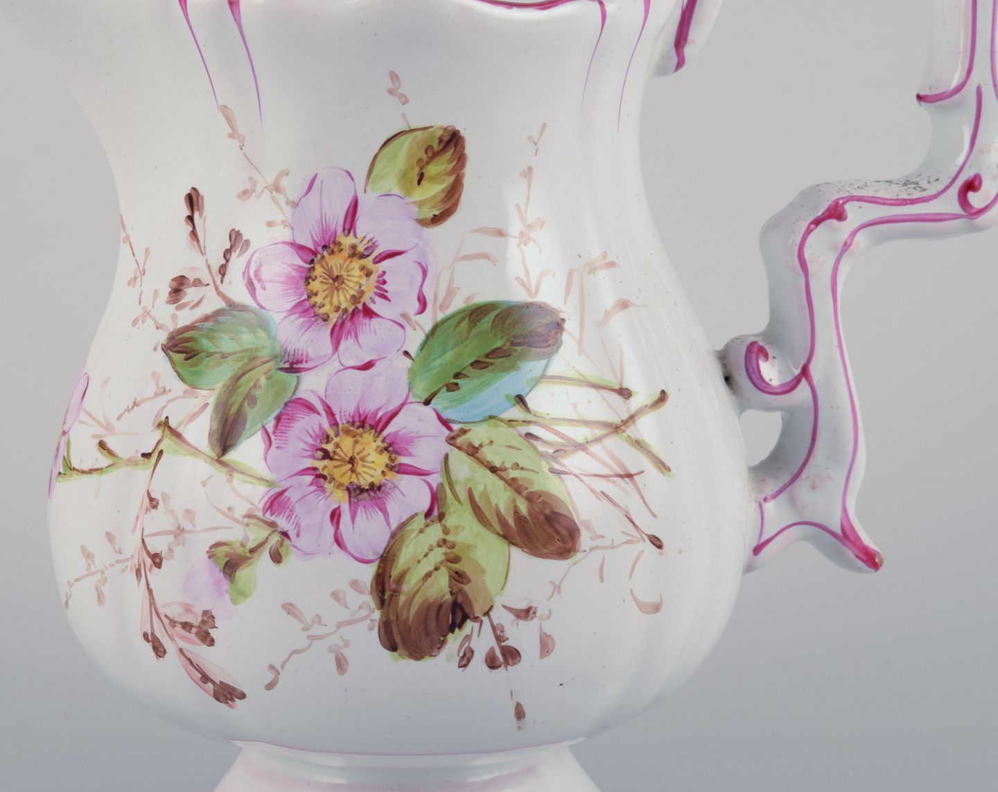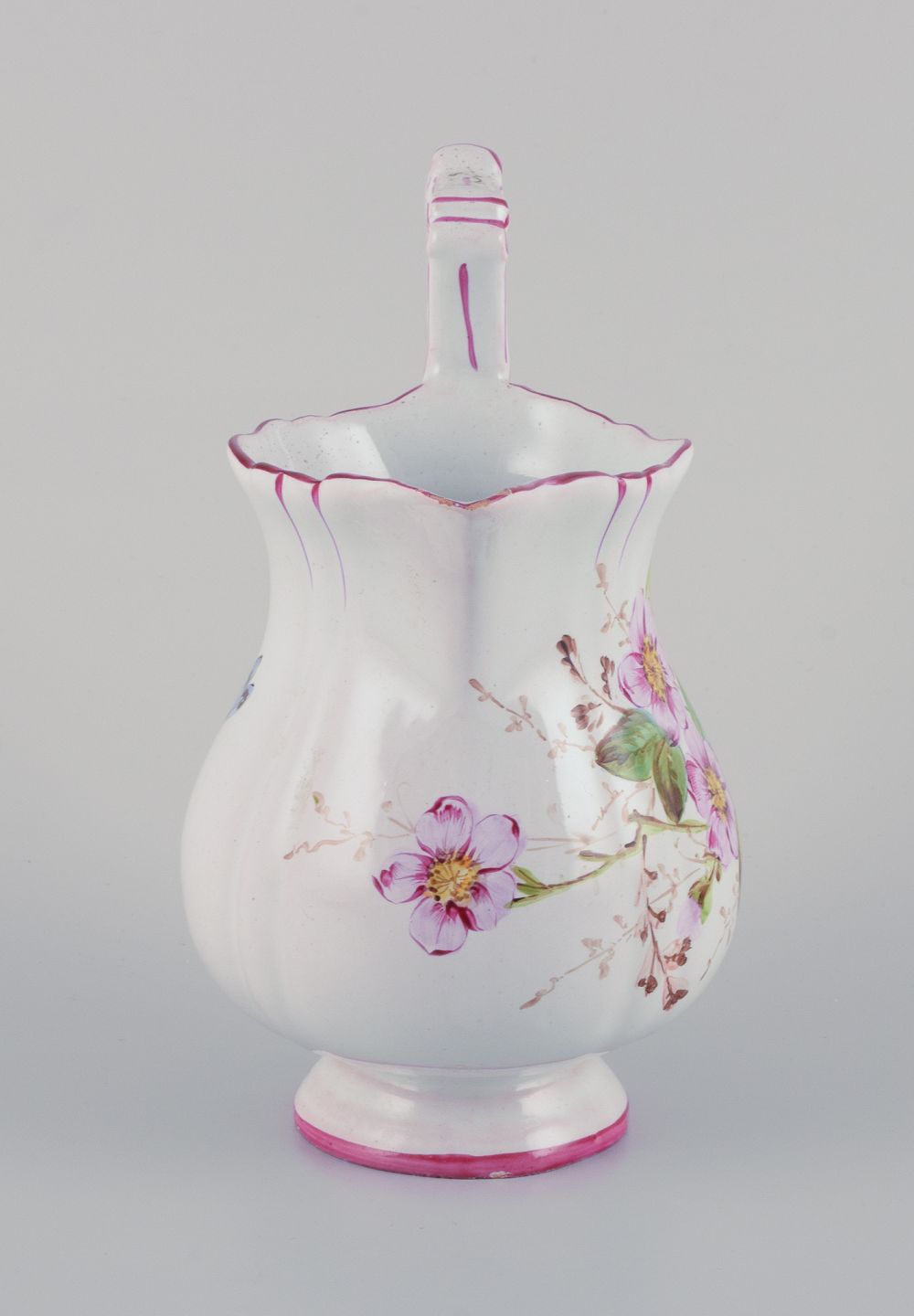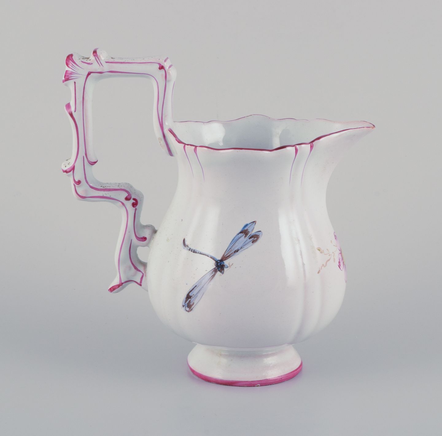 Emile Gallé (stil). Kande i fajance med motiver af blomster og insekter. 1870’erne. Stemplet. I flot stand med små ubetydelige afslag på tuden. Se foto. Mål: H 17,0 cm. x B 16,0 cm. x D 10,0 cm.