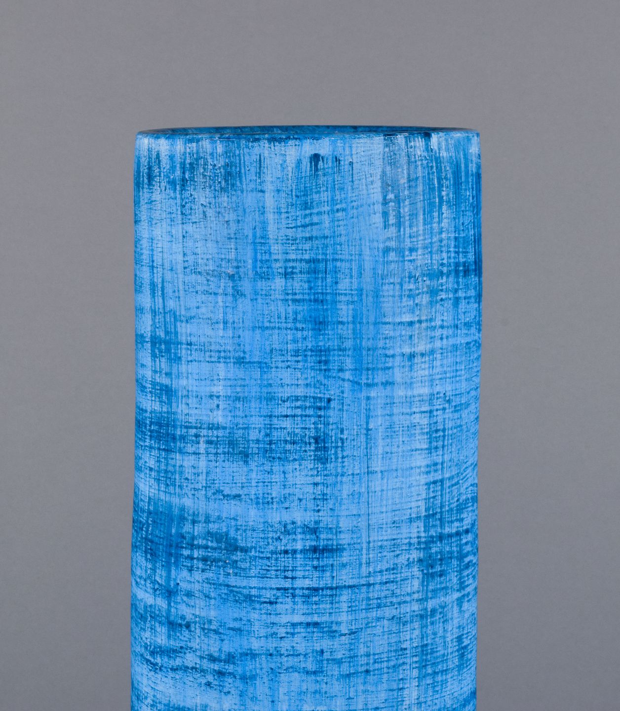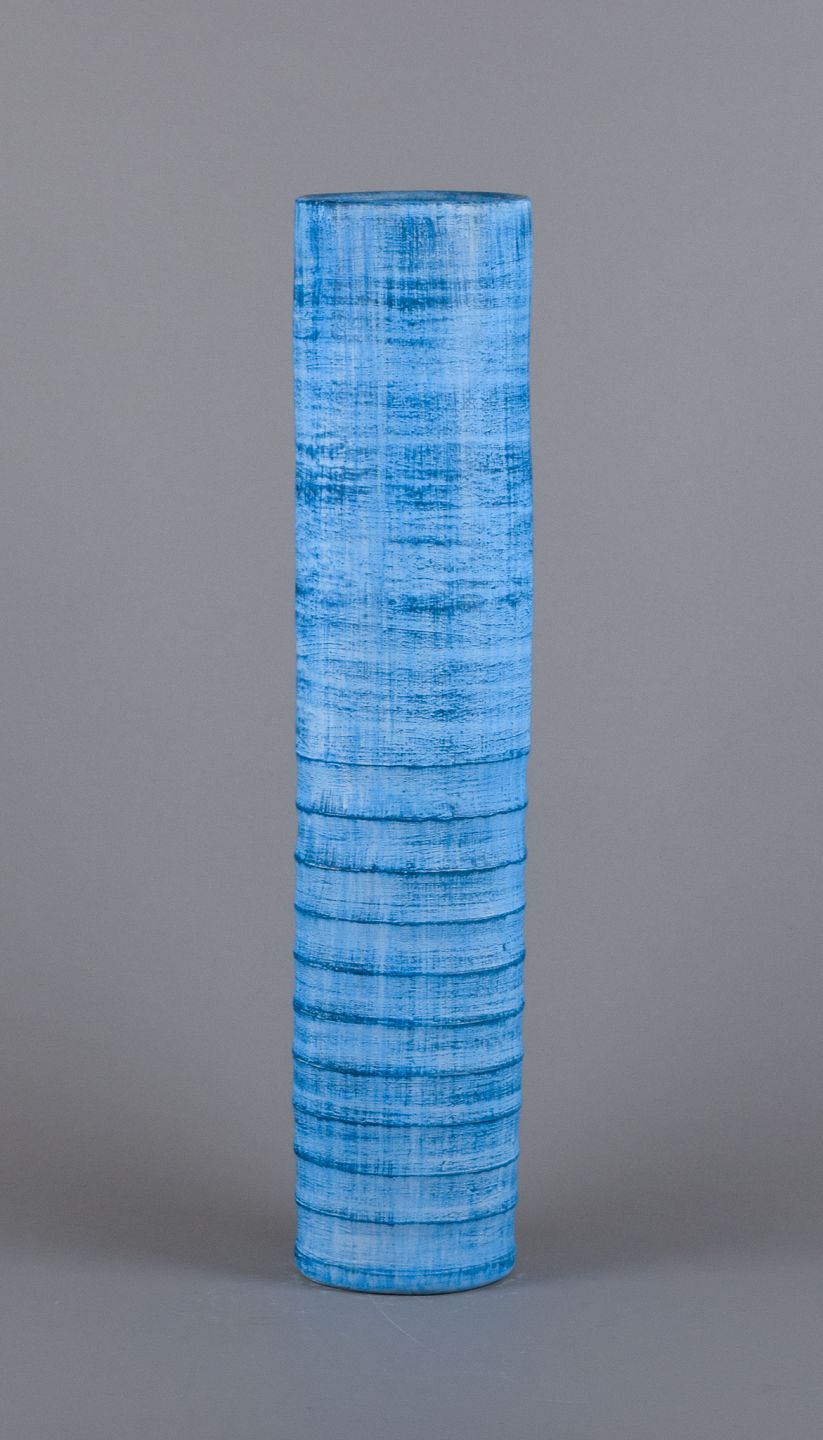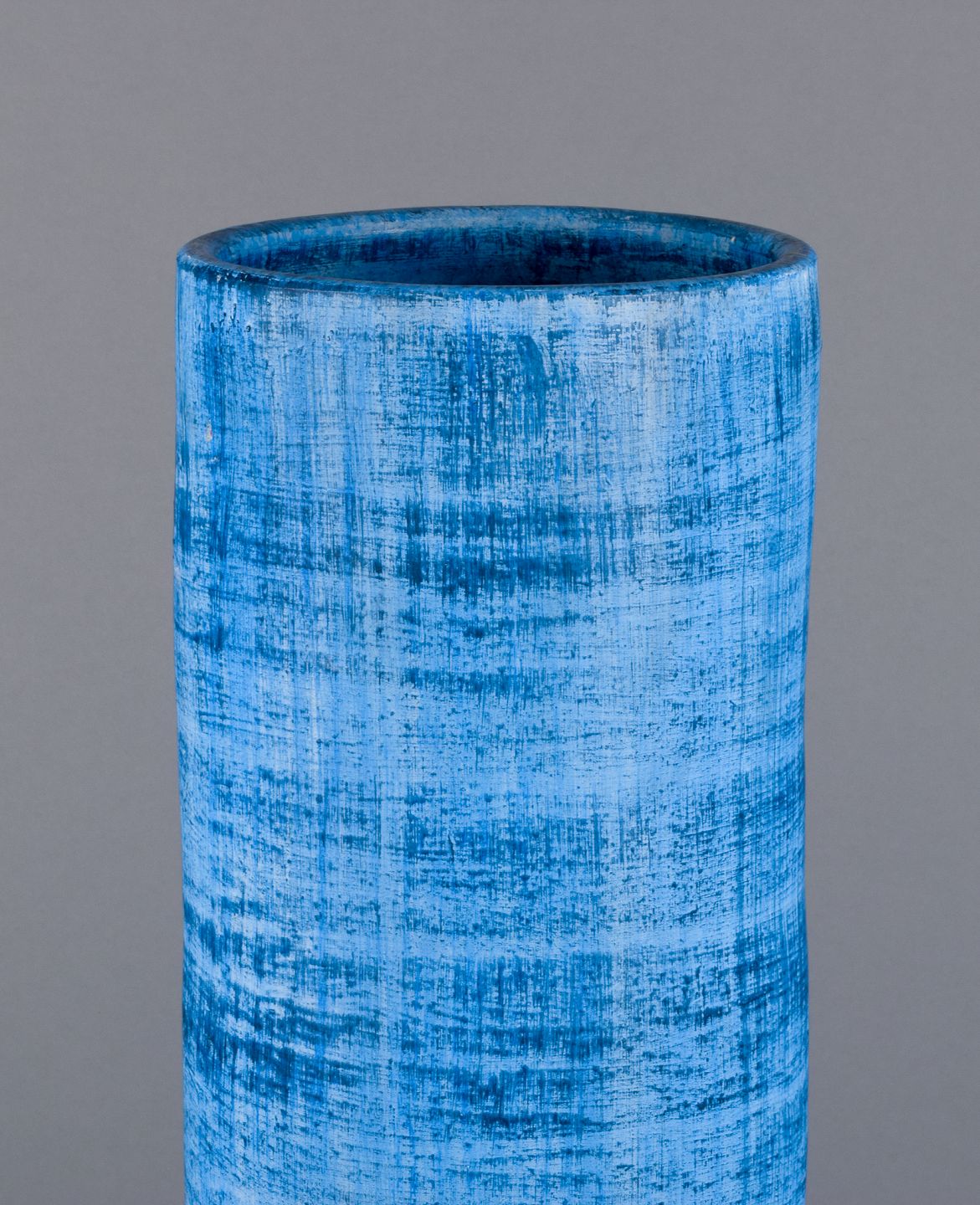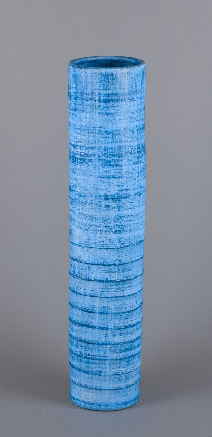 Kolossal cylinderformet gulvvase i keramik. Håndglaseret i blå nuancer. 1970/80'erne. I perfekt stand. Utydeligt signeret. Mål: H 72,5 cm. x D 15,5 cm.
