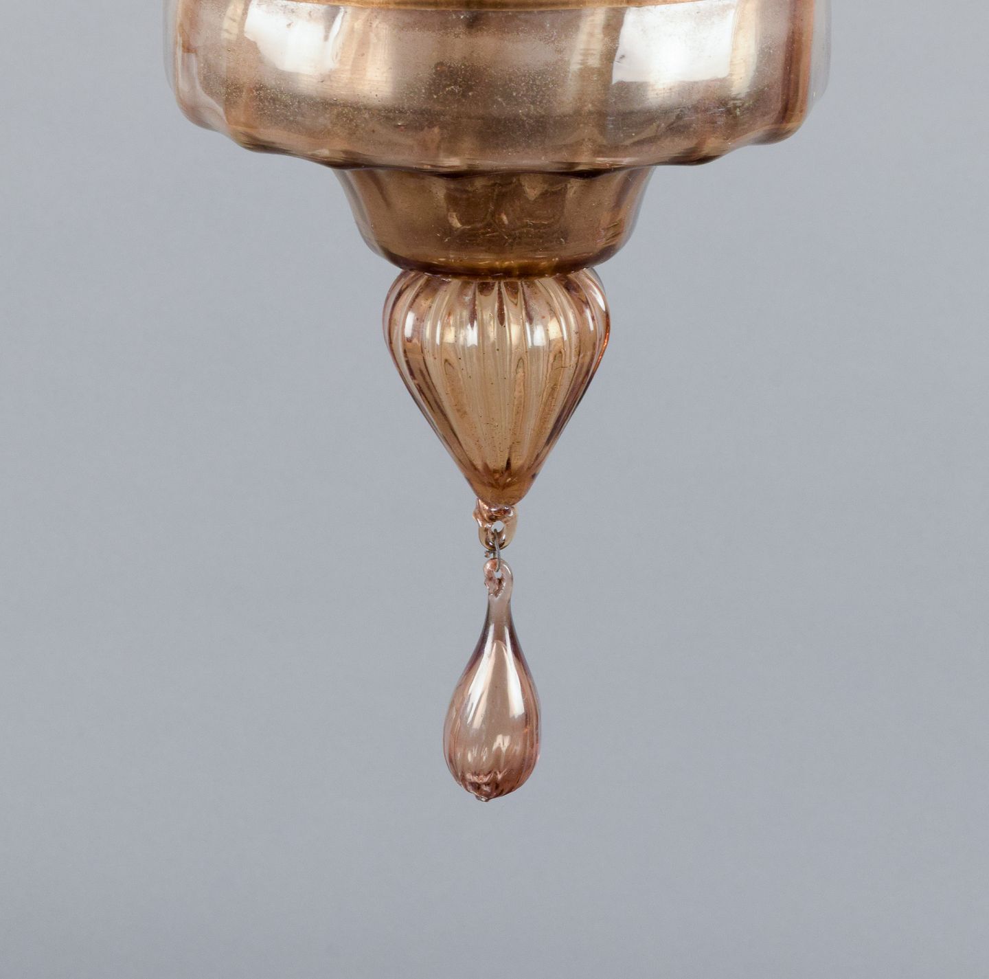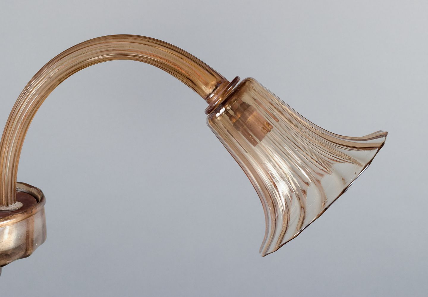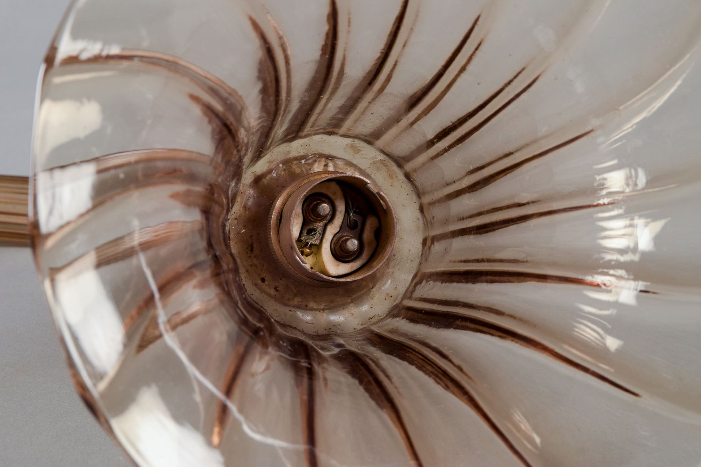 Murano, elegant art deco loftslampe i mundblæst glas, tre pærer. Røgfarvet glas.