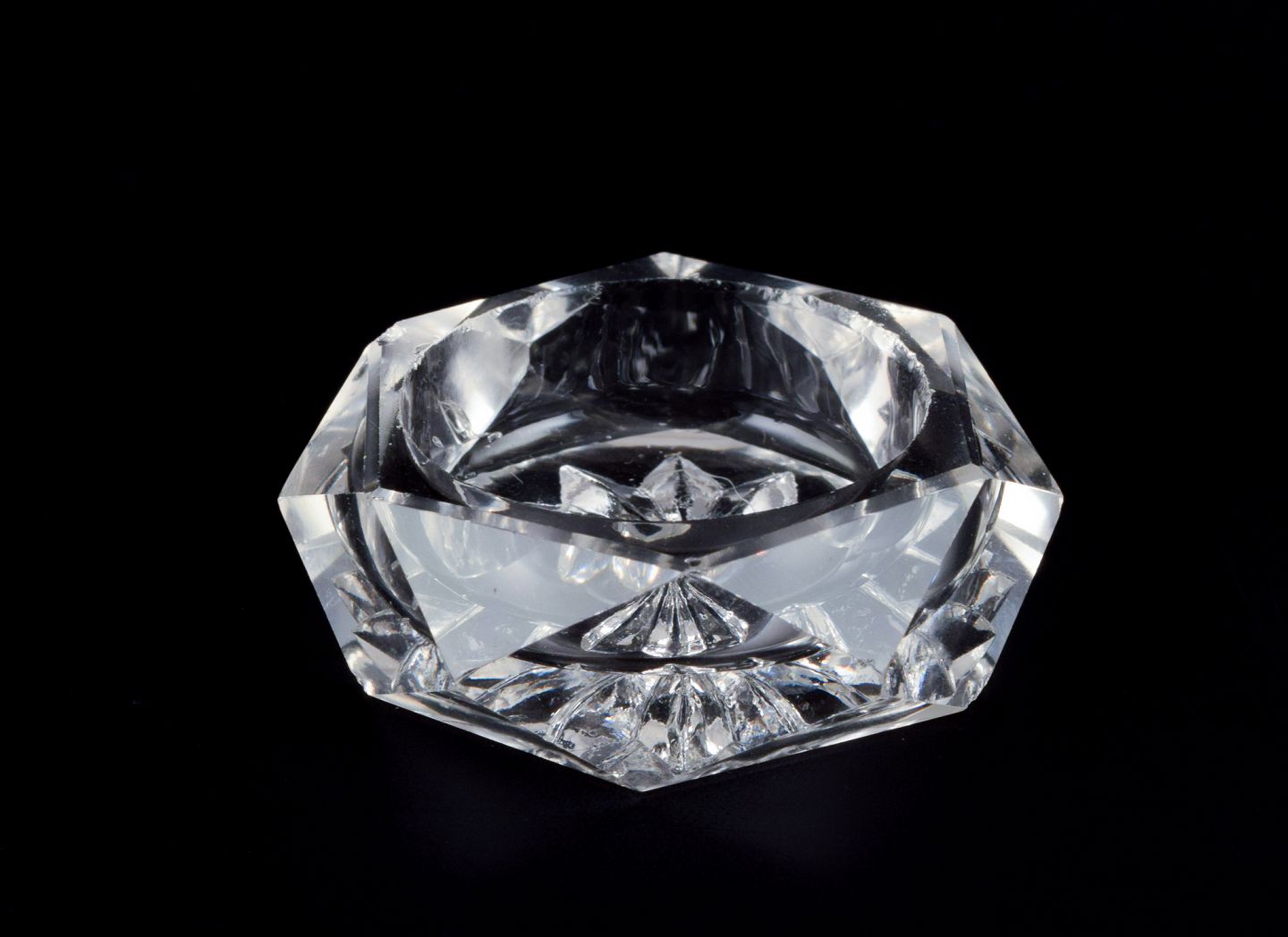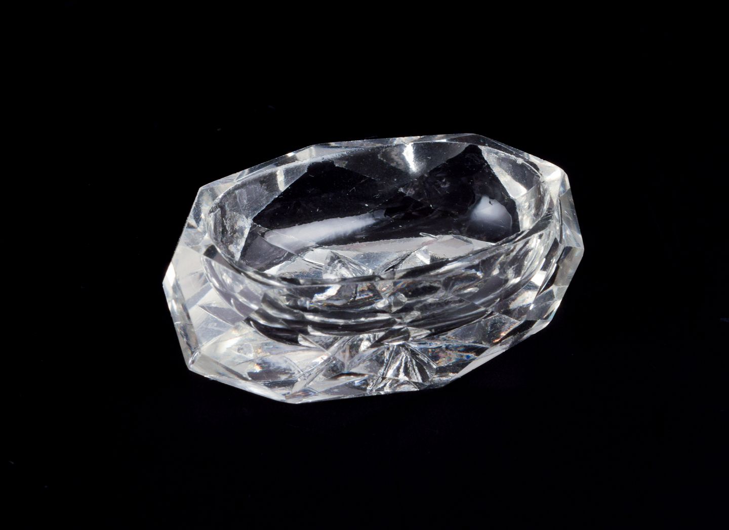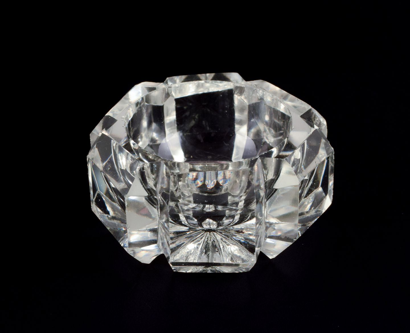 Fåglavik Glasbruk (1874-1980), Sverige. Seks saltkar i håndlavet klart glas. Privat svensk samling. Midt 1900-tallet. I flot stand. Største: D 5,0 cm. x H 2,5 cm.