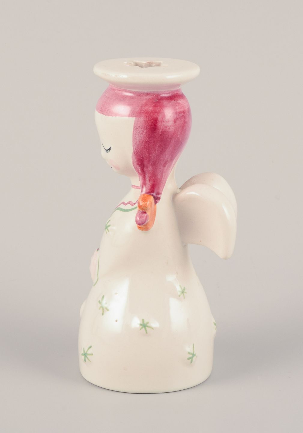 Nymølle, Danmark. Et par lysestager af engle i fajance. Hånddekoreret. Ca. 1960. Stemplet. Perfekt stand. Mål: D 5,0 cm. x H 12,0 cm.