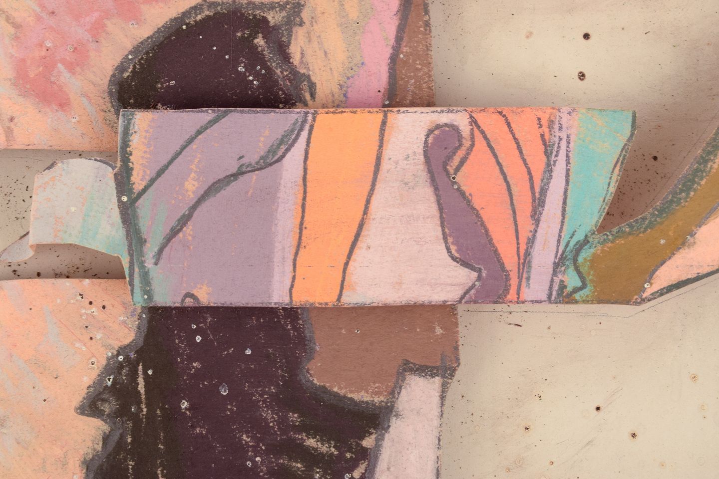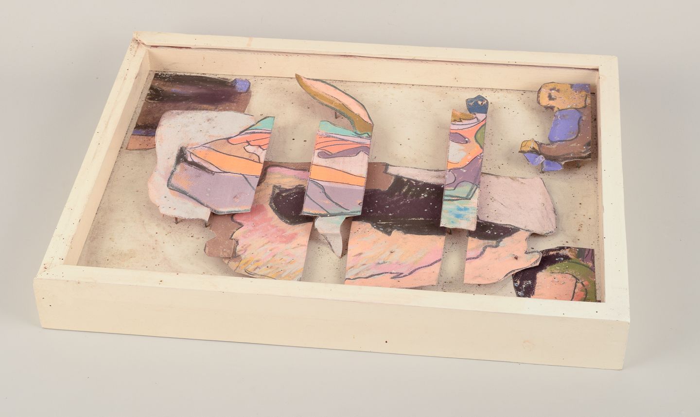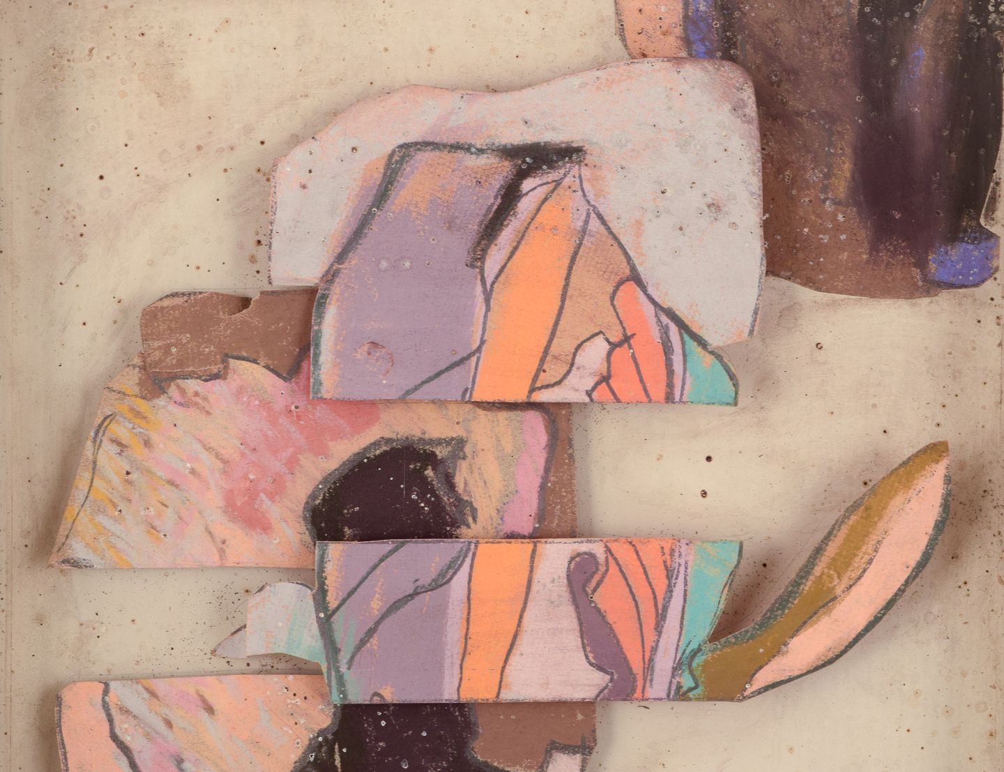 Ingvar Engdahl (1928-1992), svensk kunstner. Mixed media på plade. Abstrakte figurkompositioner. Ca. 1960. I god stand. Trænger til rens. Enkelte mindre revner i papiret. Mål: 29,0 cm. x 38,5 cm.
