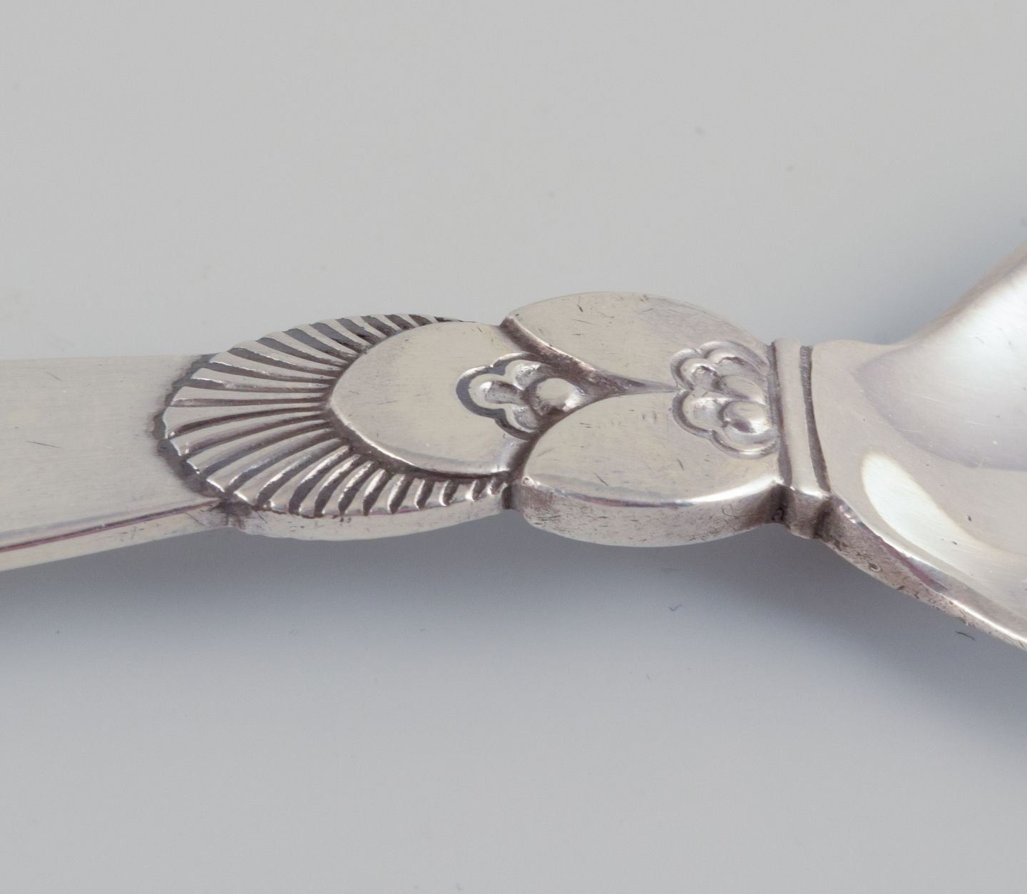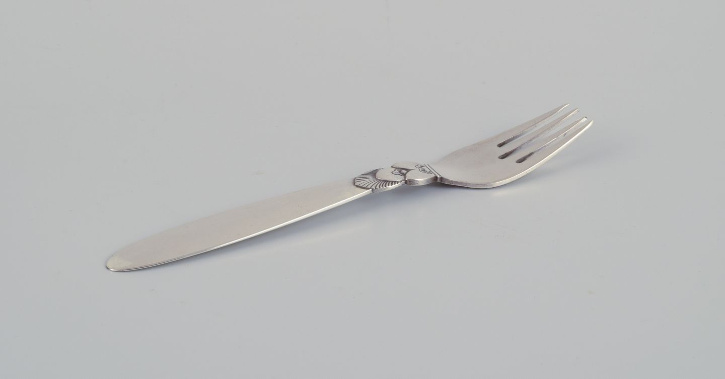 Georg Jensen Kaktus. Barnebestik: barneske og barnegaffel. Sterlingsølv. Efter 1944 stempel. I flot stand, uden ridser. Ske: L 15,0 cm. Gaffel: L 14,3 cm.