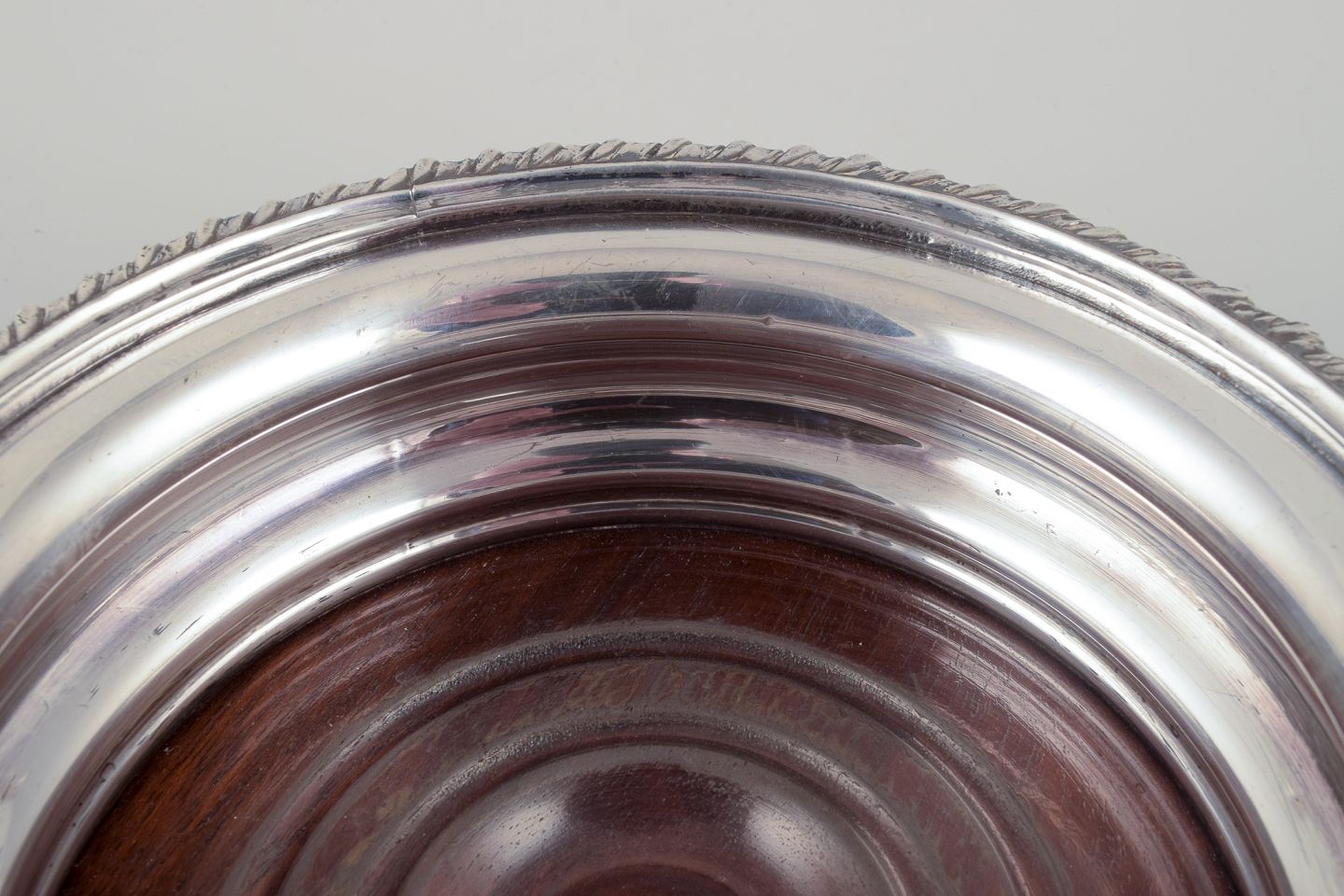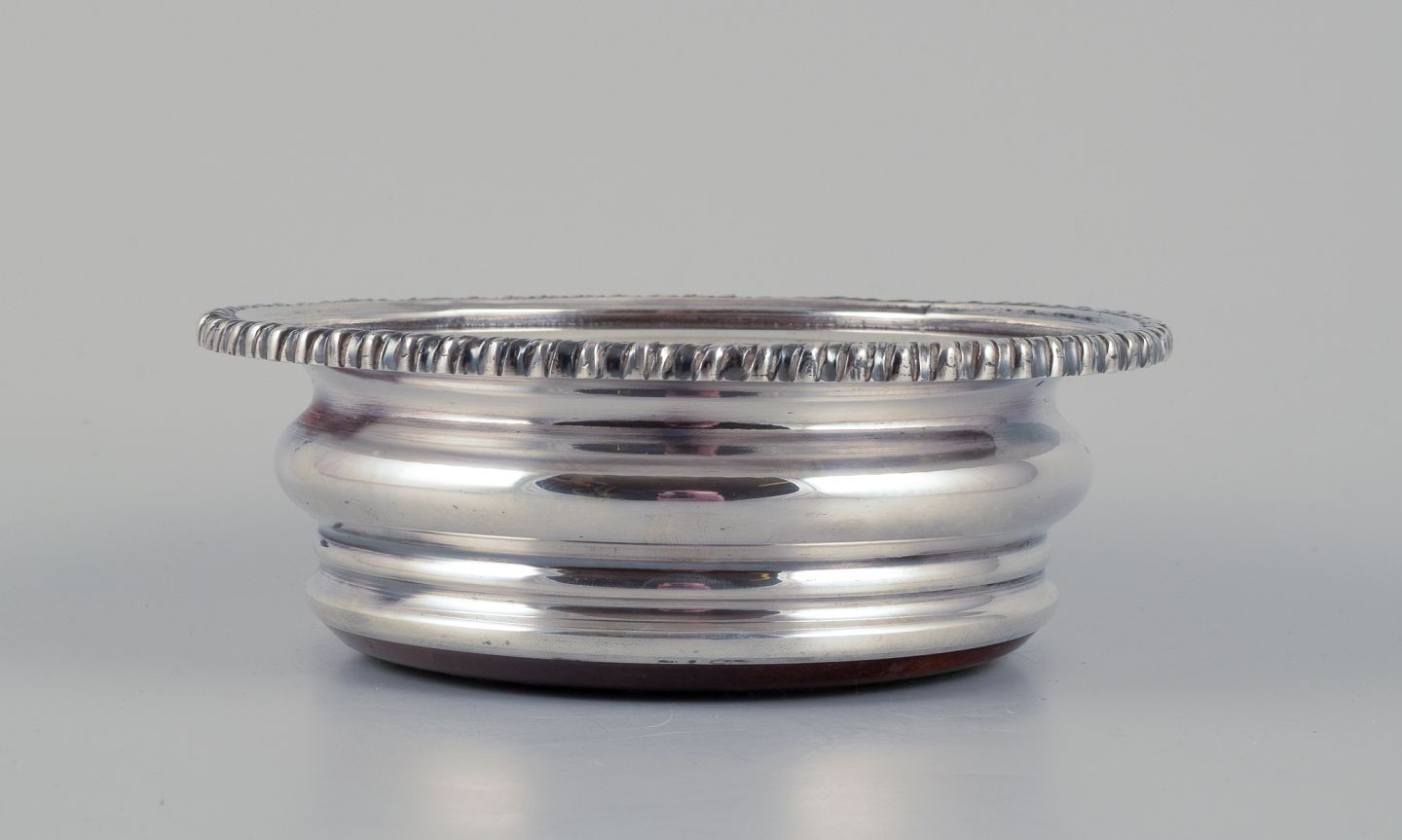 Dansk flaskebakke i nysølv og træ. God tung kvalitet.
