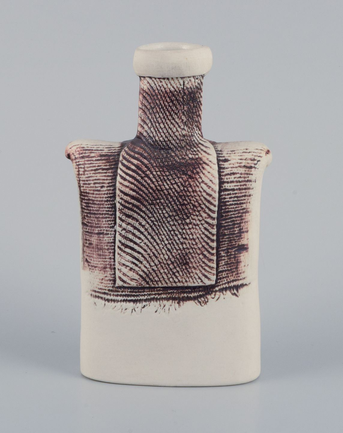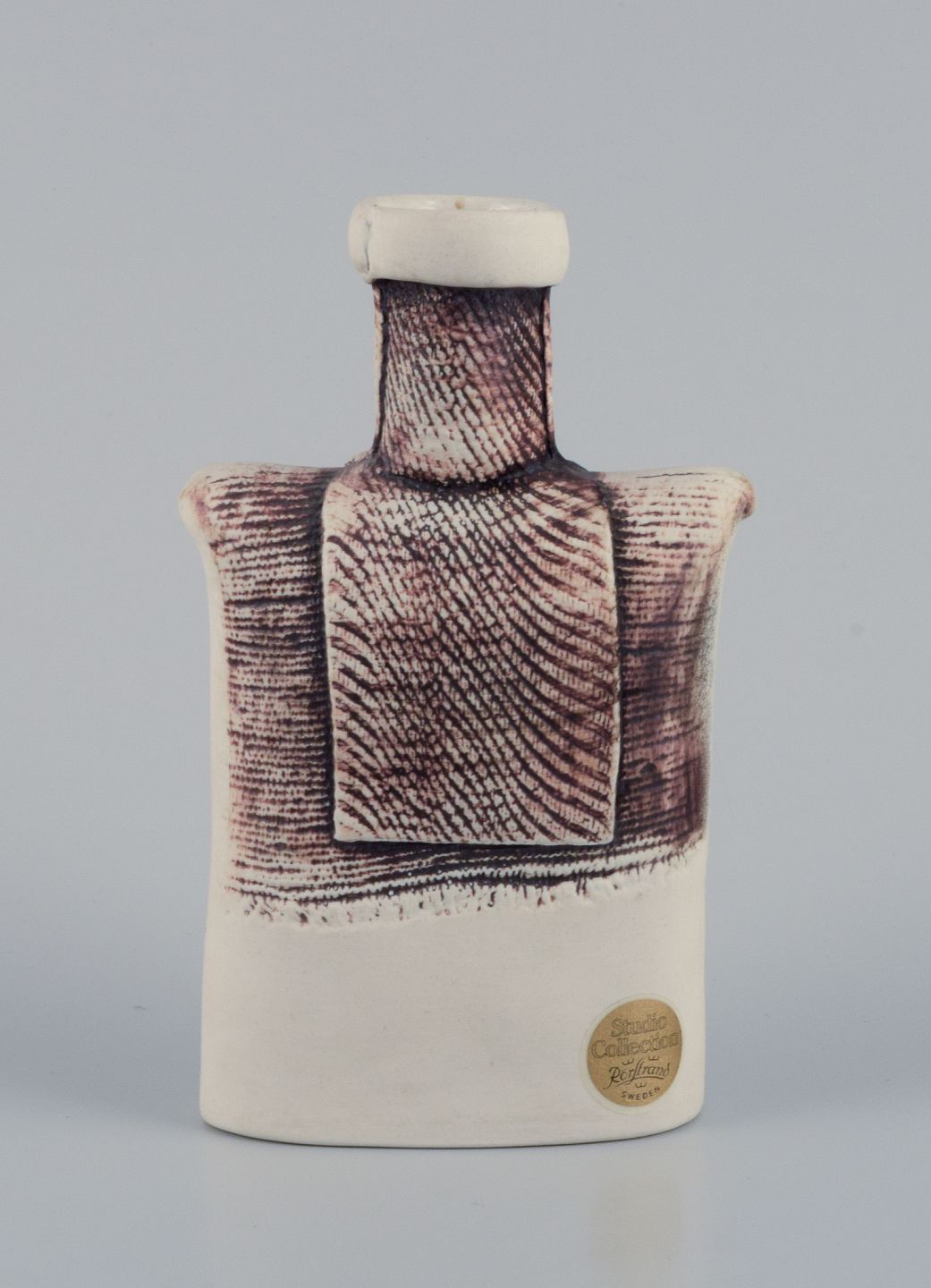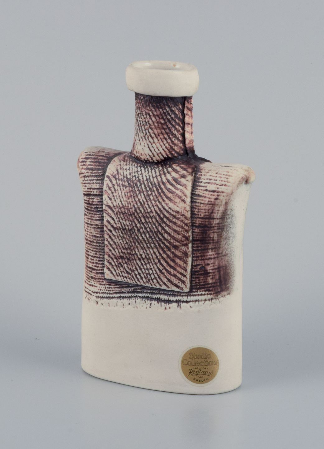 Suzanne Öhlén (f. 1953) for Rörstrand. Porcelænsvase med glasur i brune og hvide nuancer. 1980’erne. Stemplet. I perfekt stand. Første sortering. Mål: H 15,0 cm. x D 9,2 cm.