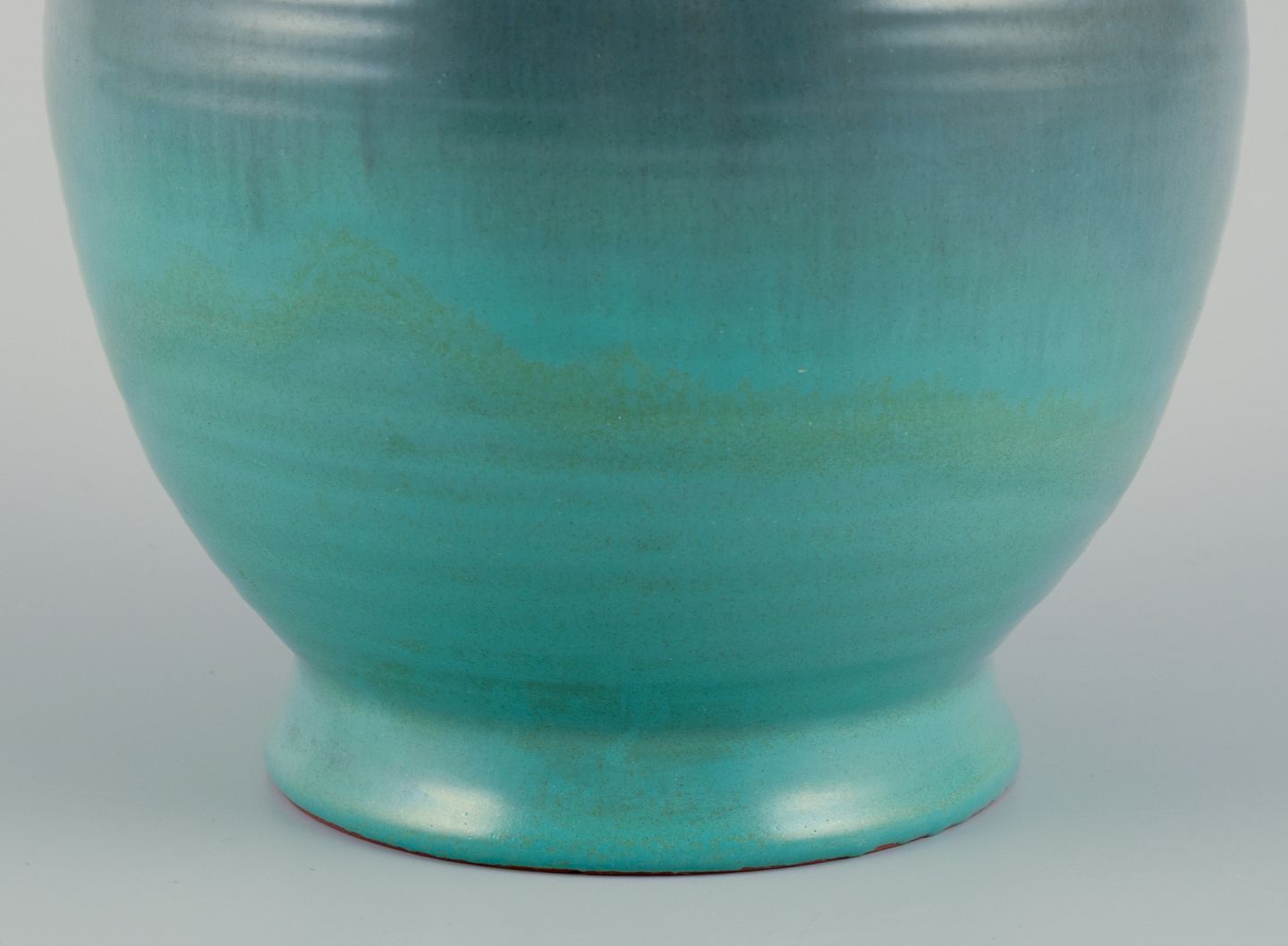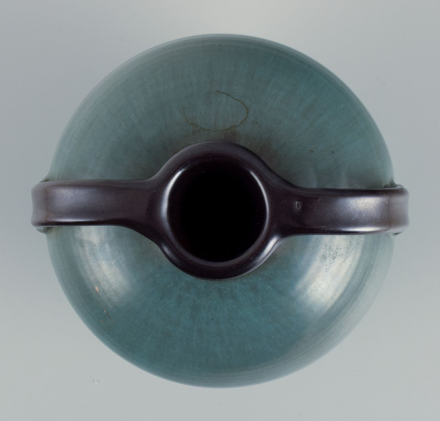 Upsala Ekeby keramikvase med to hanke. Glasur i grønlige toner.