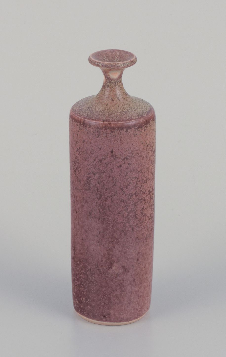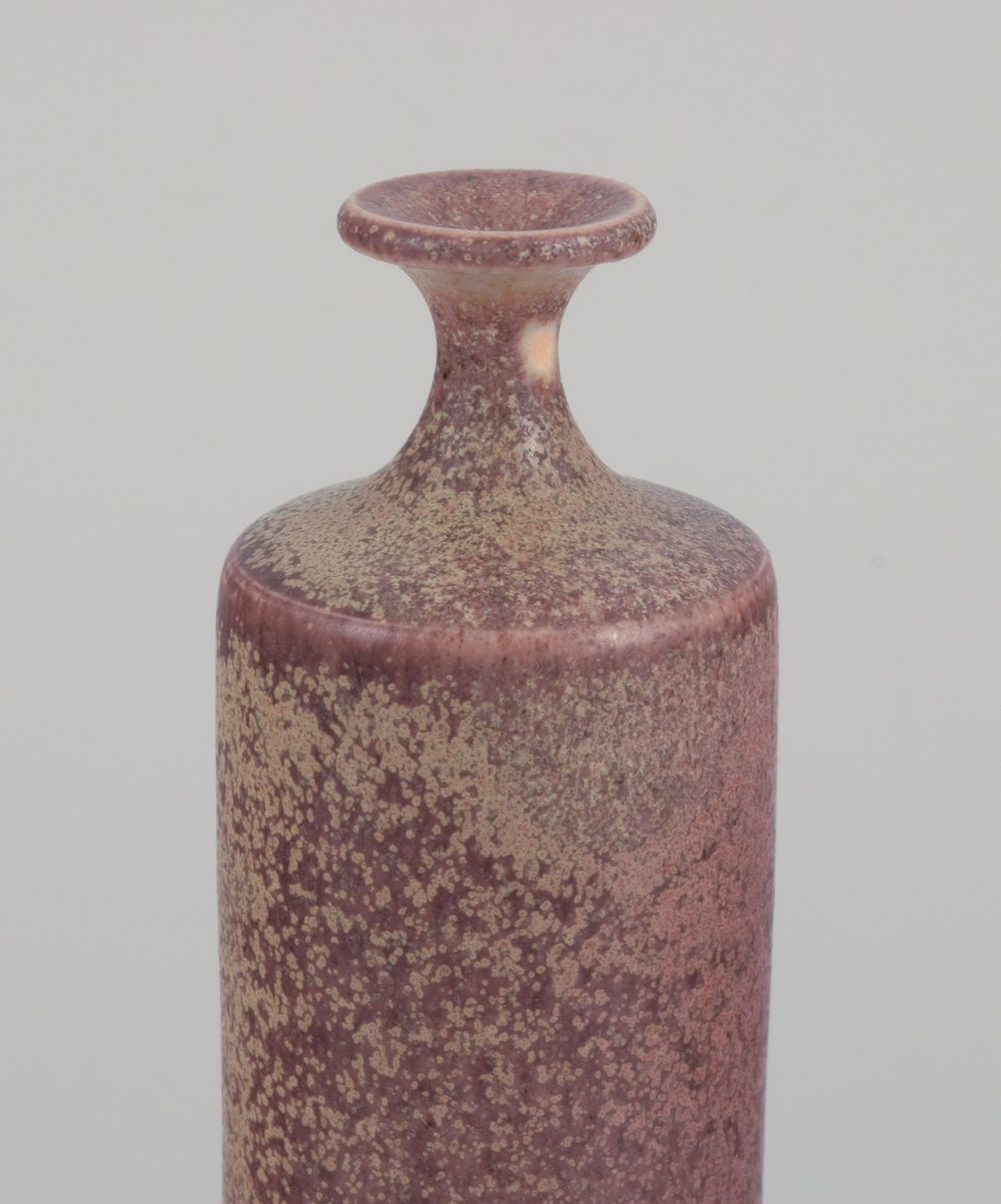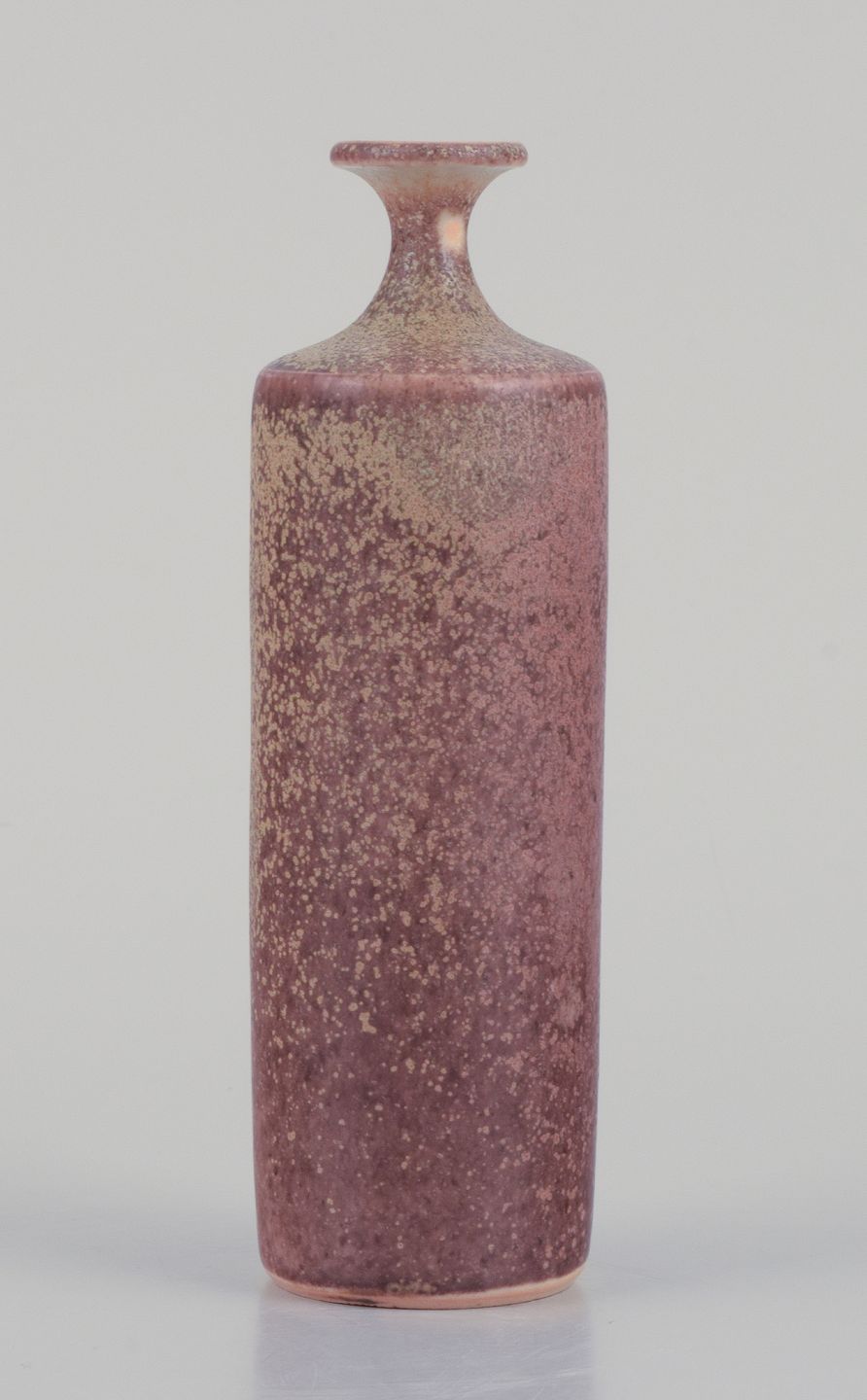 Unika miniaturevase med glasur i grønbrune nuancer.