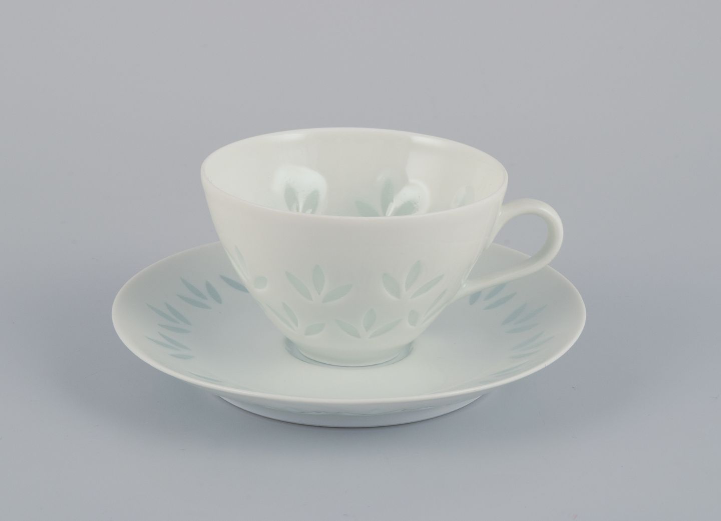 Friedl Kjellberg for Arabia, Finland. Et sæt på fire kaffekopper med tilhørende underkopper i ris-porcelæn. Ca. 1960. Stemplet. I perfekt stand. Kop: D 7,0 cm. x 4,5 cm. Underkop: D 11,2 cm.