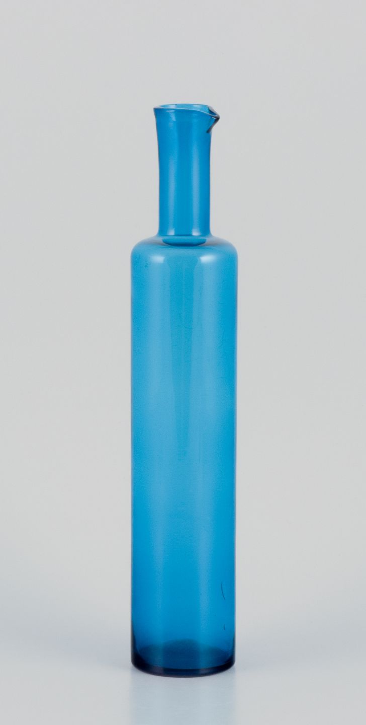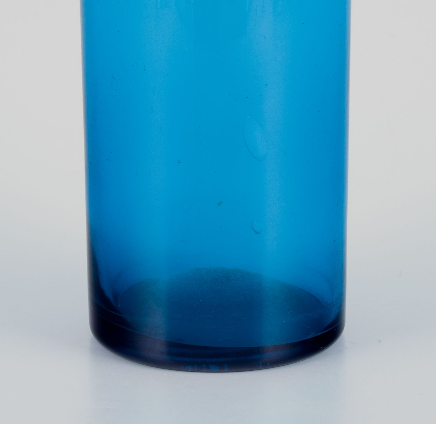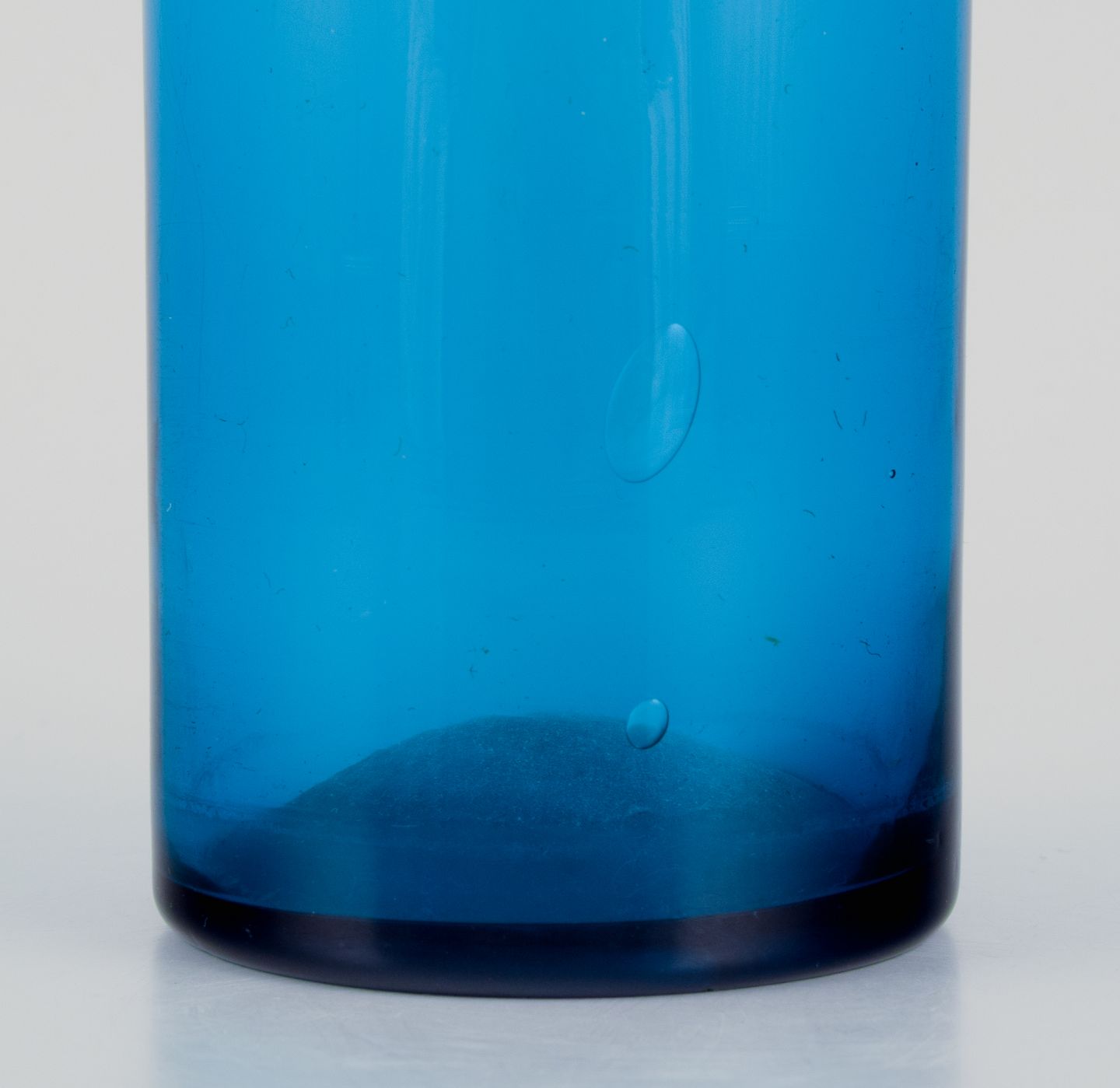 Vase/flaske i petroleumsblå mundblæst kunstglas.