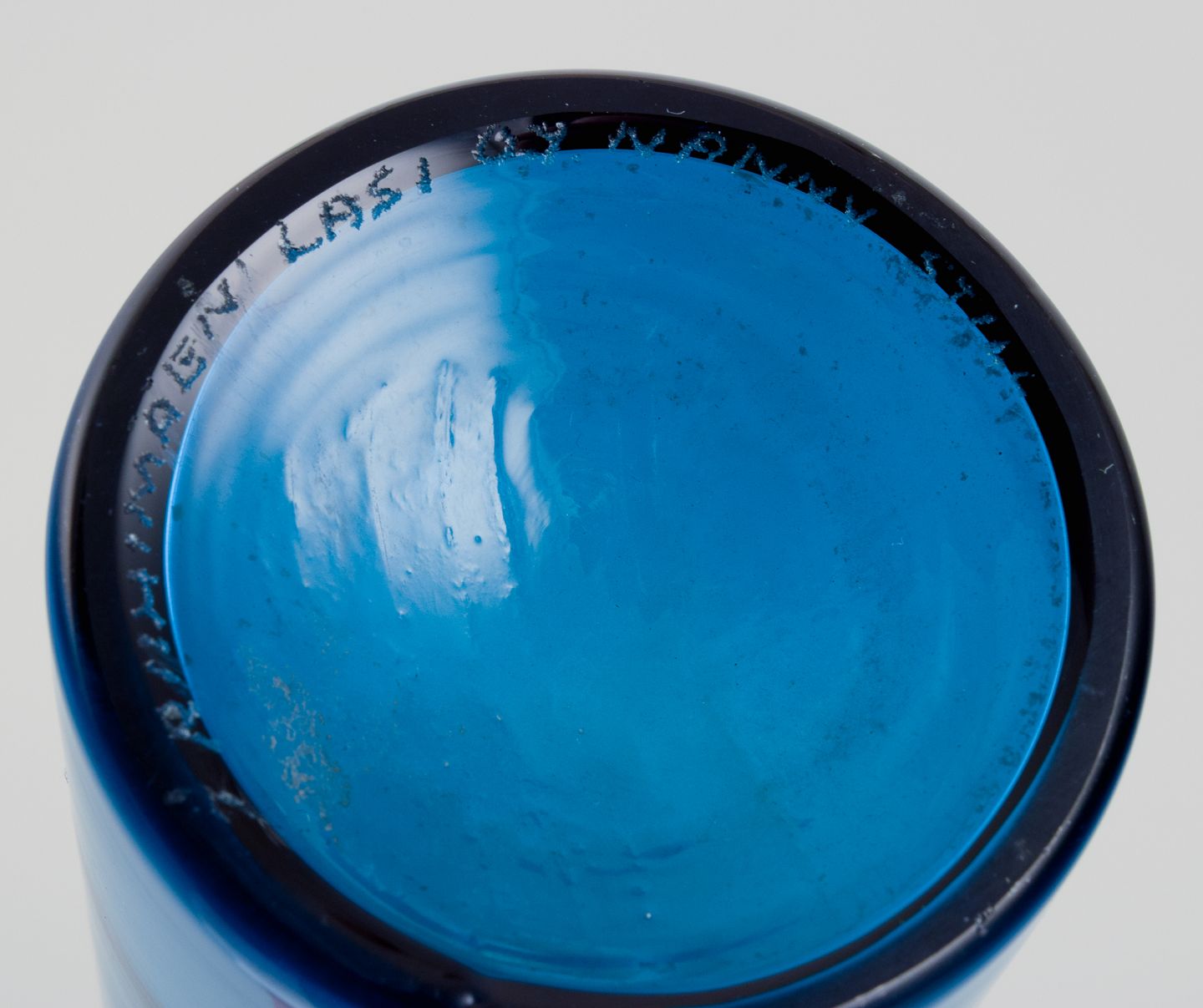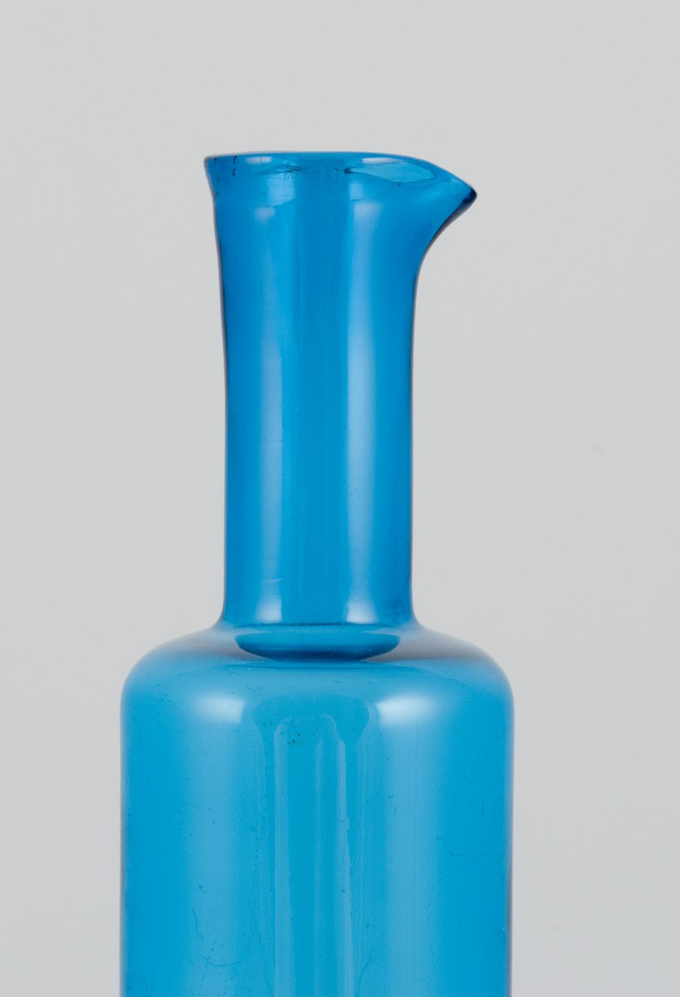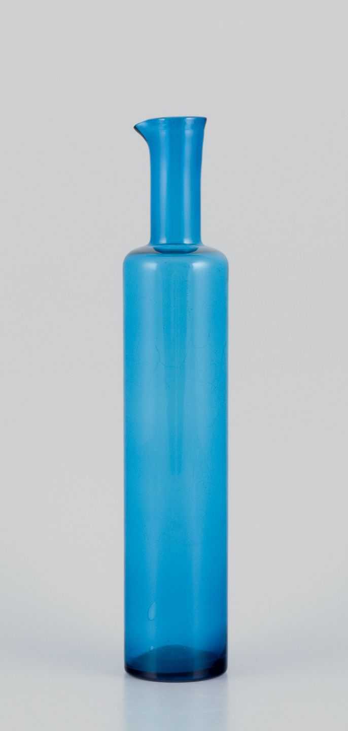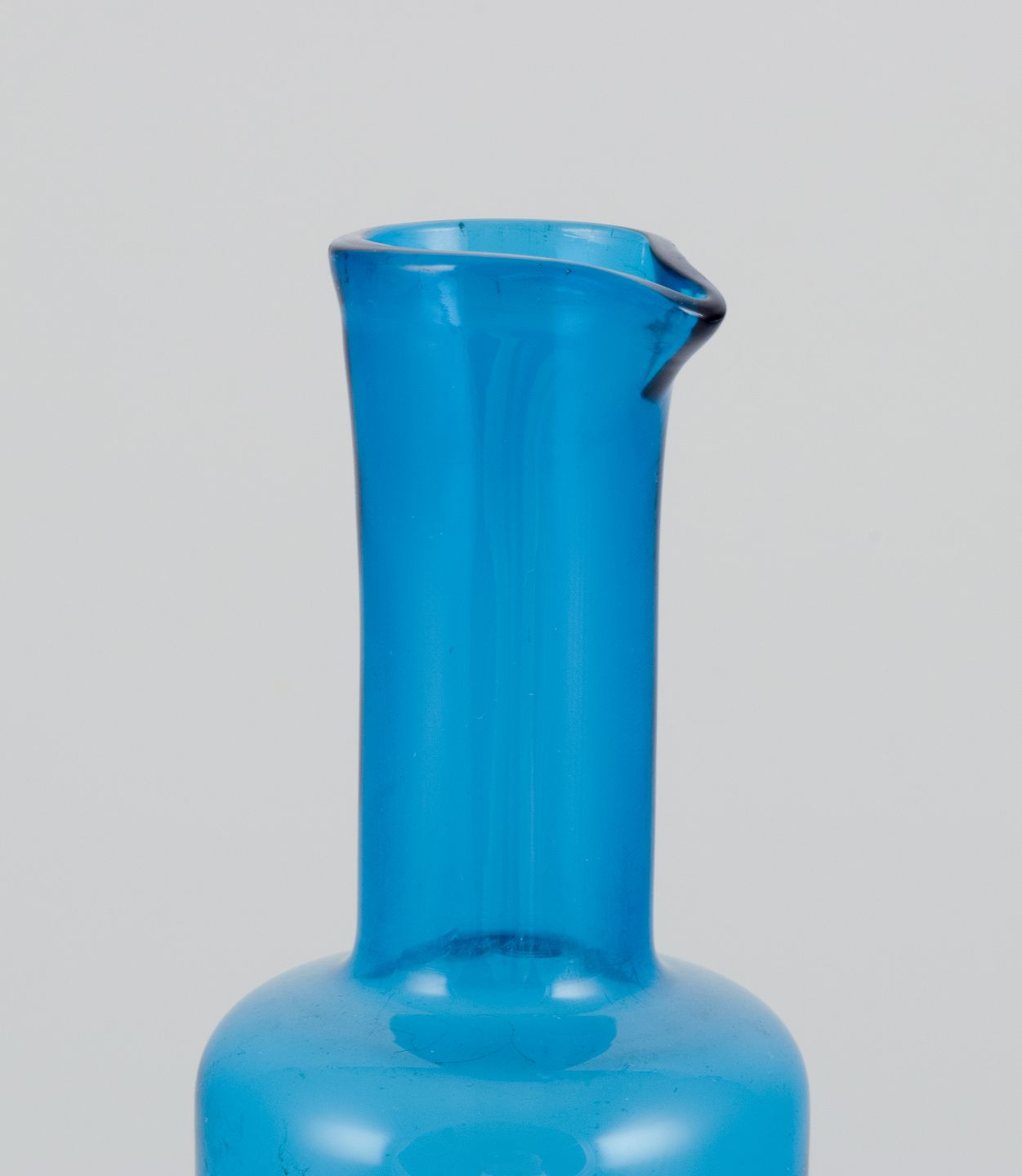 Vase/flaske i petroleumsblå mundblæst kunstglas.