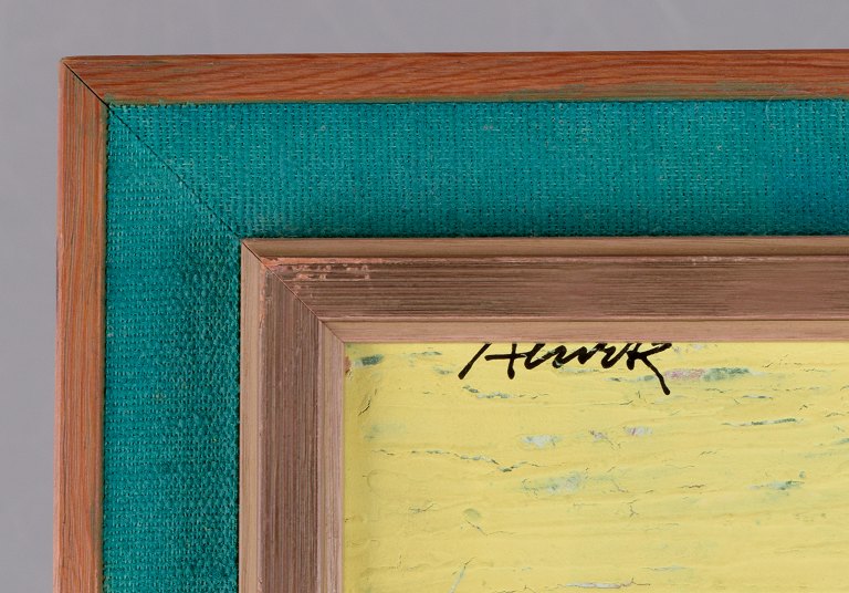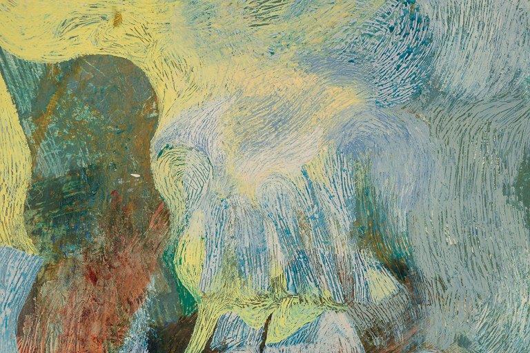 Skandinavisk kunstner. Olie på plade. Abstrakt komposition.