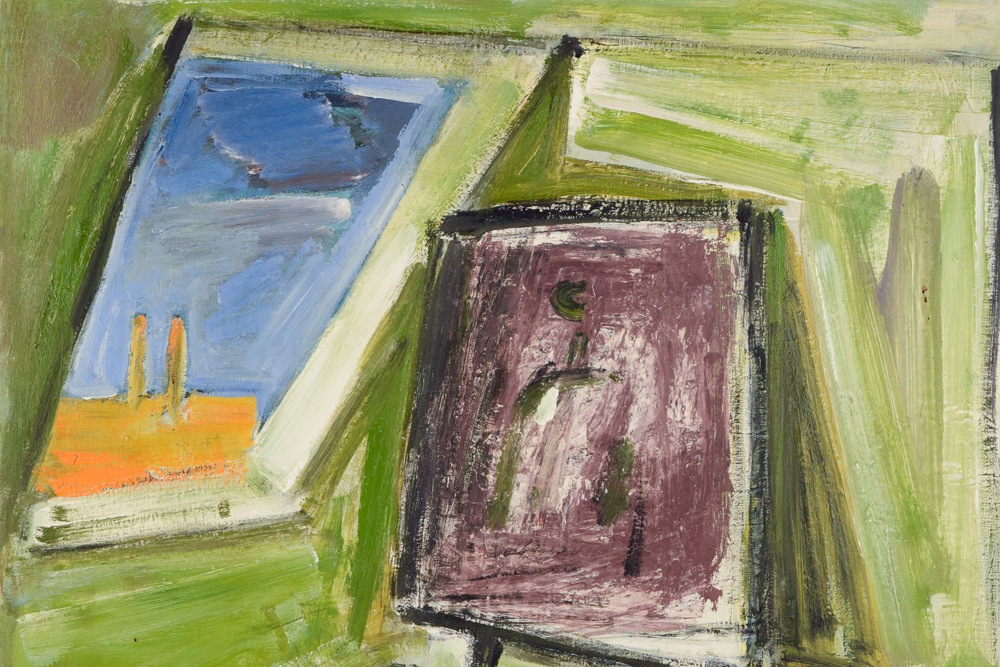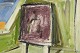 Pär Lindblad (1907-1981), olie på lærred. Modernistisk opstilling. Interiør fra atelier.