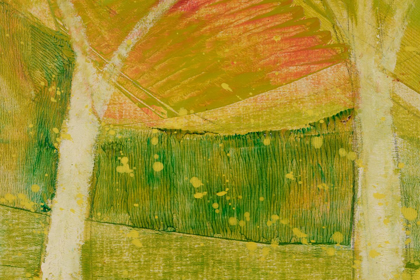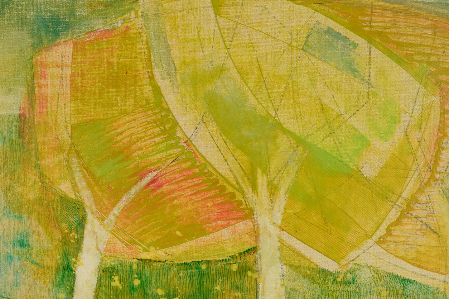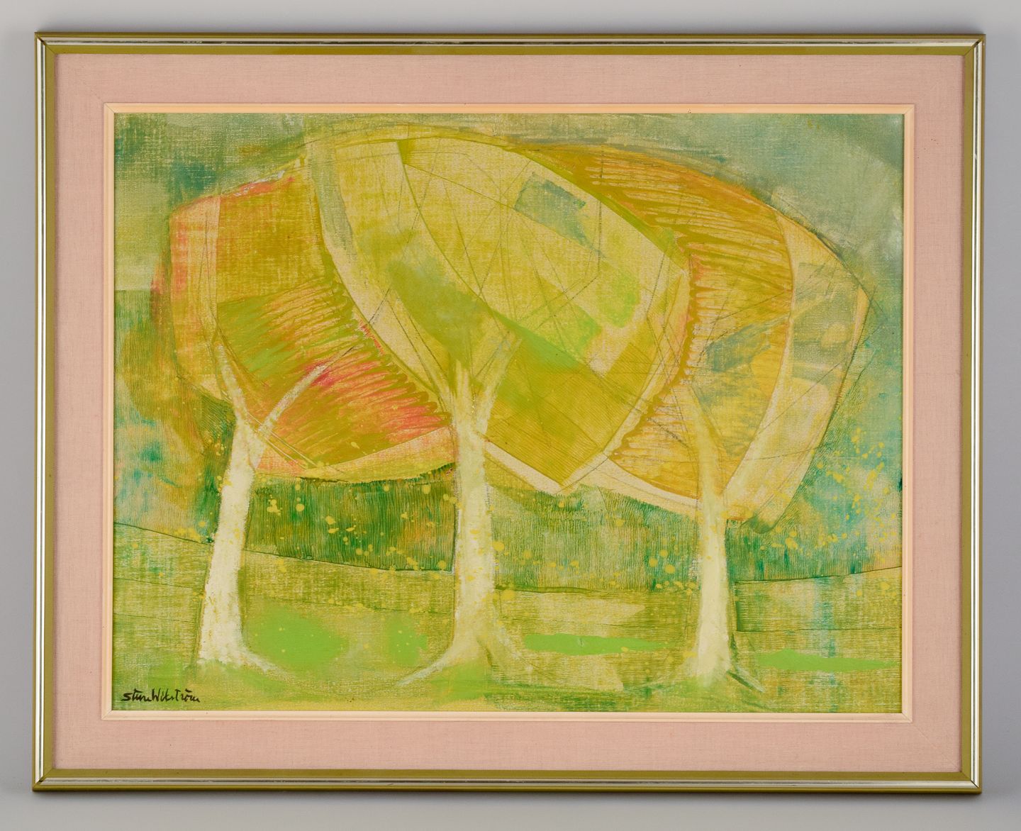 Sture Wickström (1921-1993), svensk kunstner. Olie på lærred. Modernistisk landskab.