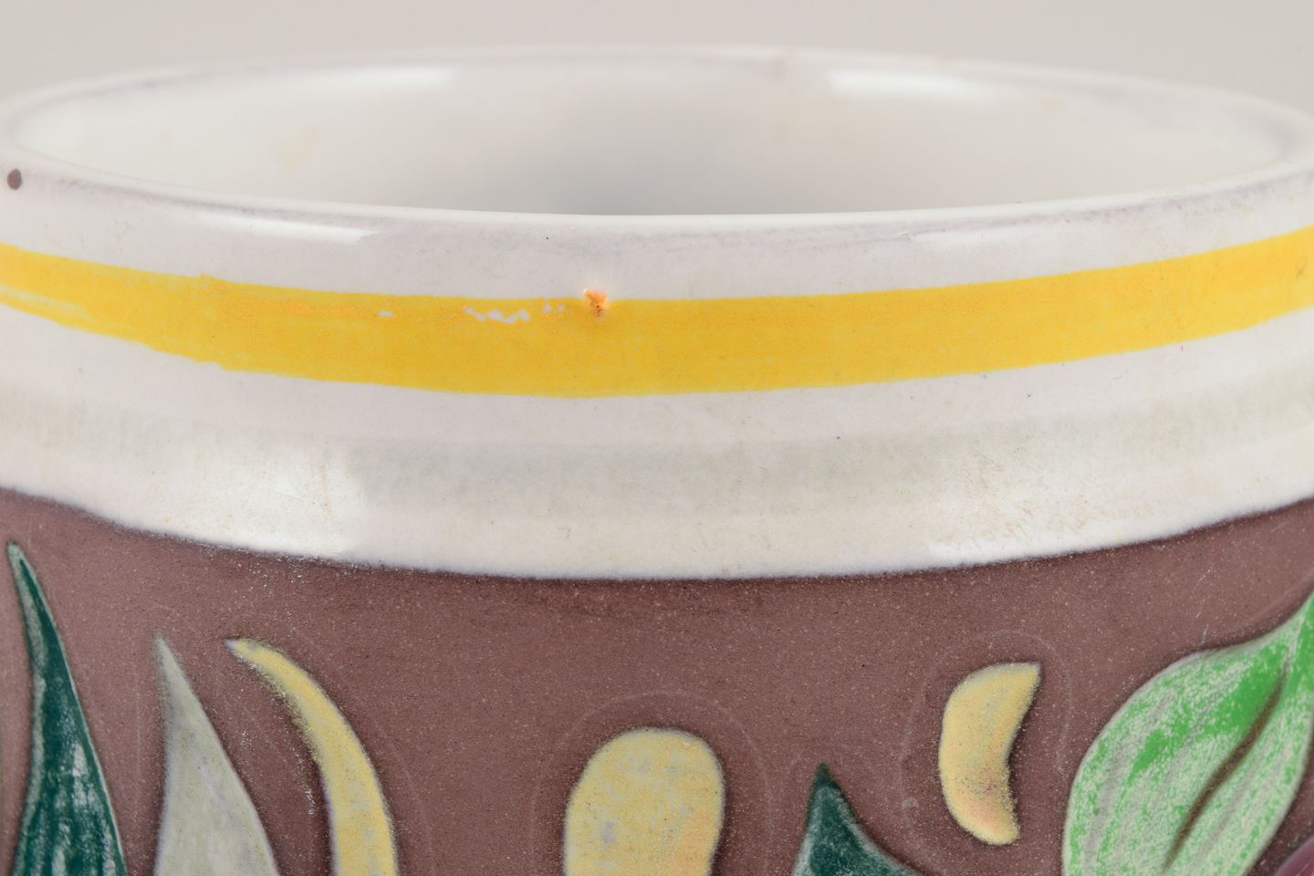 Mari Simmulson (1911-2000) for Upsala Ekeby. Urtepottekrukke i keramik. Polykrom glasur med blomstermotiver. Ca. 1960. Stemplet. I flot stand. Mål: D 13,0 cm. x H 11,0 cm.