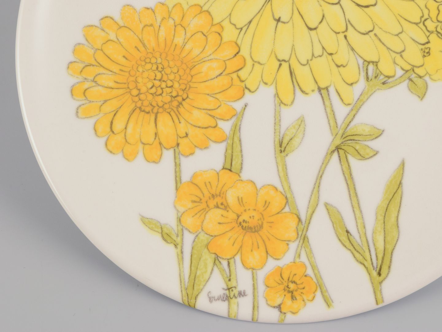 Ernestine Salerno, Italien. Et sæt på fem tallerkner i keramik. Håndmalet med solsikker. Signeret ”Ernestine”. 1970’erne. Perfekt stand. Mål: D 22,0 cm. x 2,5 cm.