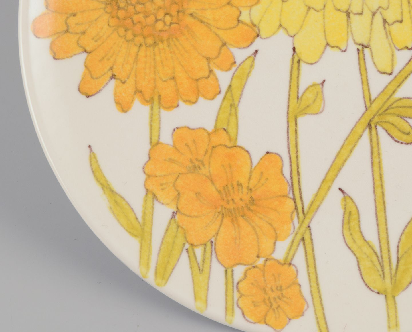 Ernestine Salerno, Italien. Et sæt på fem tallerkner i keramik. Håndmalet med solsikker. Signeret ”Ernestine”. 1970’erne. Perfekt stand. Mål: D 19,5 cm. x H 2,5 cm.