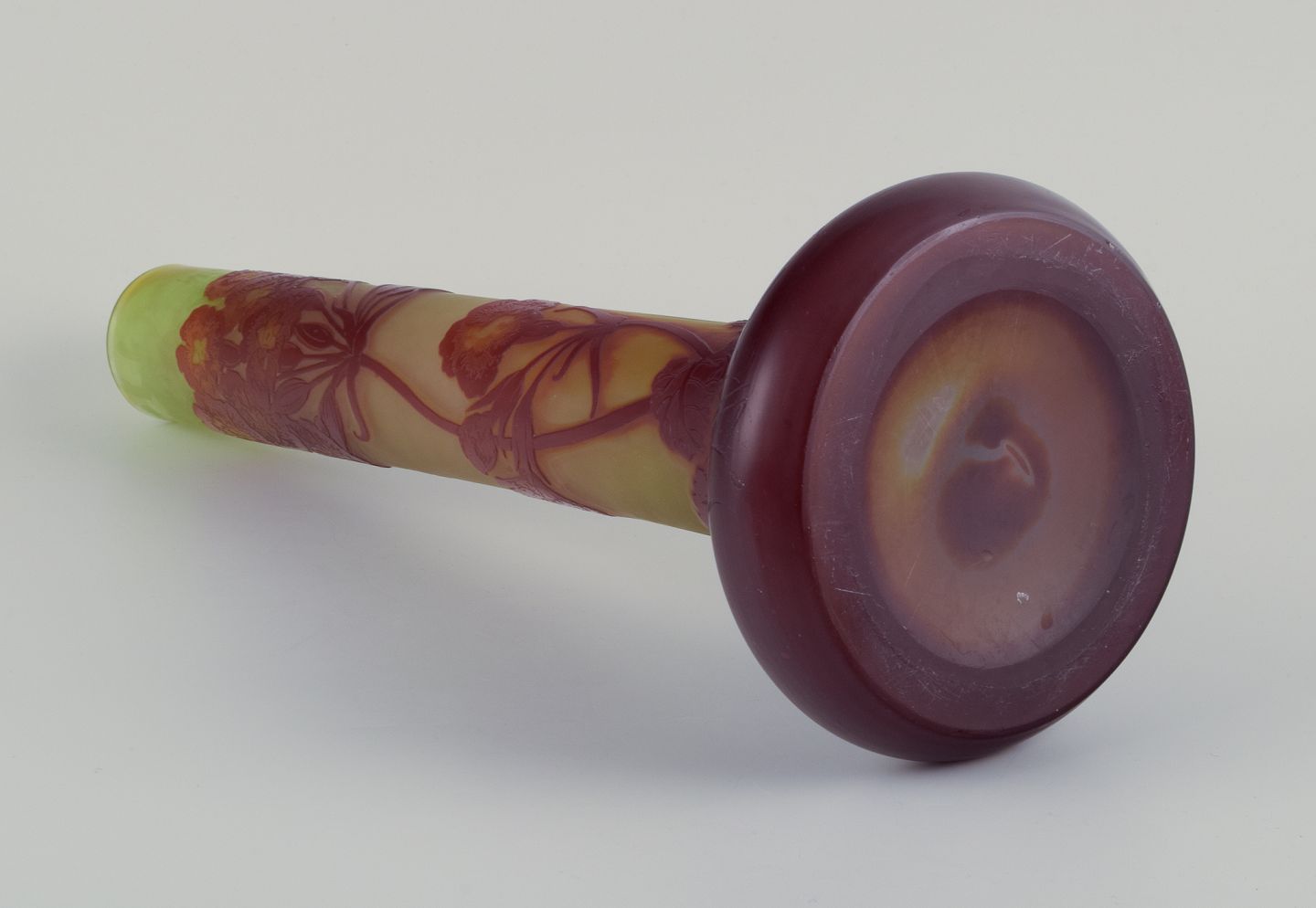 Émile Gallé (1846-1904), Frankrig. Kolossal kunstglasvase med motiv af blomster i lilla nuancer på grøn bund. Pâte de verre teknik. Ca. 1920. Stemplet. I perfekt stand. Mål: H 44,5 cm. x D 15,5 cm.