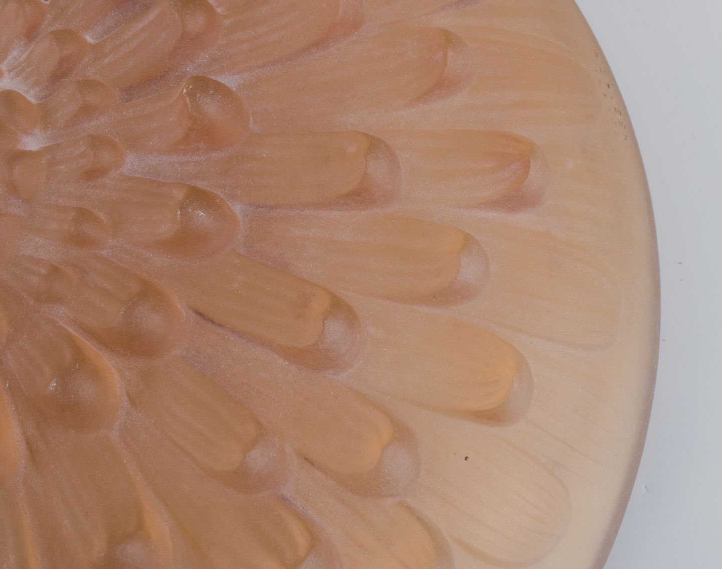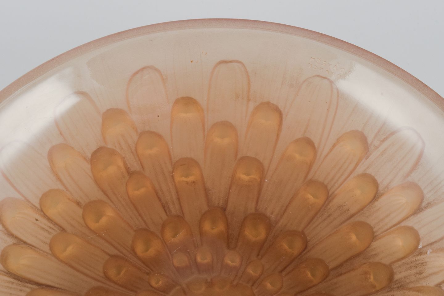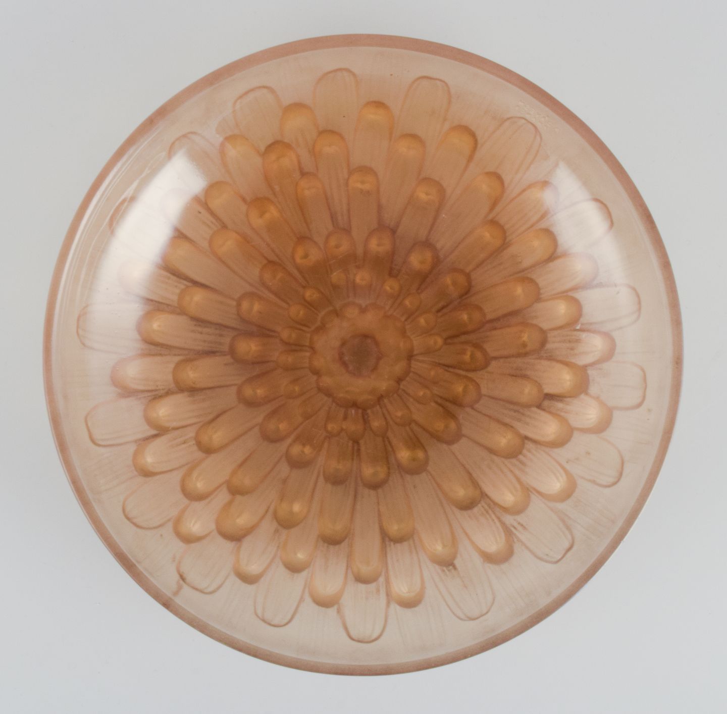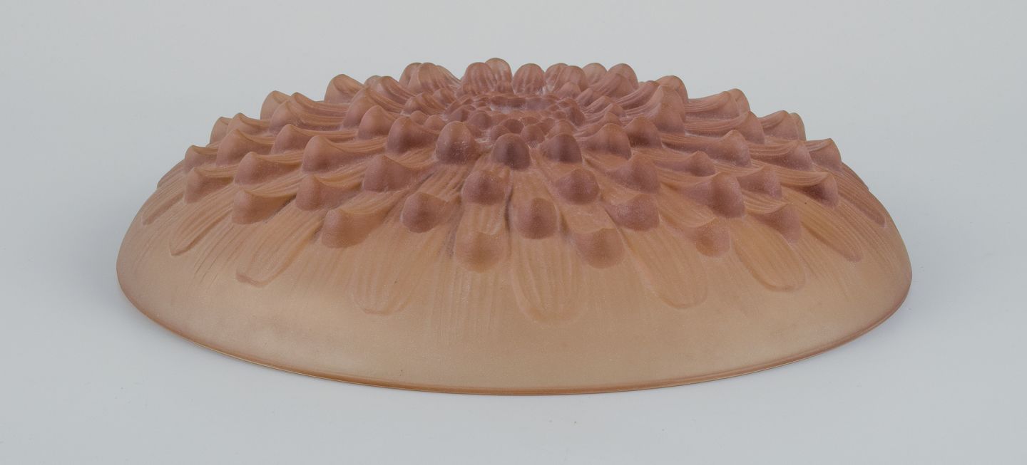 Røgfarvet Art Deco kunstglasskål. Designet med blomst.