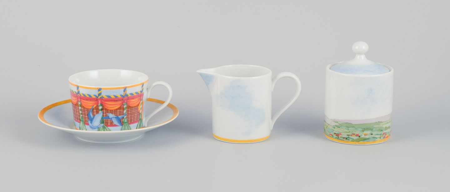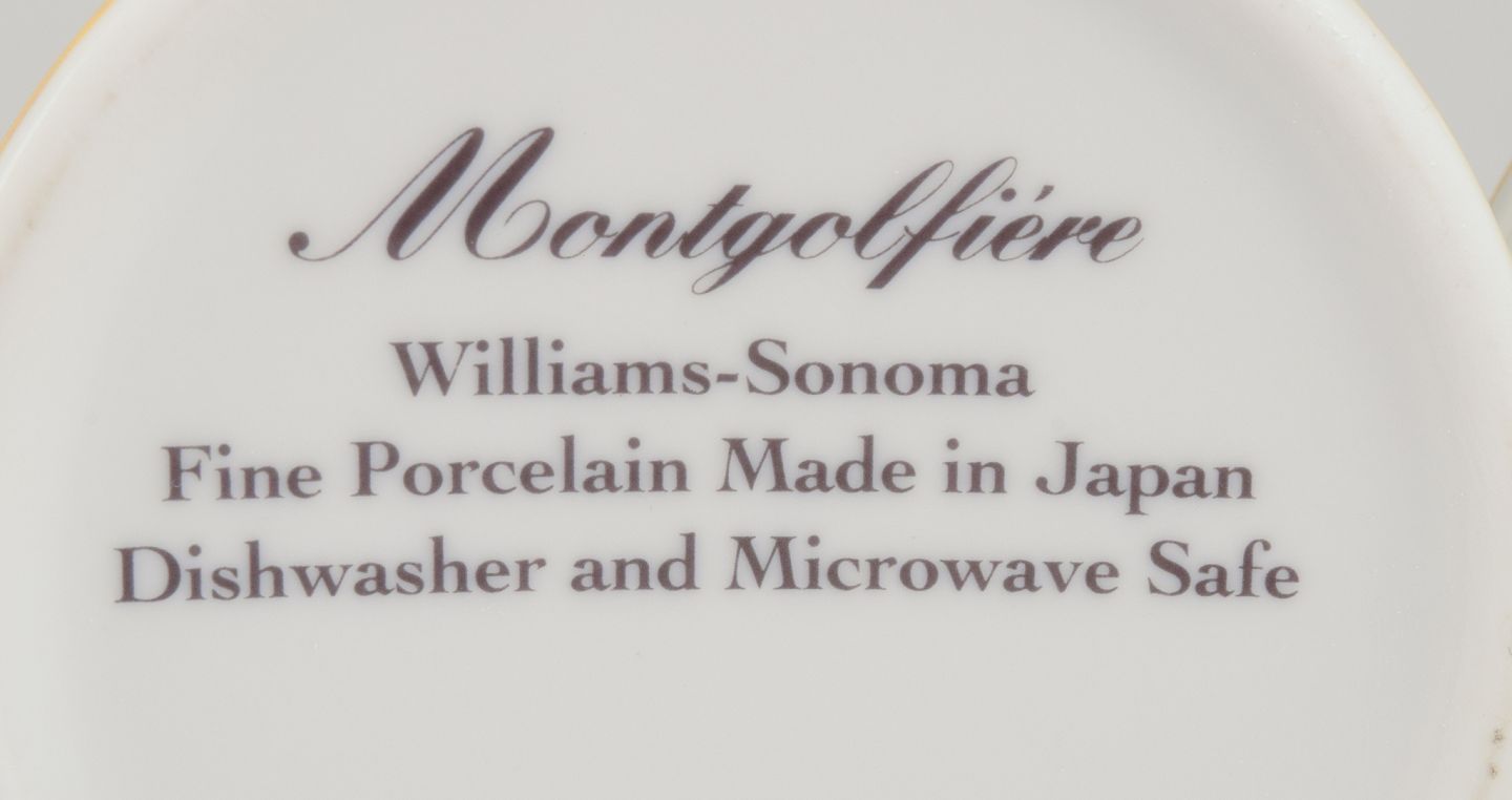 Williams-Sonoma Fine Porcelain. Et fempersoners Montgolfiére kaffeservice bestående af fem kaffekopper med underkopper samt sukkerskål og flødekande.