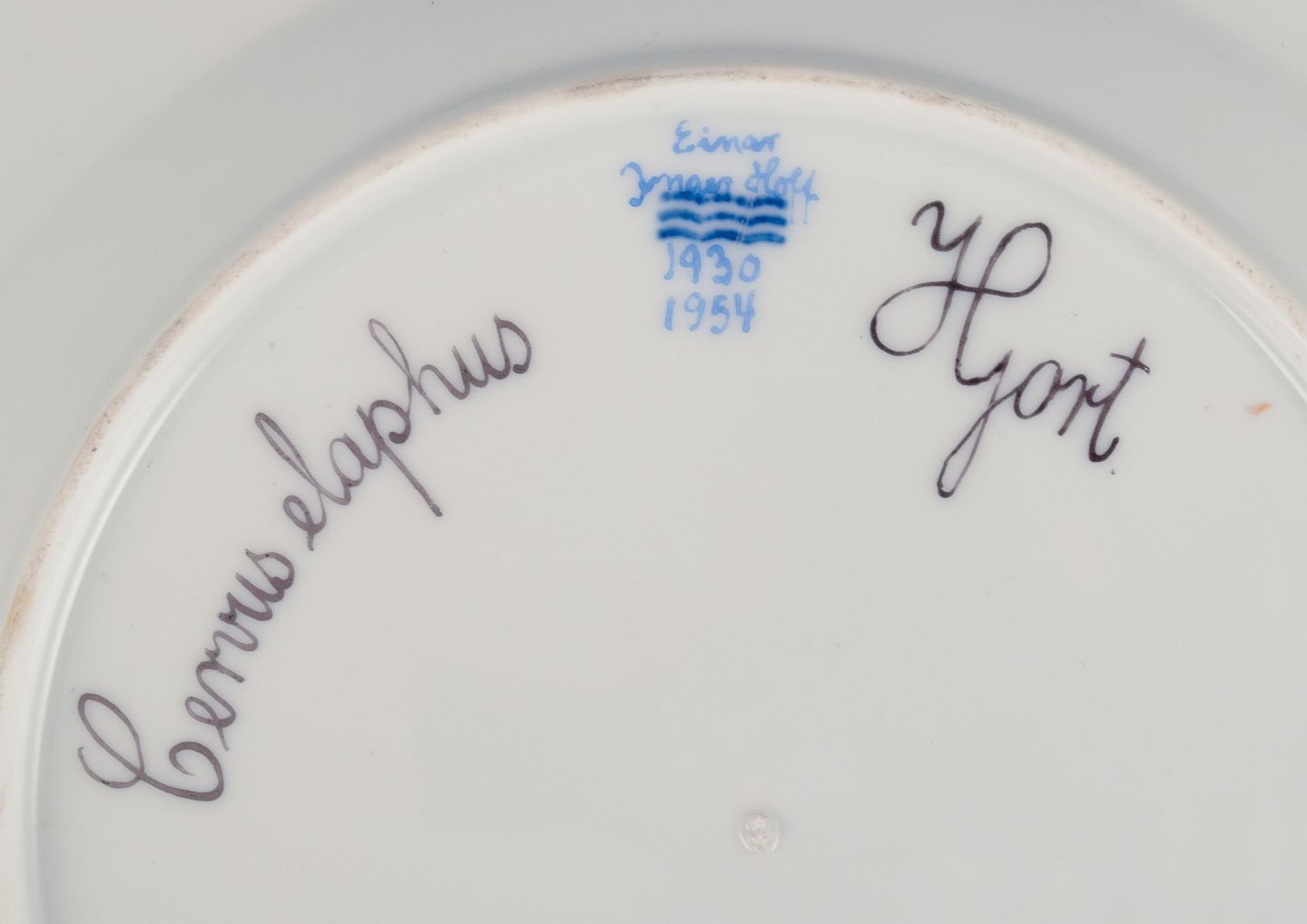 Royal Copenhagen Fauna Danica middagstallerken med motiv af hjort i landskab. Håndmalet af Einar J. Hoff. 1930-1950. Tredje sortering. Perfekt stand. Mål: D 25,0 cm. x H 3,3 cm.