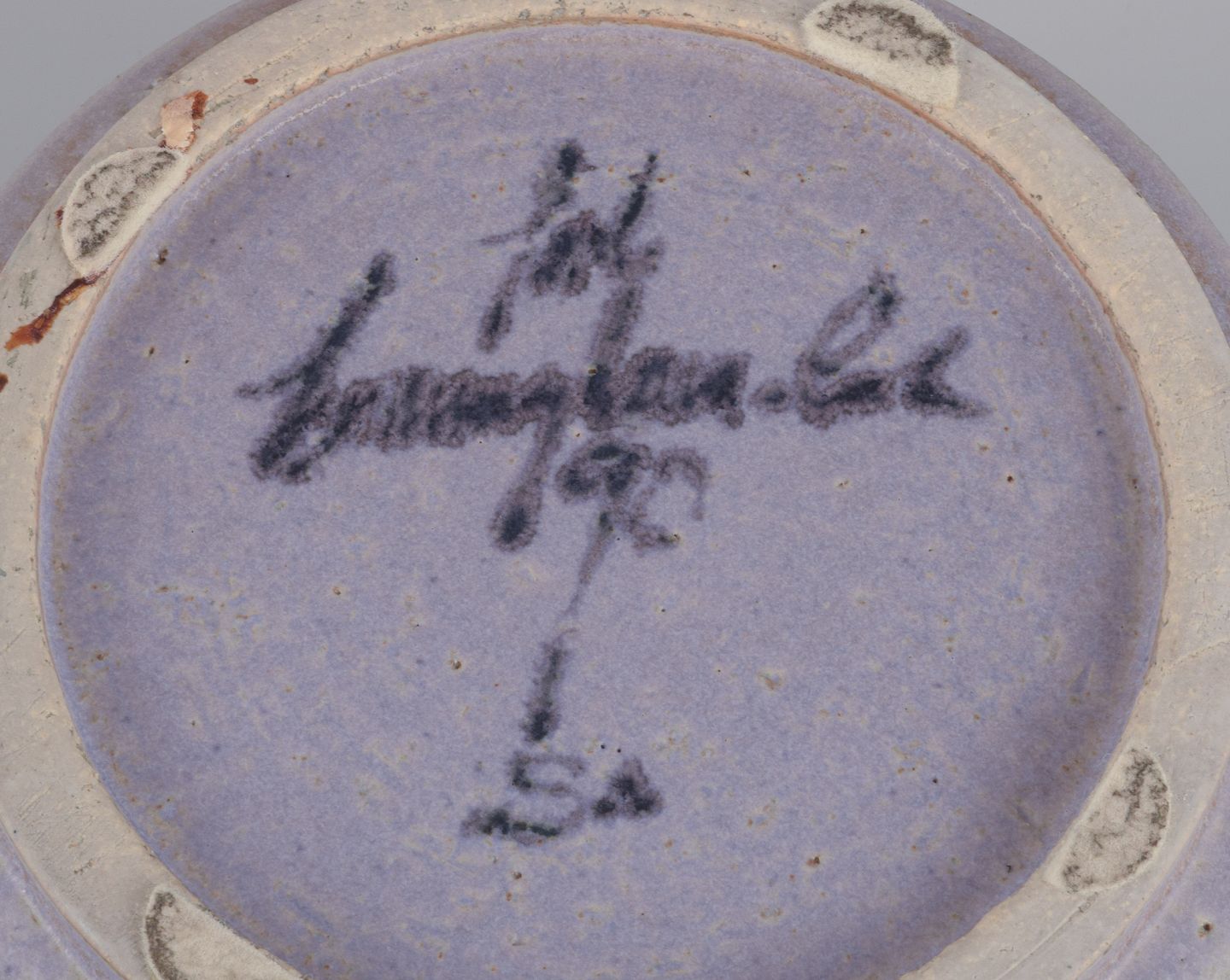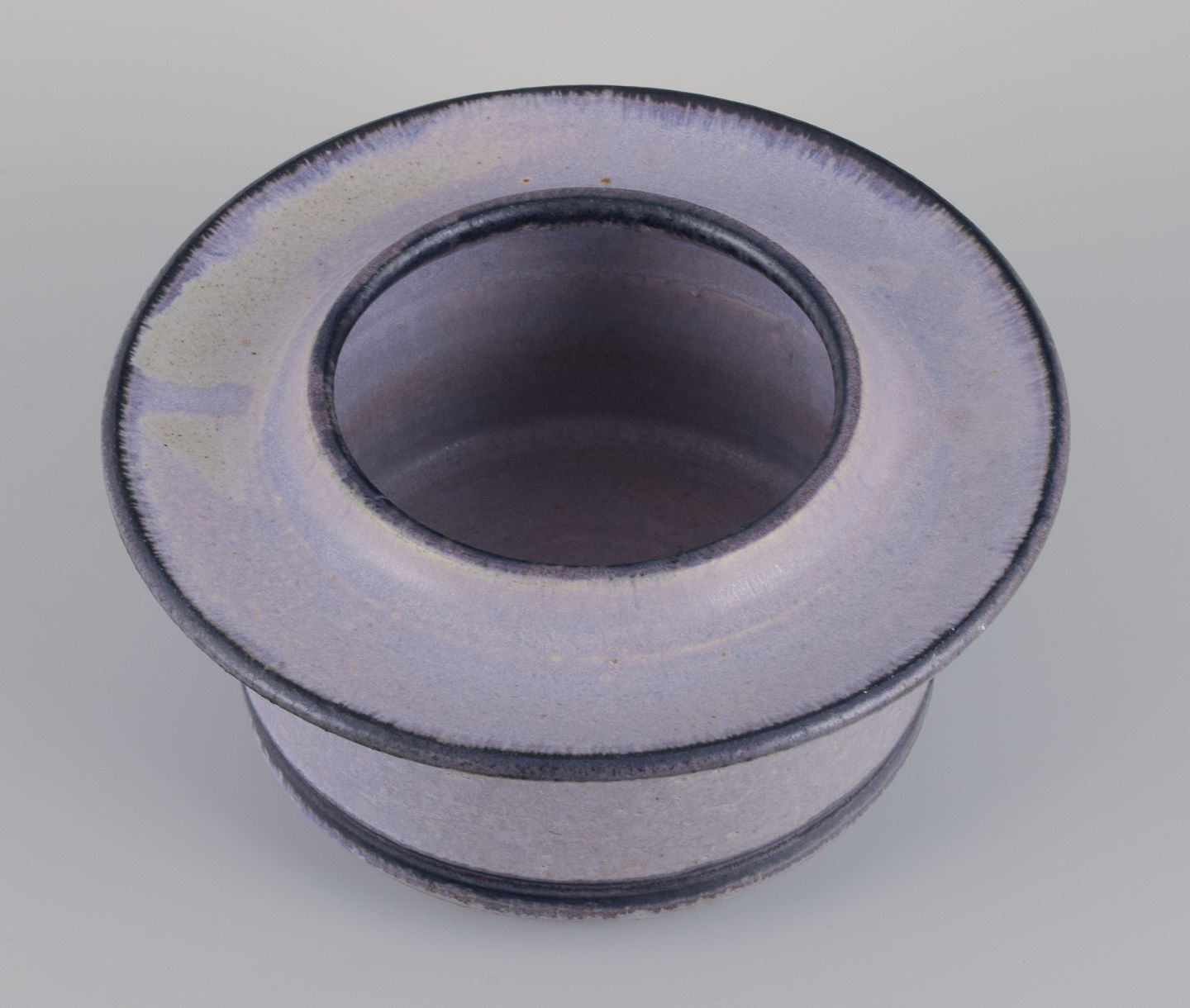Stor unika keramikskål. Glasur i lysviolet og sandfarvede nuancer.
