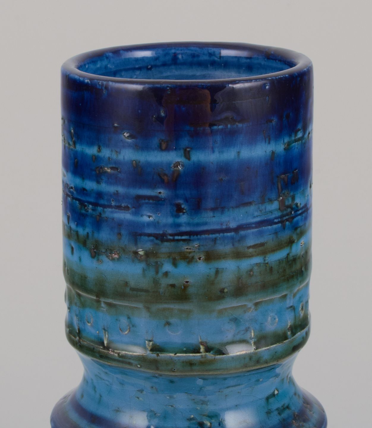 Aldo Londi (1911–2003) for Bitossi, Italien. Keramikvase med glasur i grønne og blå nuancer. Geometrisk mønster. Ca. 1970. Stemplet. I perfekt stand. Mål: H 25,3 cm. x 7,0 cm.