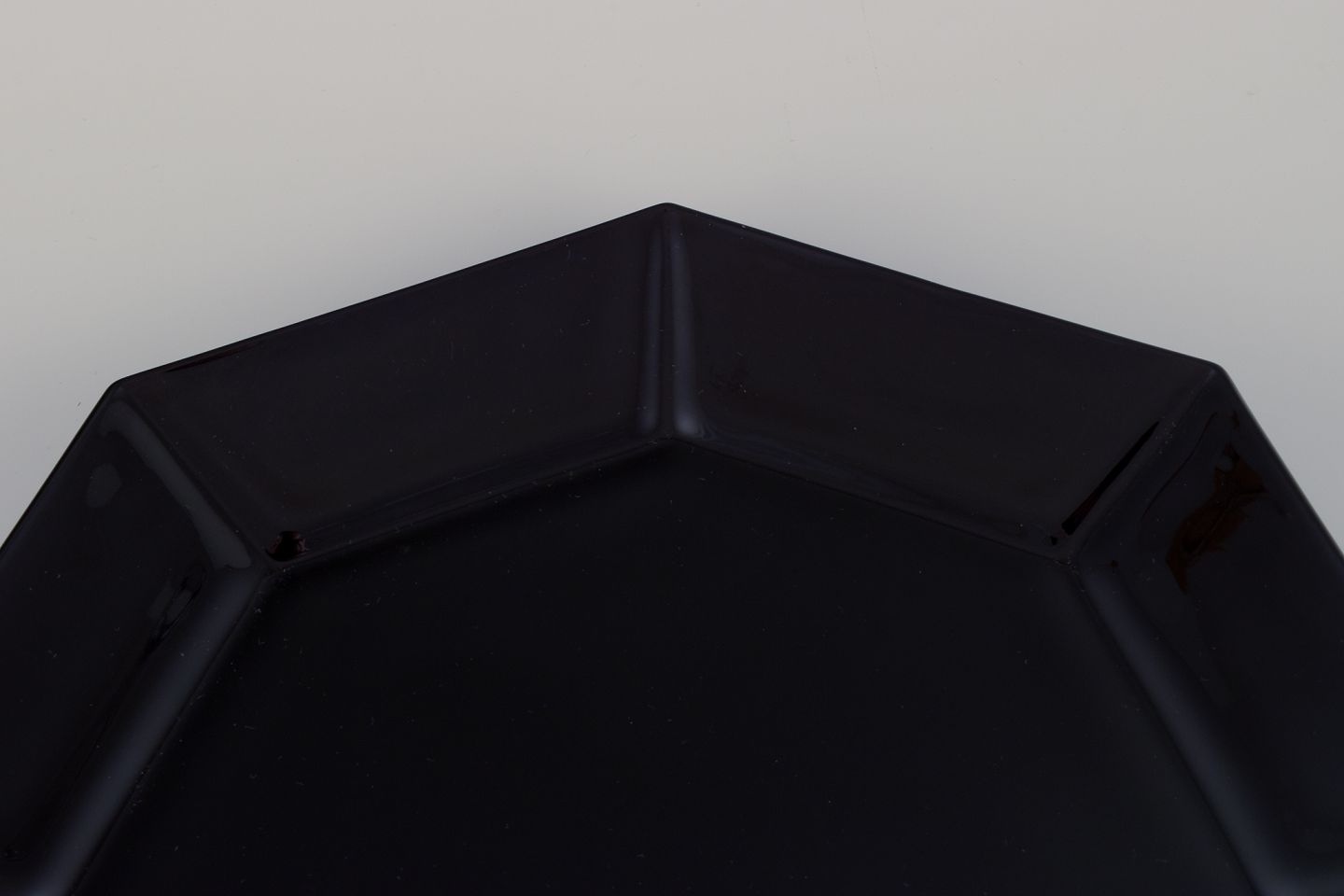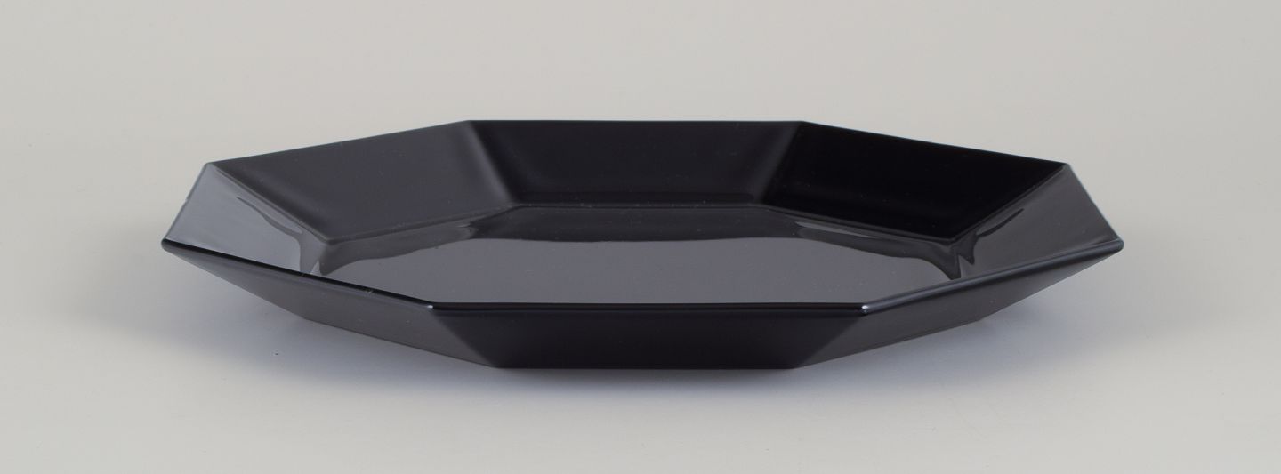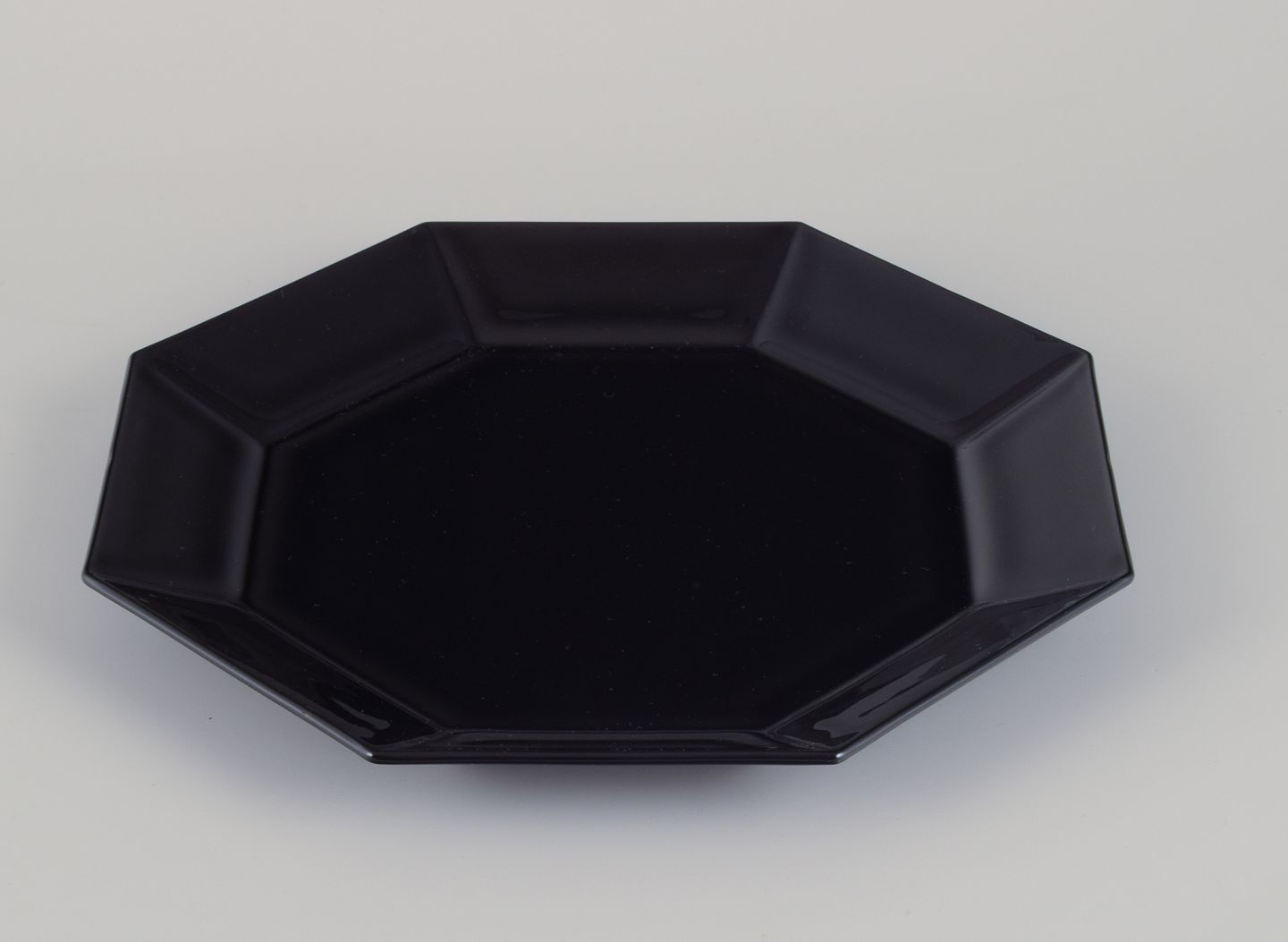 Arcoroc, Frankrig. Et sæt på seks ottekantede middagstallerkner i sort glas. 1970/80’erne. Stemplet. Perfekt stand. Mål: D 25,0 cm.