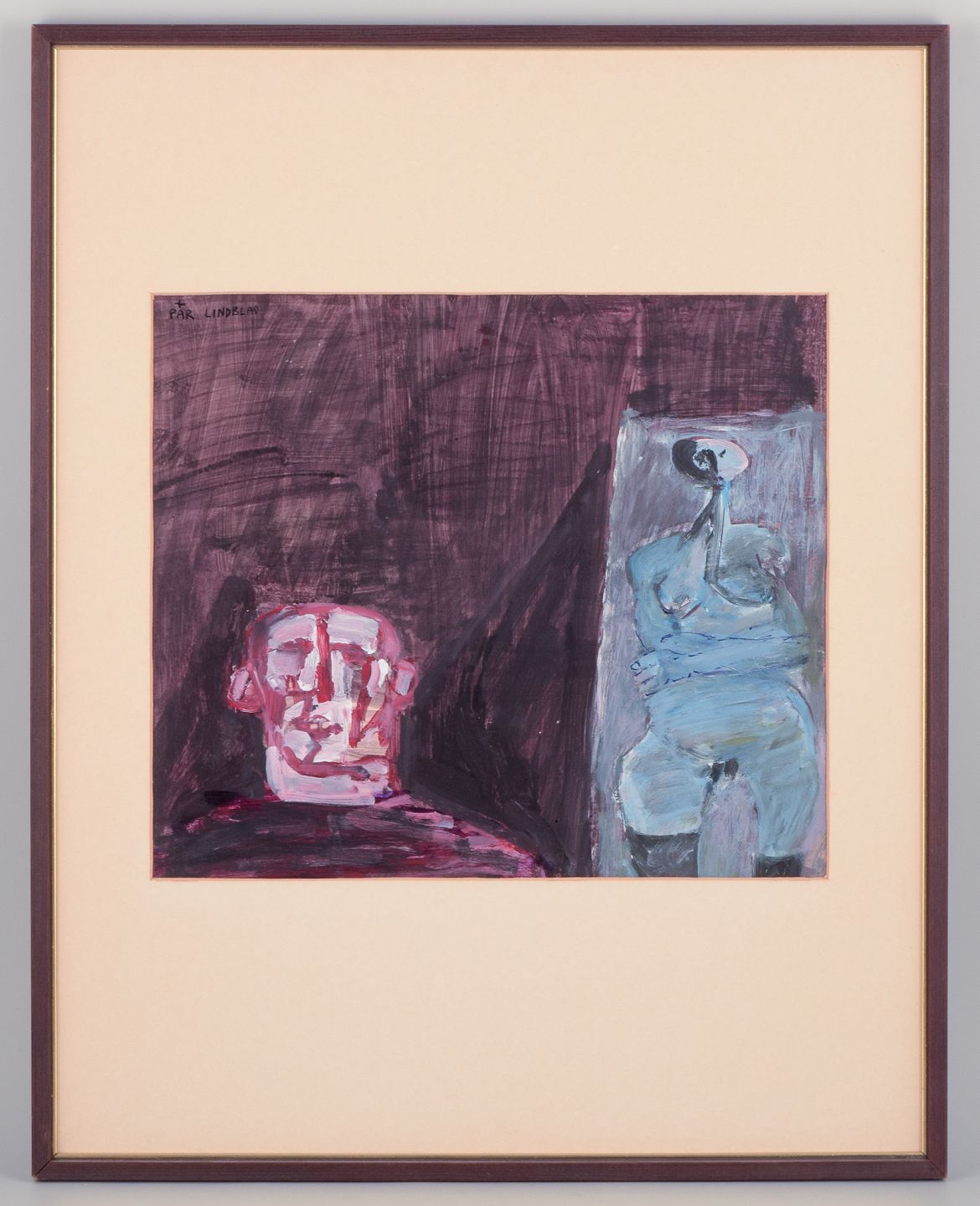 Pär Lindblad (1907-1981), well listed Swedish artist. Gouache on paper.