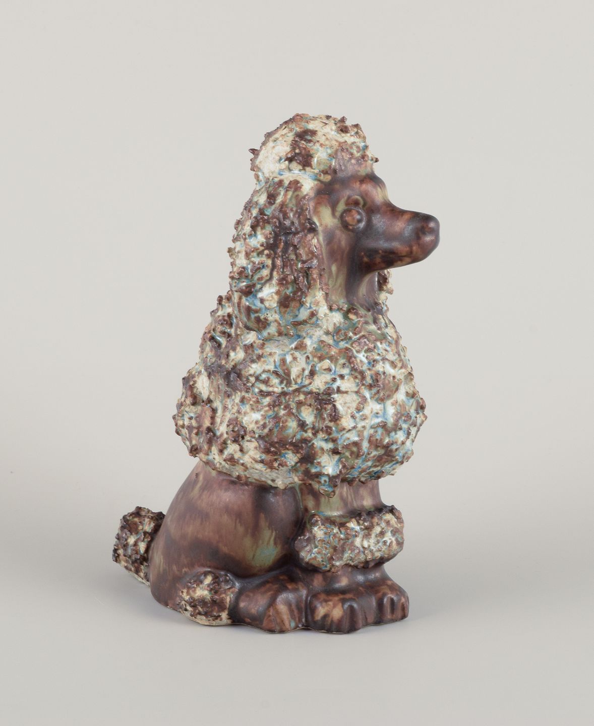 EGO Stengods, Sweden. Ceramic figure of a poodle. Glazed in brownish-green hues.