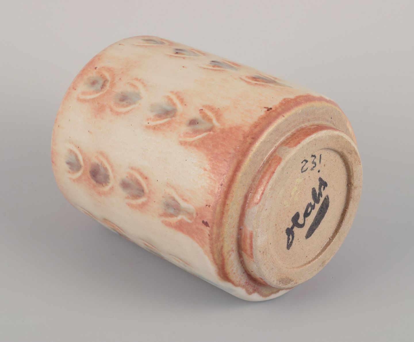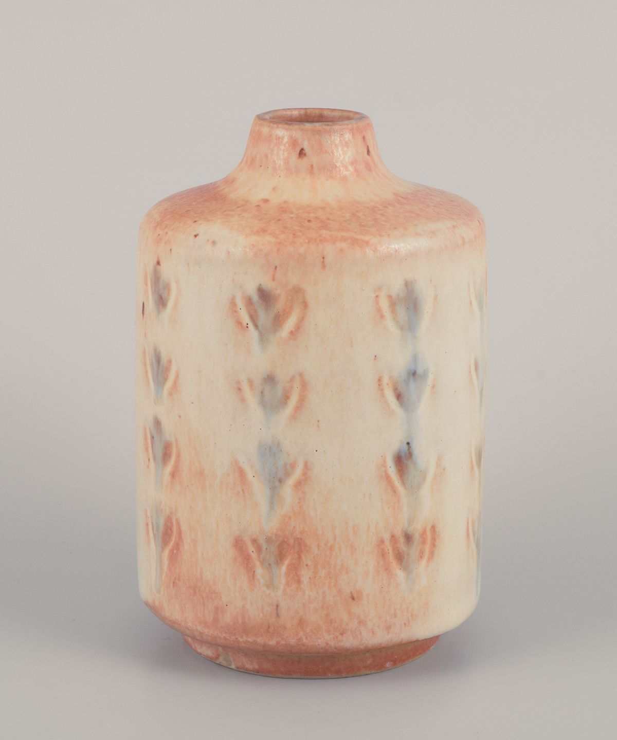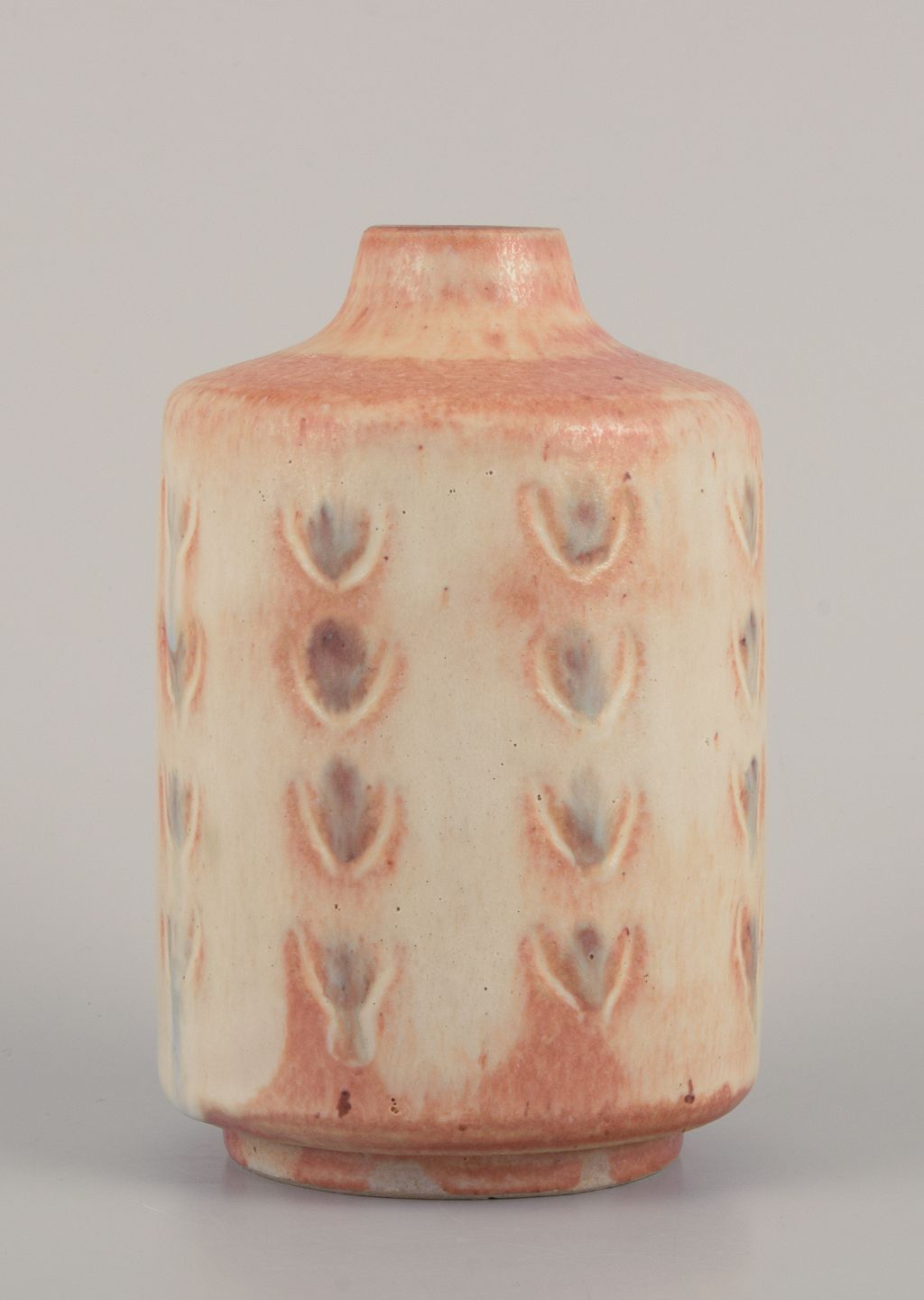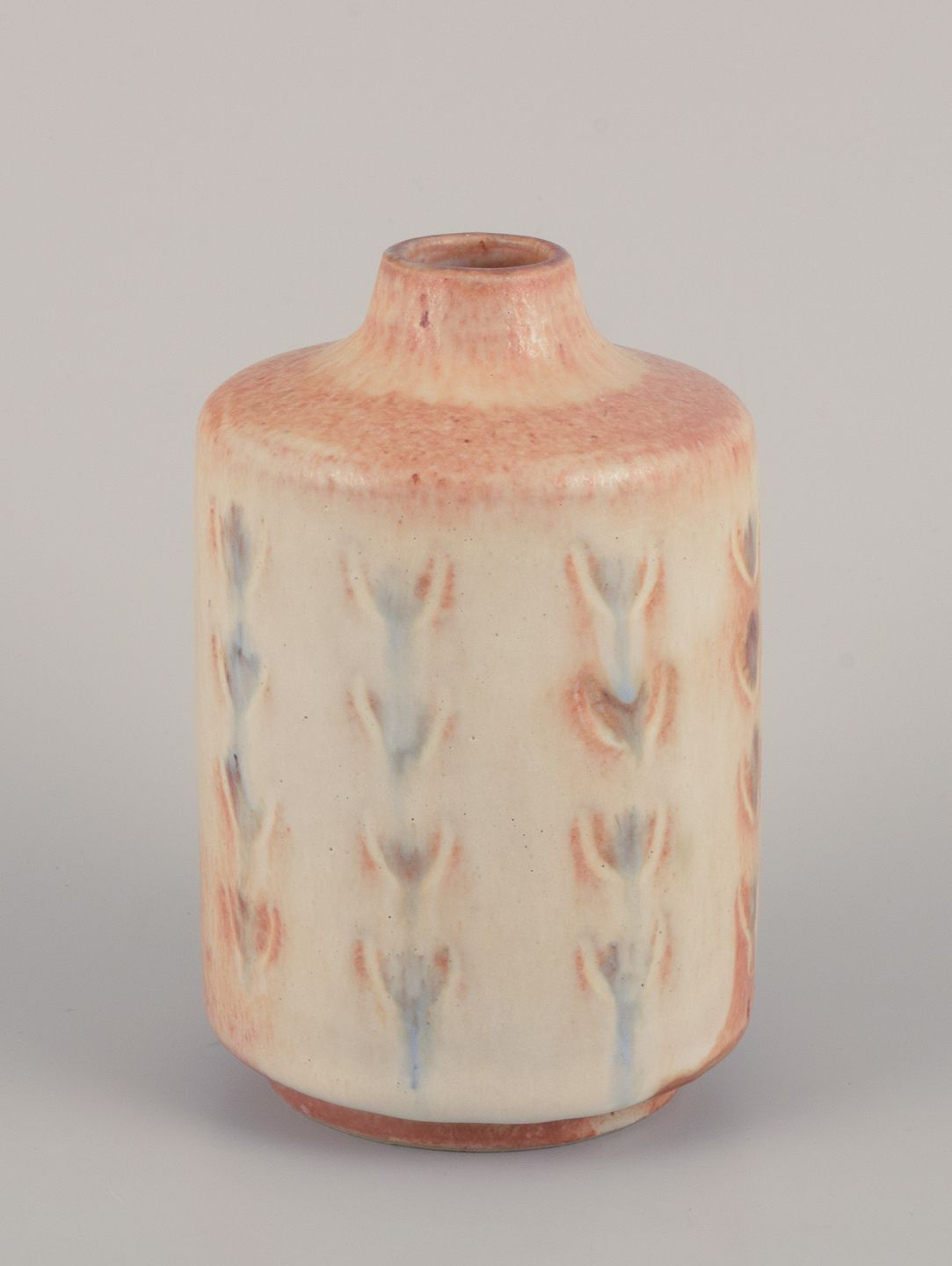 Peder Hald (1892-1987), Danish ceramist. Unique ceramic vase with glaze in light tones. Hand-glazed. Ca. 1970. Signed. In perfect condition. Dimensions: H 13.5 cm x 8.0 cm.