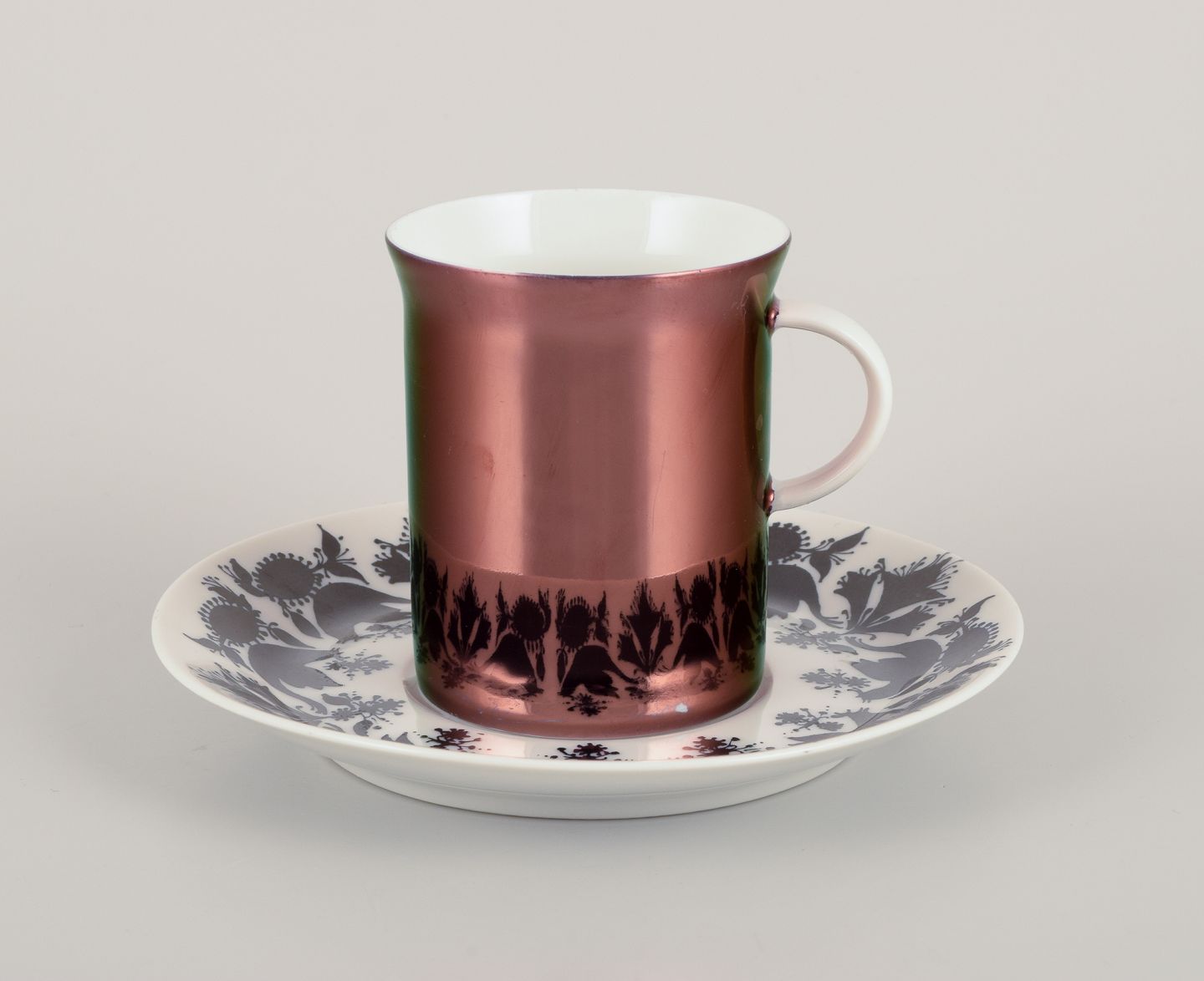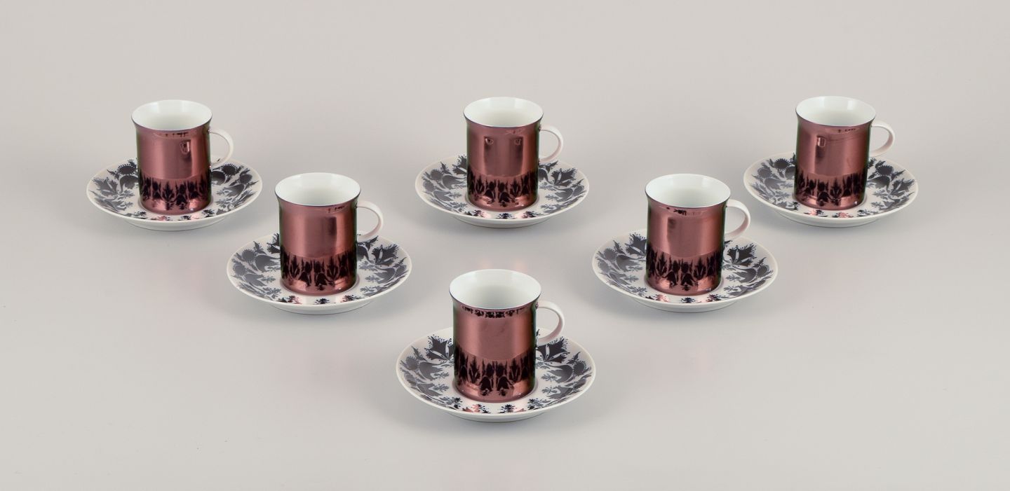 Bjørn Wiinblad (1918-2006) for Rosenthal, Tyskland. Et sæt på seks ”Berlin Hilton” porcelæns espressokopper med underkopper.