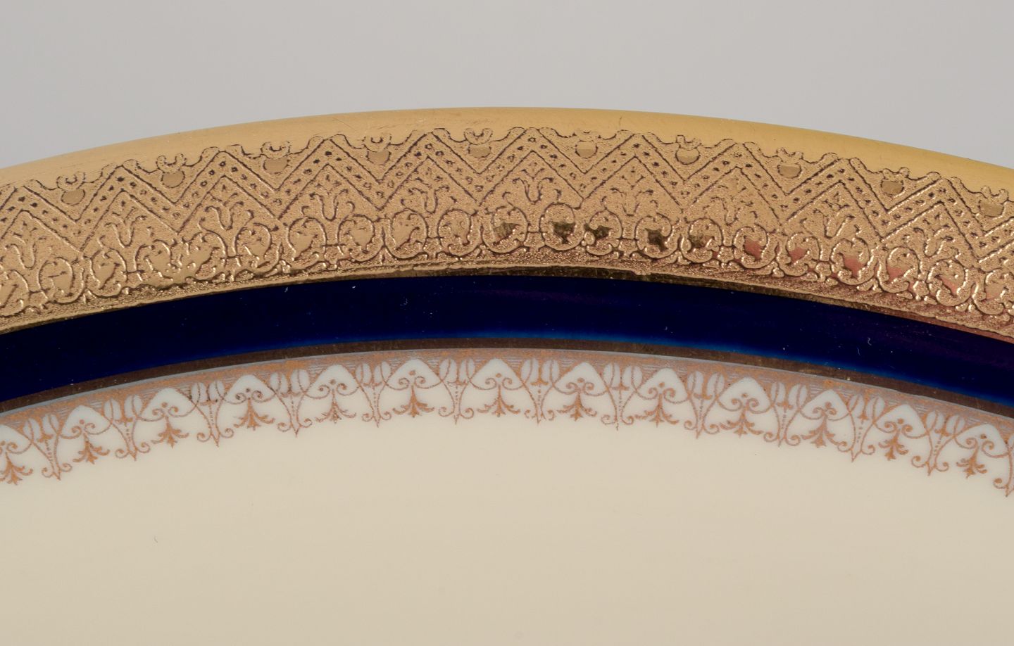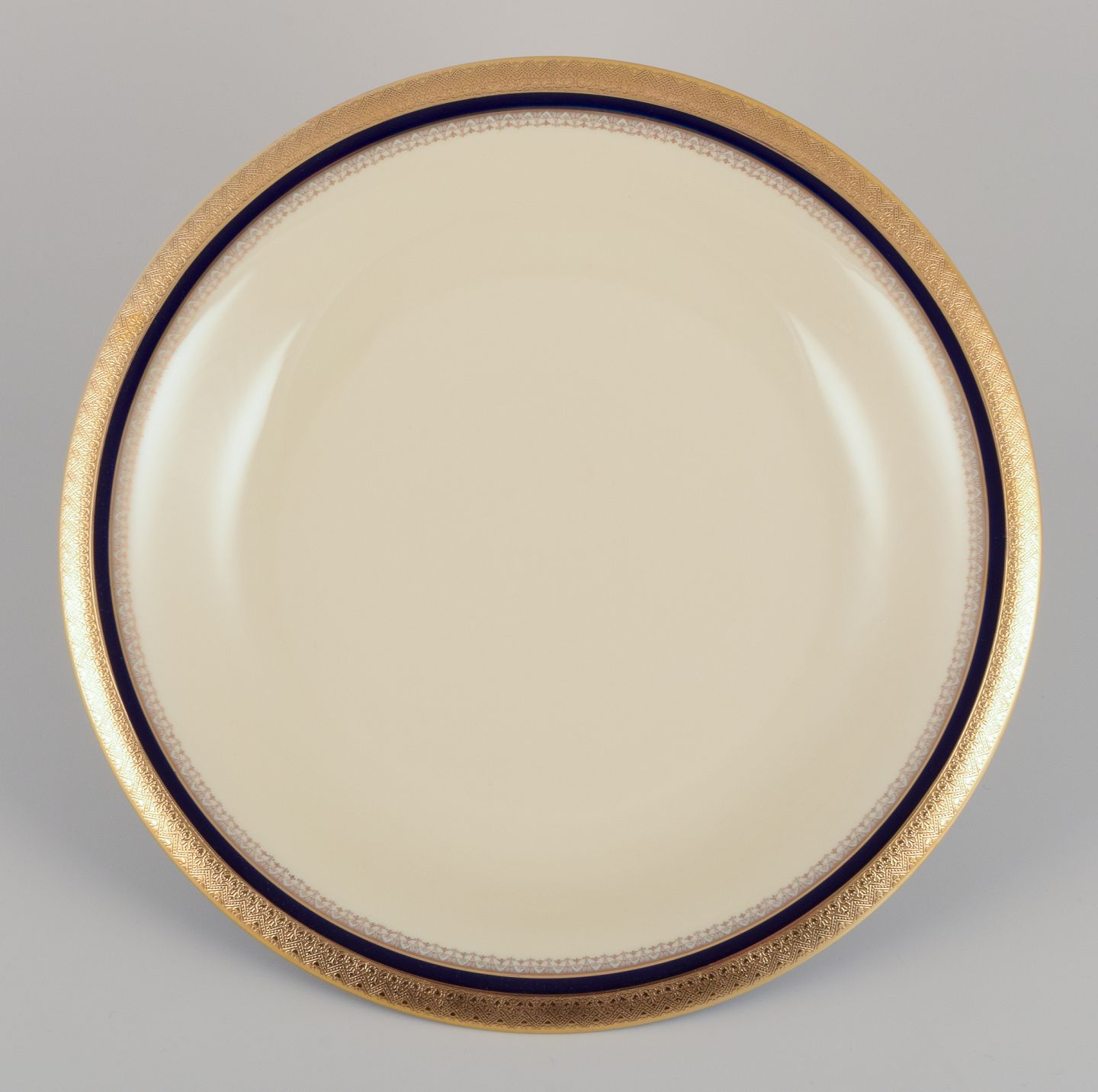 Hutschenreuther, Tyskland. Stort rundt serveringsfad fra serien ”Margarete”. Hånddekoreret med guld og kongeblå.