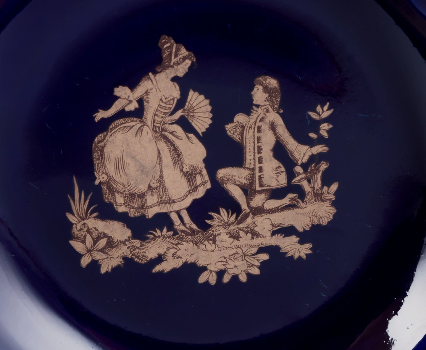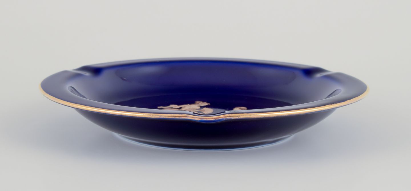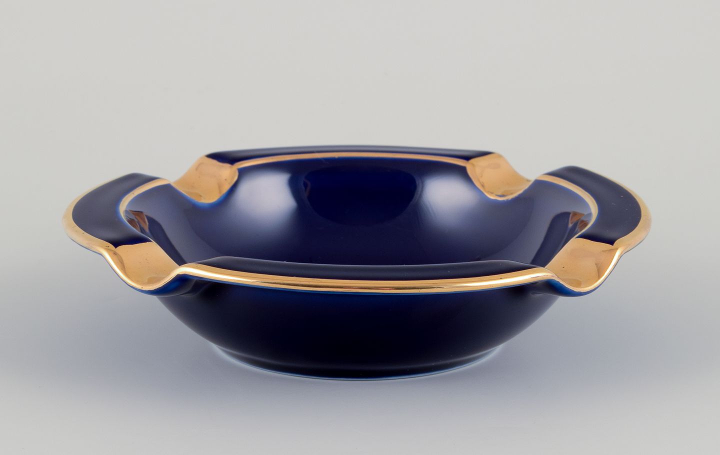 Limoges, Frankrig. To små skåle i porcelæn. Dekoreret i 22-karat bladguld. Smuk kongeblå glasur. Scène galante.