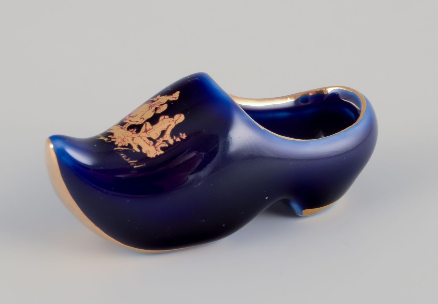 Limoges, Frankrig. Syv dele porcelæn. Miniaturer. Dekoreret i 22-karat bladguld. Smuk kongeblå glasur. Scène galante.