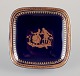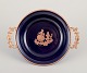 Limoges, Frankrig. Tre små skåle i porcelæn dekoreret i 22-karat bladguld. Smuk kongeblå glasur. Scène galante.