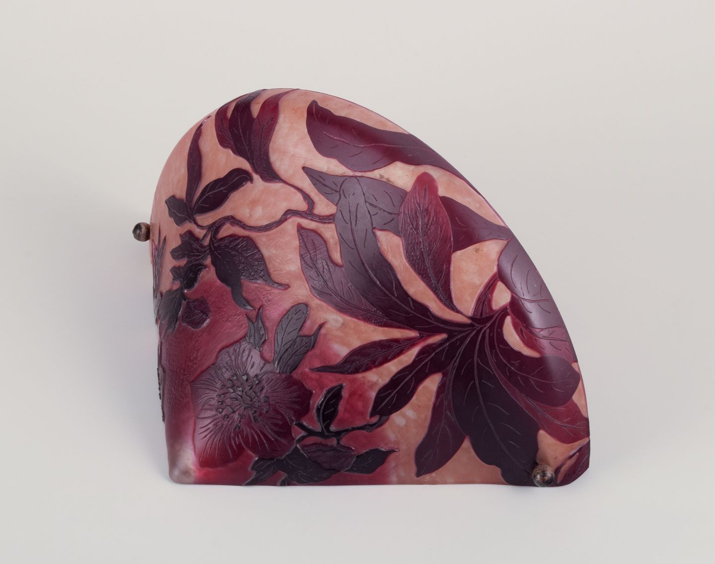 Daum, Frankrig. Pâte de verre skærm/væglampe. Blomster i lilla glas. Ca. 1920’erne. Messingophæng. Indridset signatur. Perfekt stand. Mål: B 26,5 cm. x H 13,0 cm.