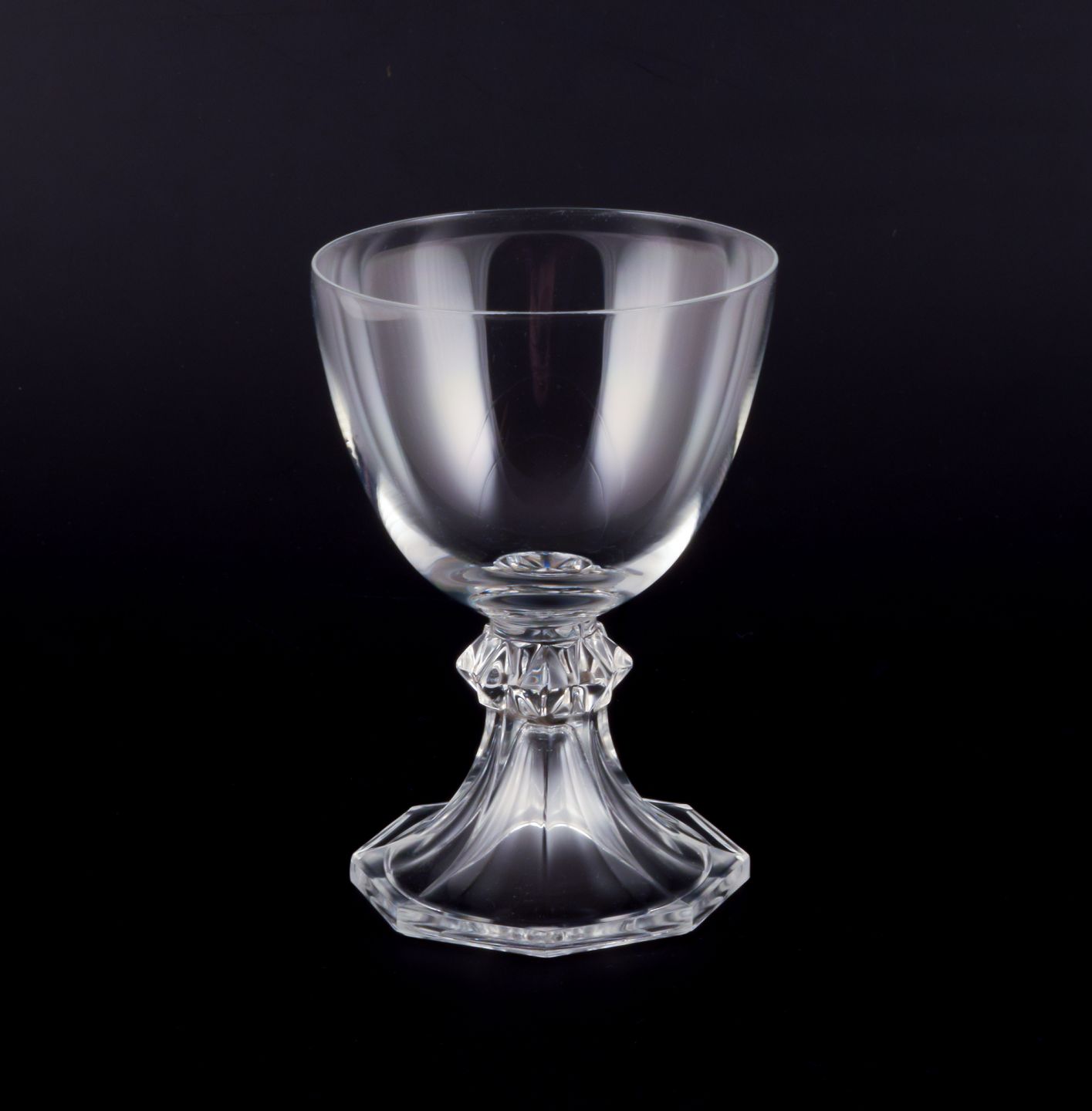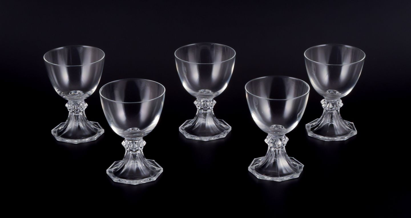 Val St. Lambert, Belgien. Et sæt på fem rødvinsglas i klart mundblæst krystalglas. Midt 1900-tallet. Perfekt stand. Mål: D 8,5 cm. x H 12,4 cm.