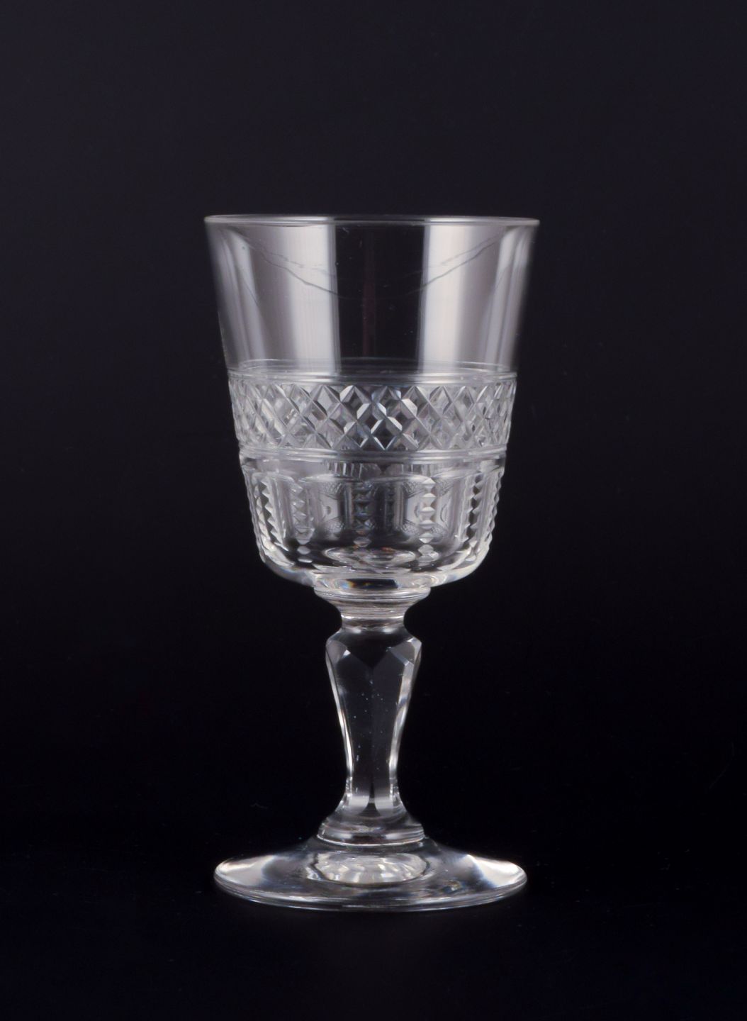Et sæt på seks mundblæste franske portvinsglas i krystalglas. Facetslebet. Håndlavet. Ca. 1900. Perfekt stand. Mål: H 10,0 cm. x 4,5 cm.