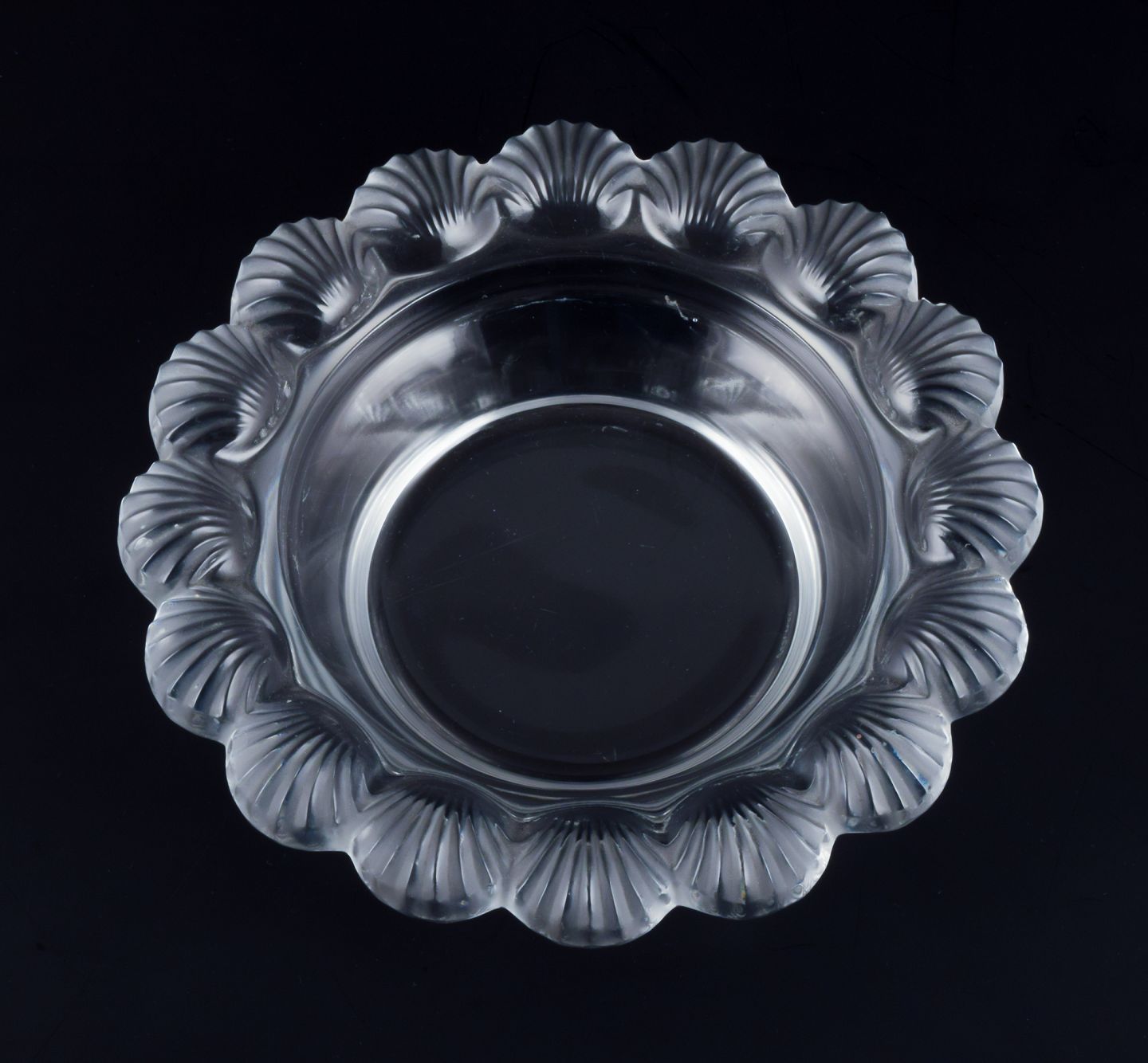 René Lalique (1860-1945), Frankrig. "Pornic" skål i kunstglas designet med muslinger. Model: Pornic 1960/70’erne. Signeret Lalique France. Perfekt stand. Mål: D 20,0 cm. x H 5,5 cm.