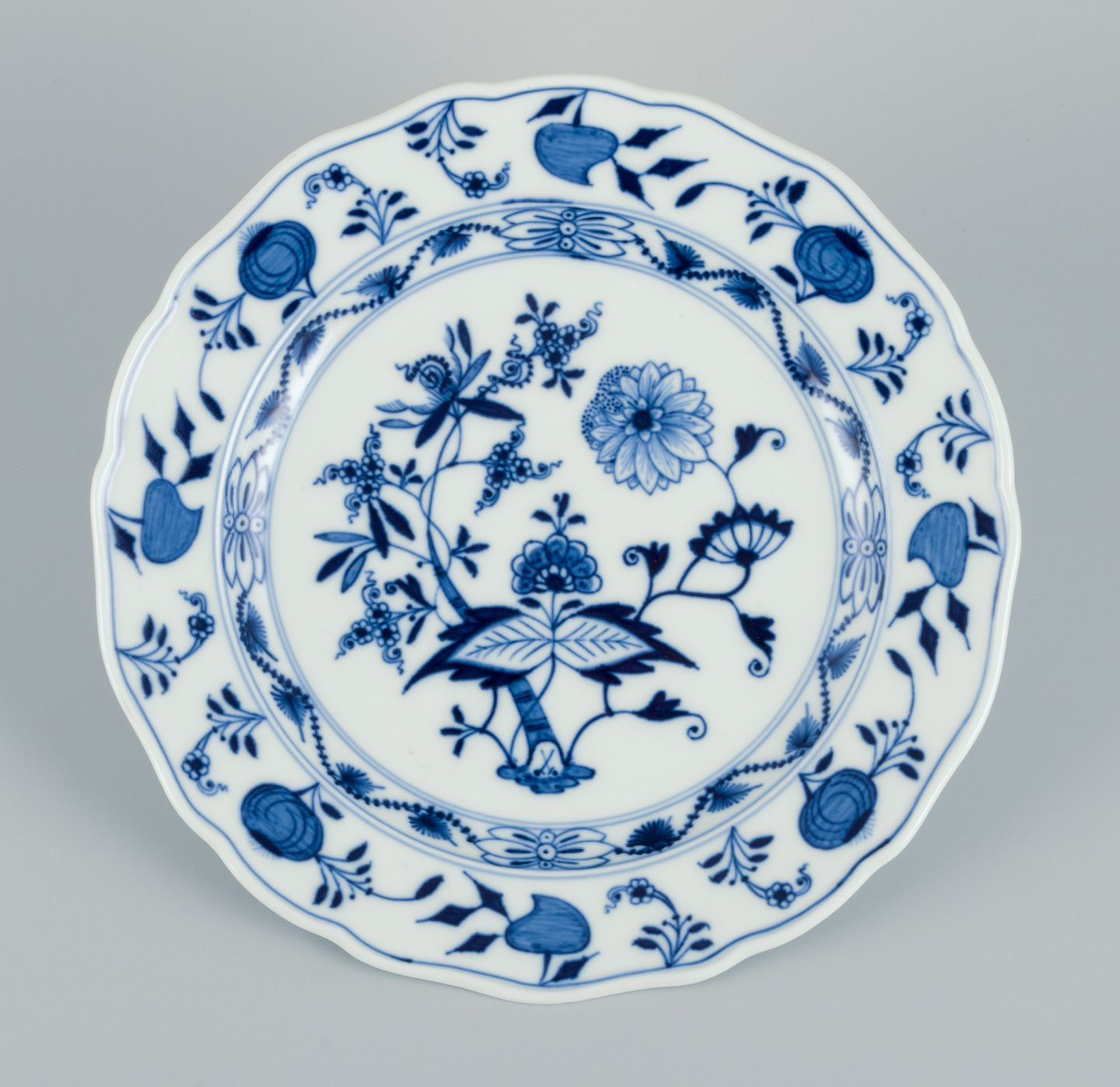 Meissen, Tyskland. Et sæt på tre Løgmønstret middagstallerkner i porcelæn. Håndmalet.