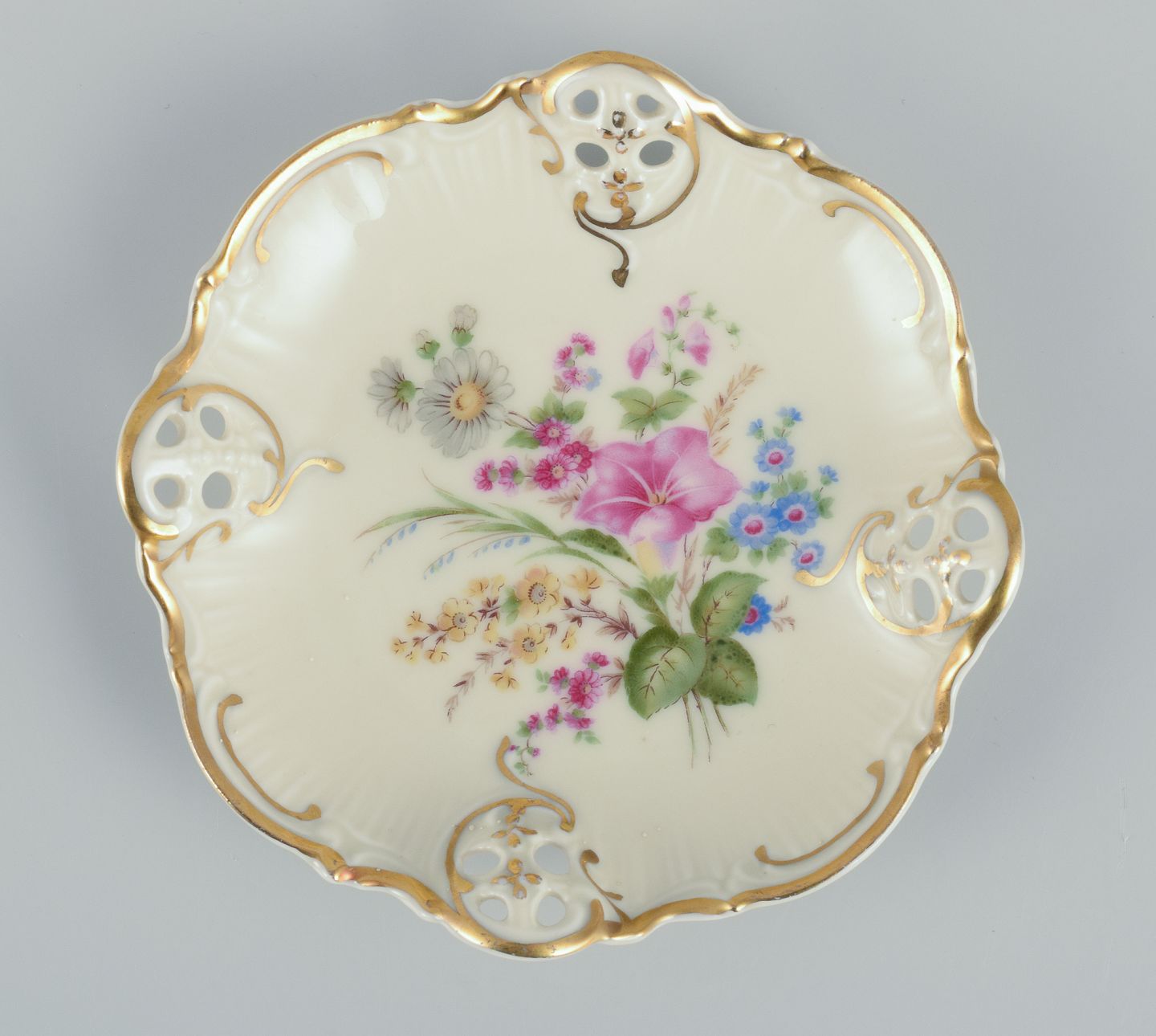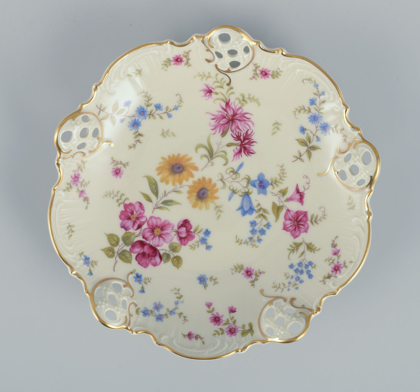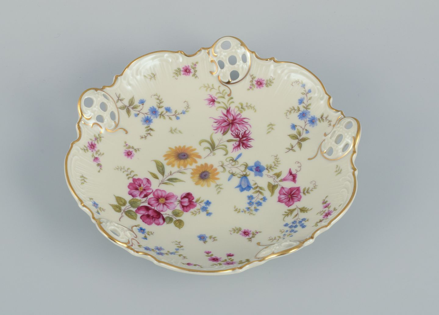 Rosenthal, Tyskland. To ”Moliere” porcelænsskåle med gennembrudt kant. Dekoreret med polykrome blomster på cremefarvet bund. Guldkant.