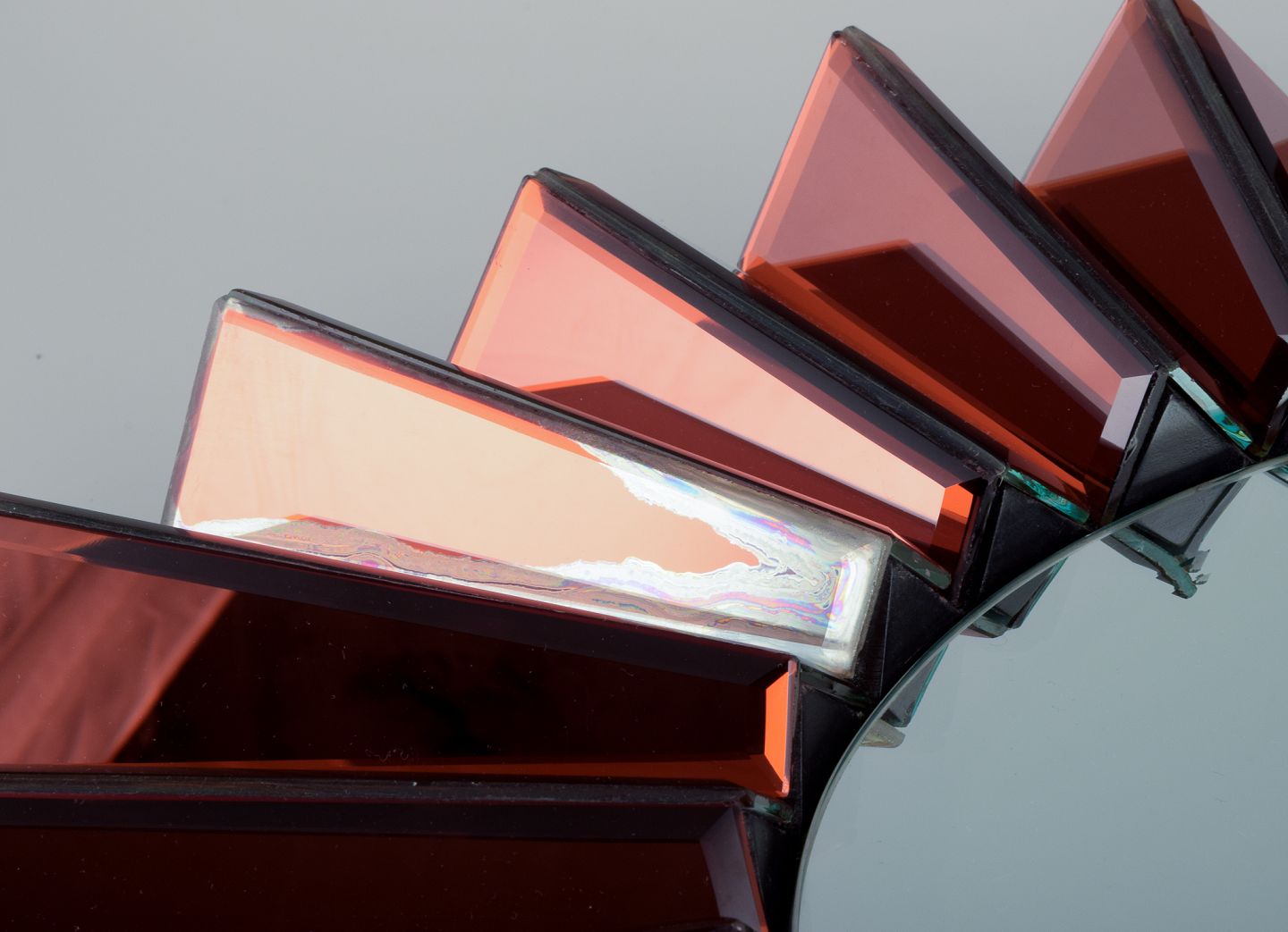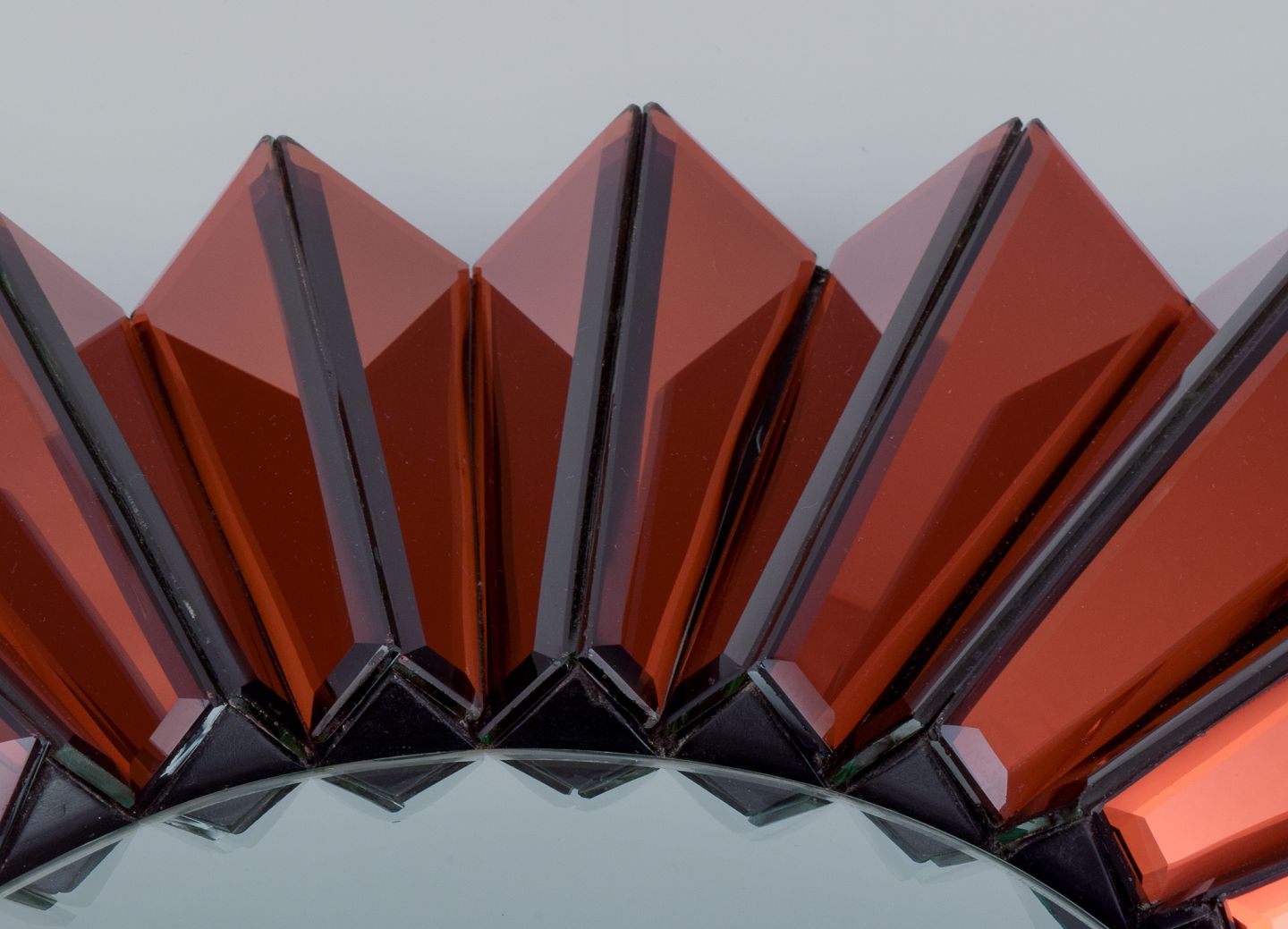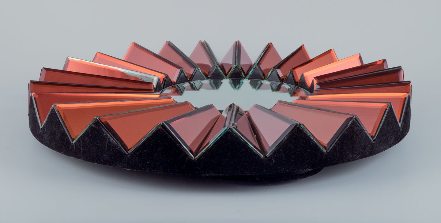 Olivier de Schrijver (1958), fransk designer. Futuristisk ”Simba Rouge” unika vægspejl udført i kobberfarvet metallisk akrylglas. Facetslebet spejl.
